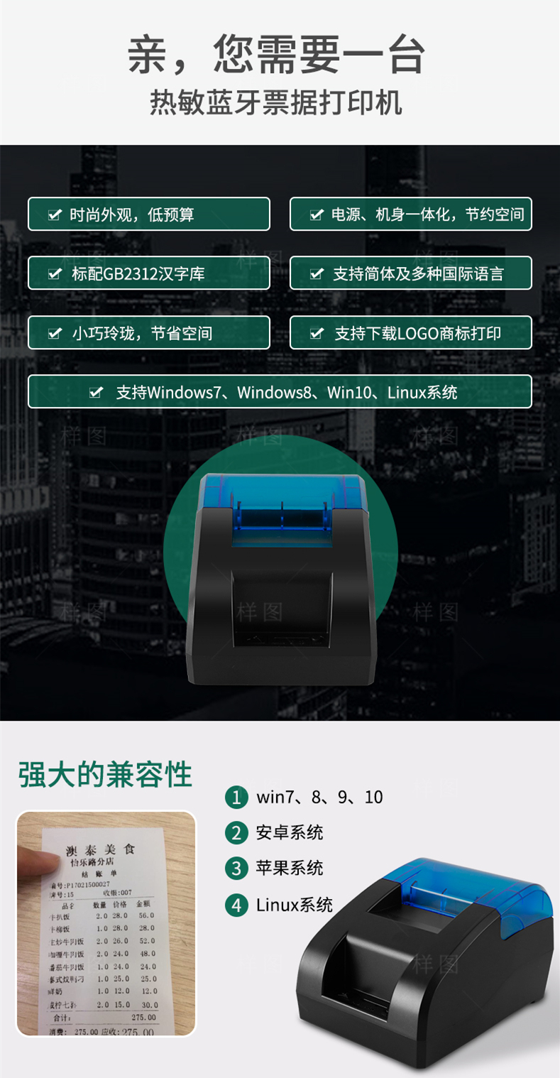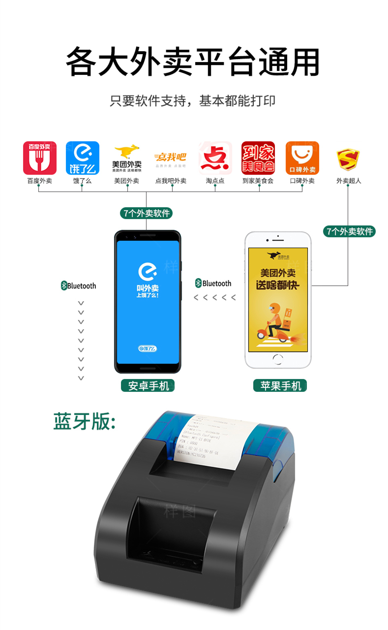 勋尘全自动接单蓝牙京东外卖打印机语音收银小票据美团百度饿了么