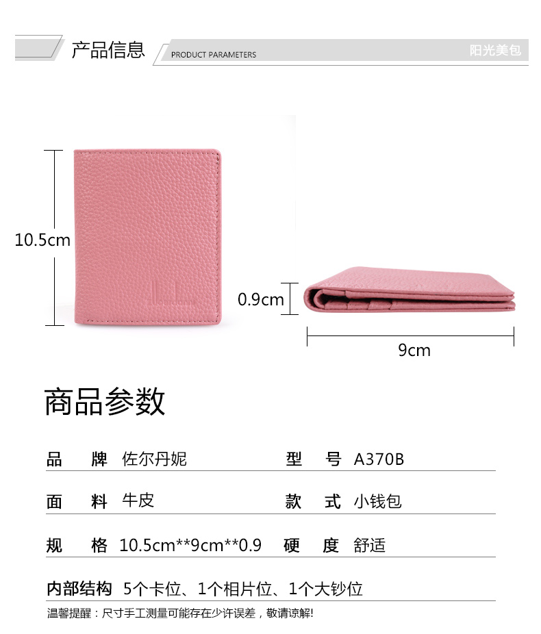 佐尔丹妮迷你小钱包女超薄钱包女钱包女士短款牛皮零钱包女竖黄色