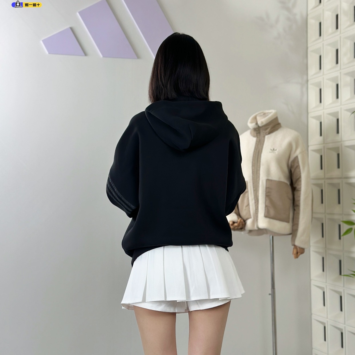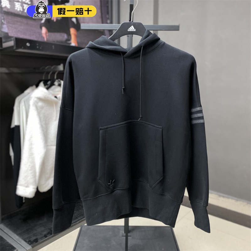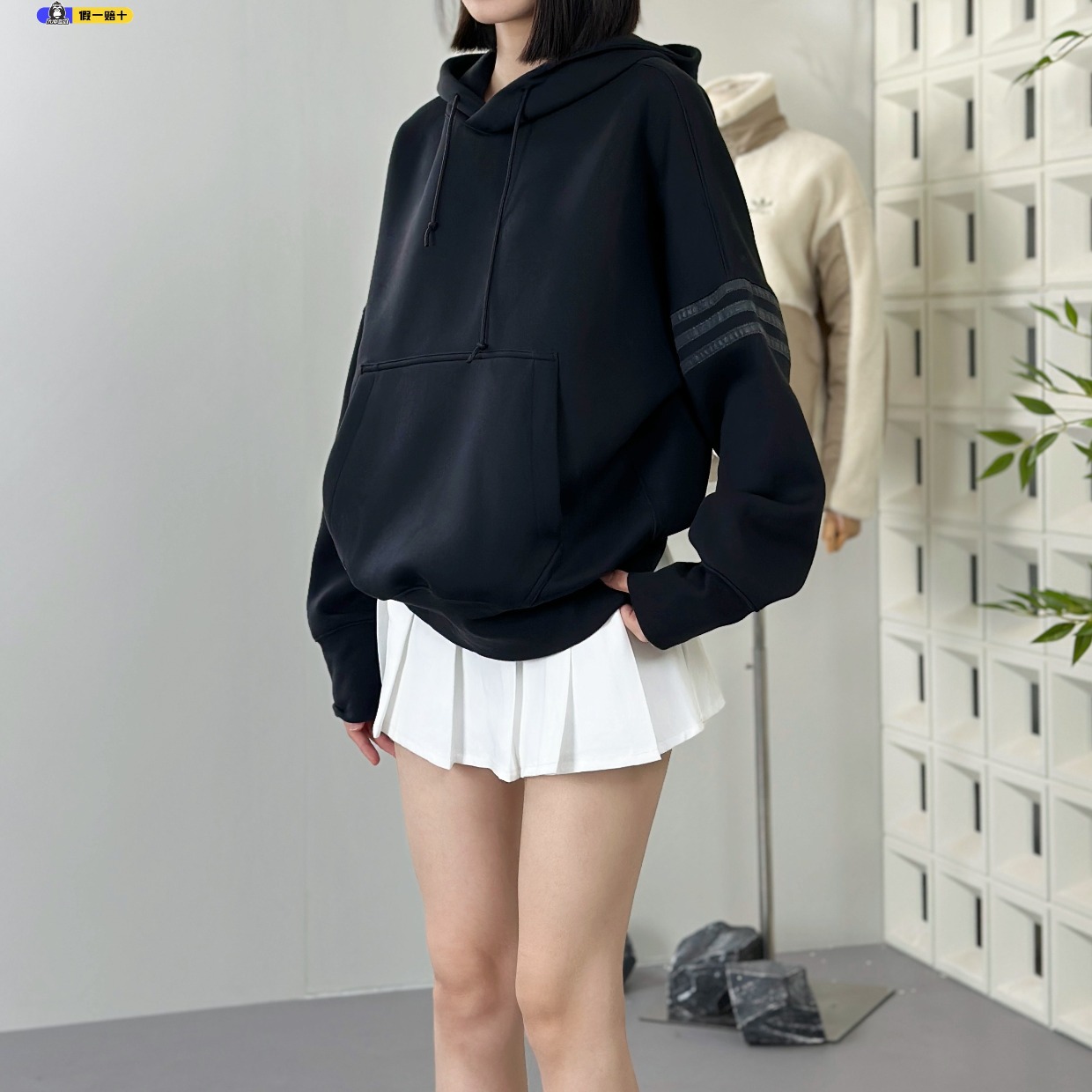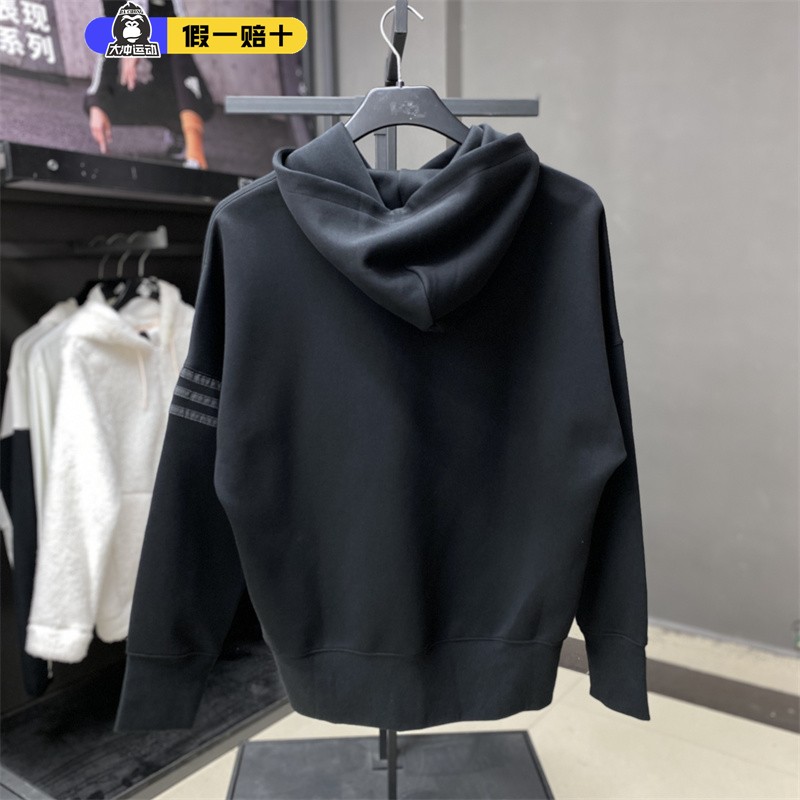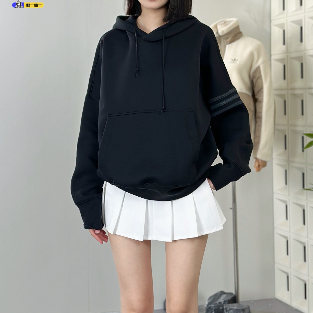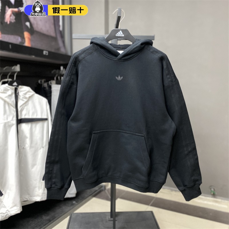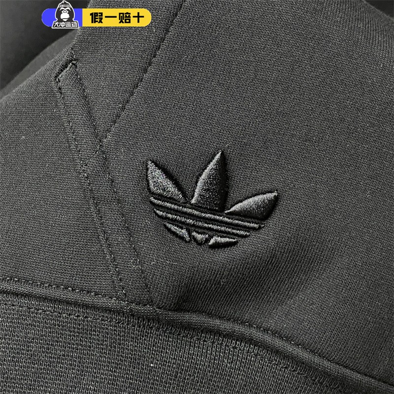 adidas阿迪达斯三叶草正品2025春季新款男子针织连帽黑色运动卫衣