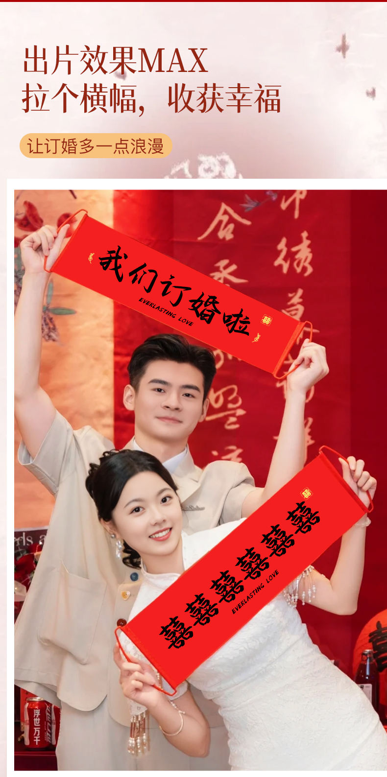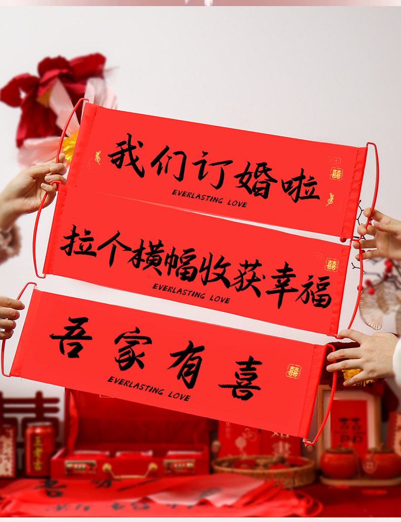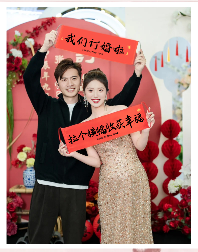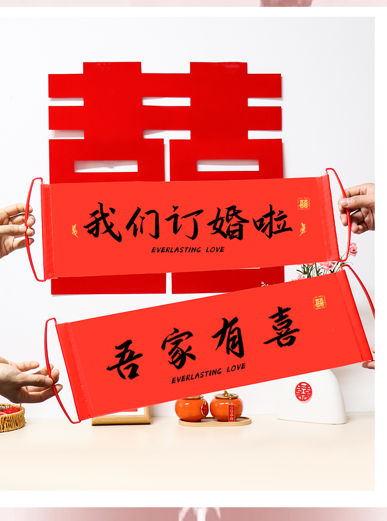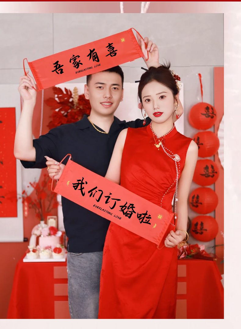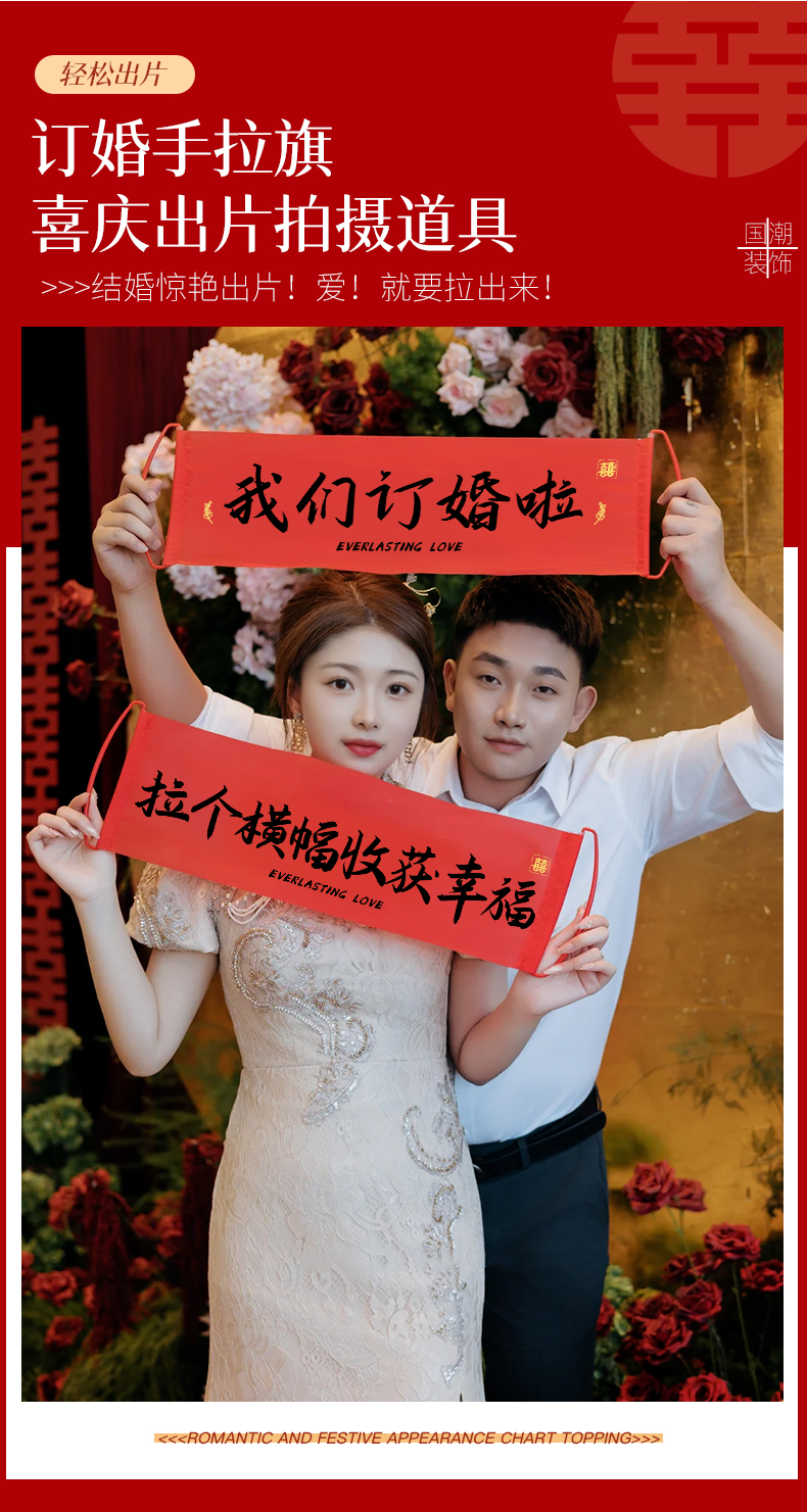订婚拍照小道具我们订婚啦手拉旗装饰摆件拍照小道具手持喜字灯笼