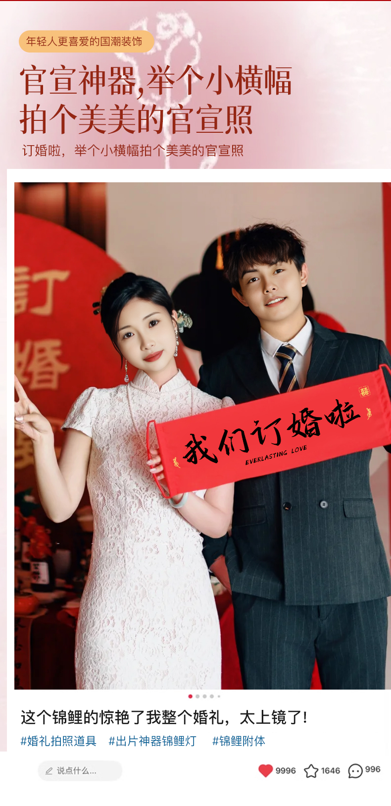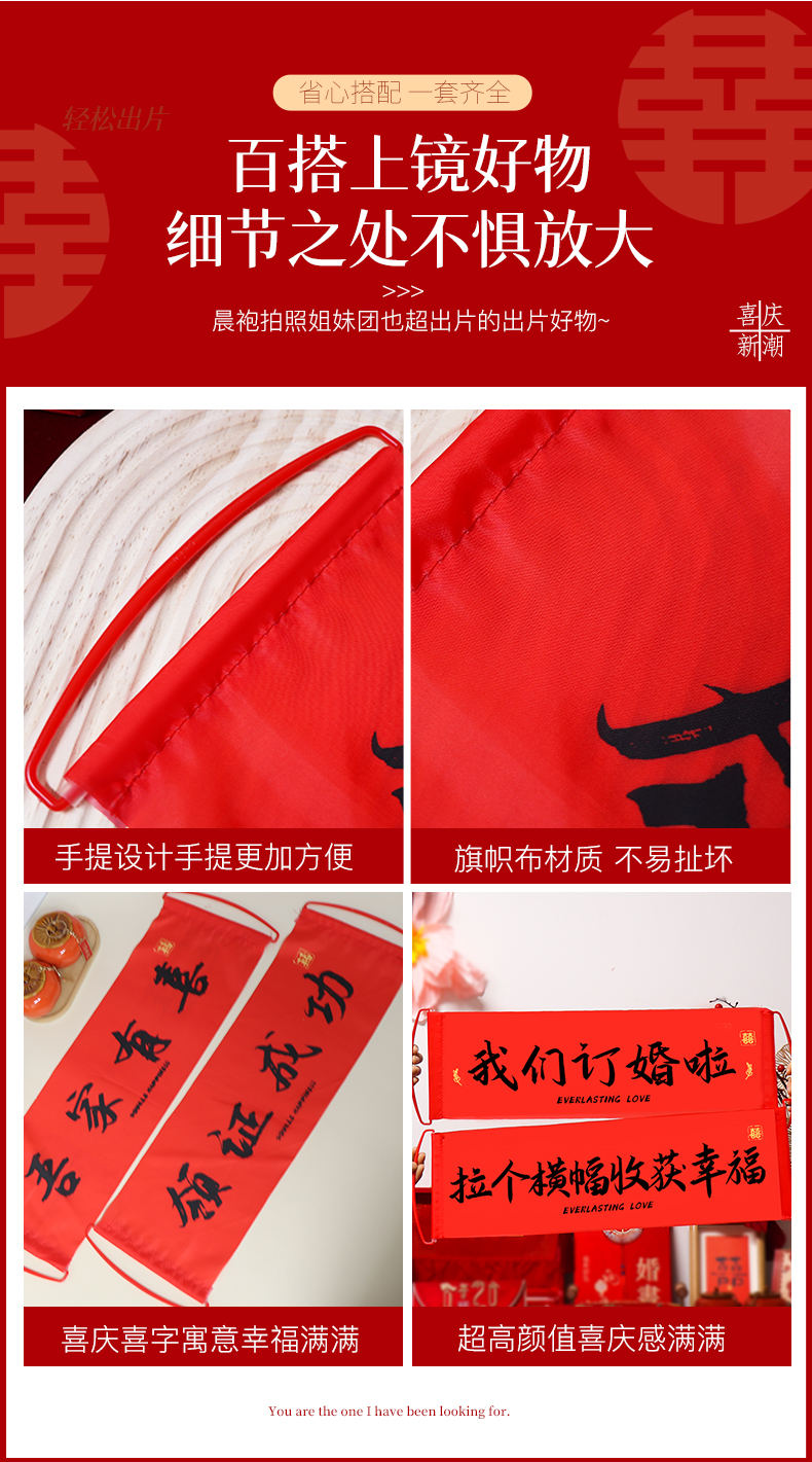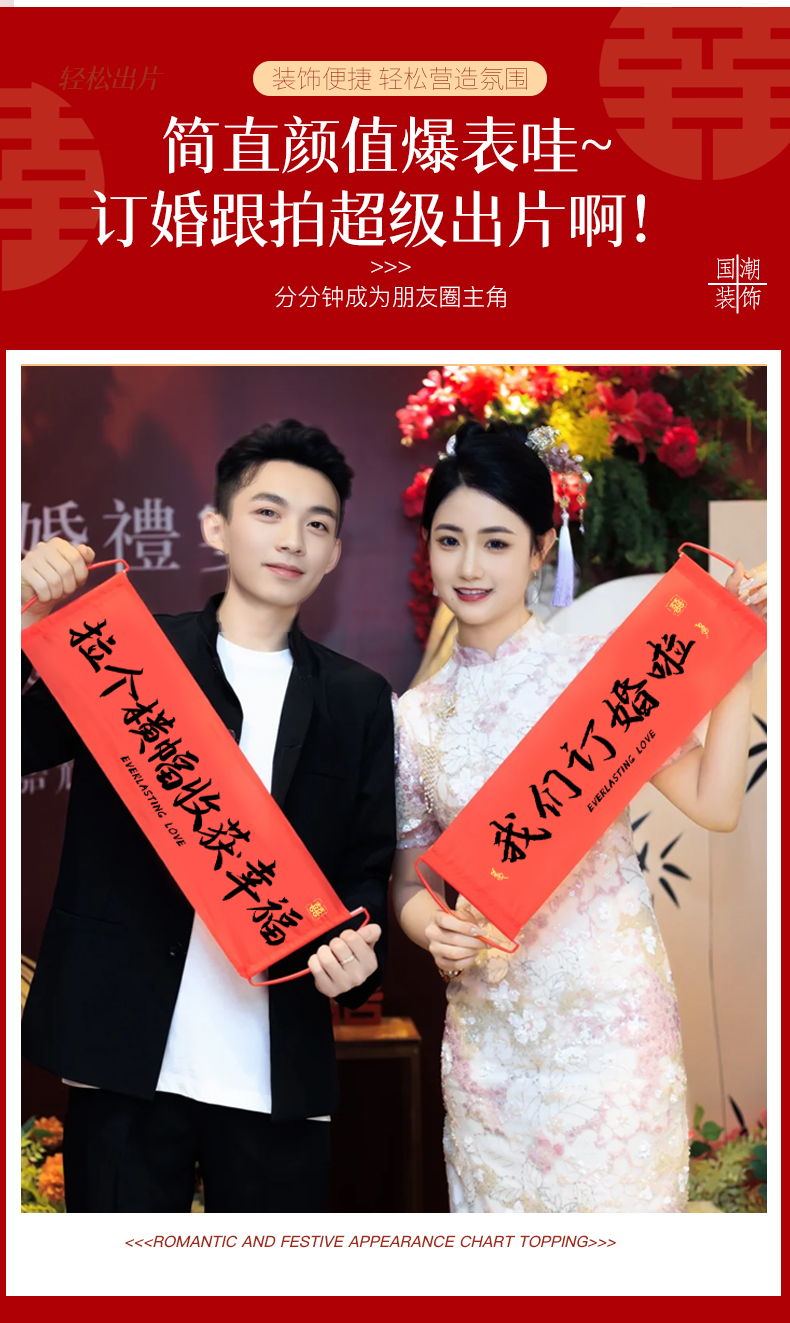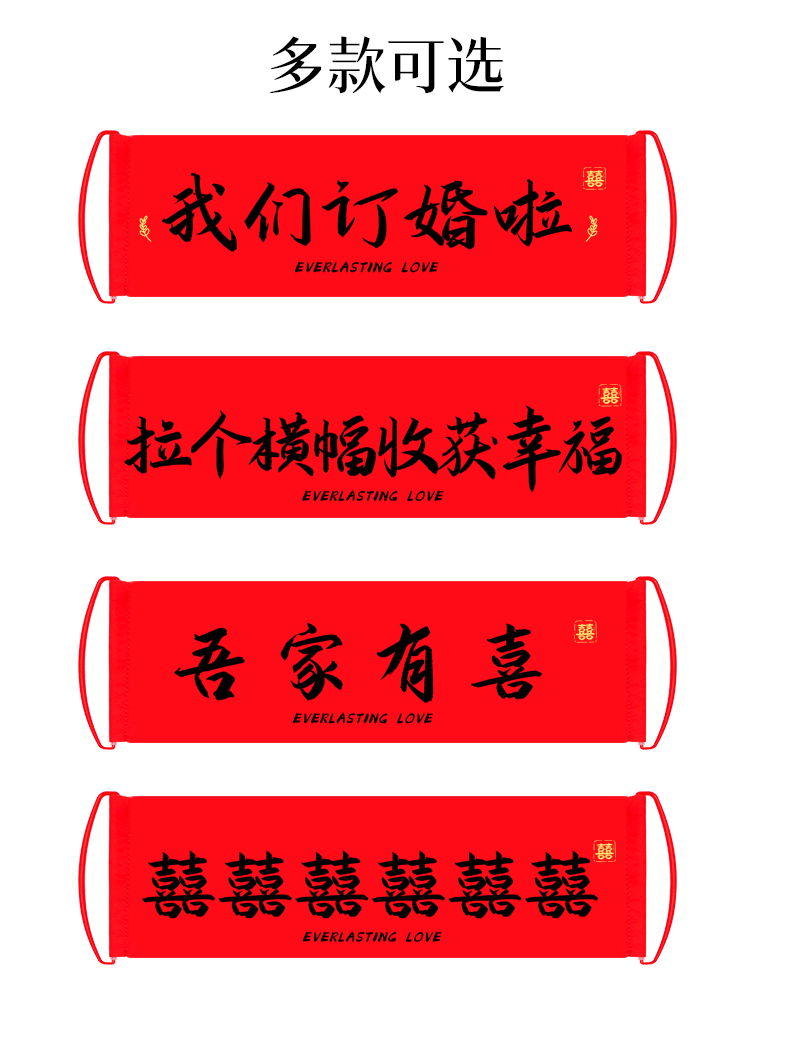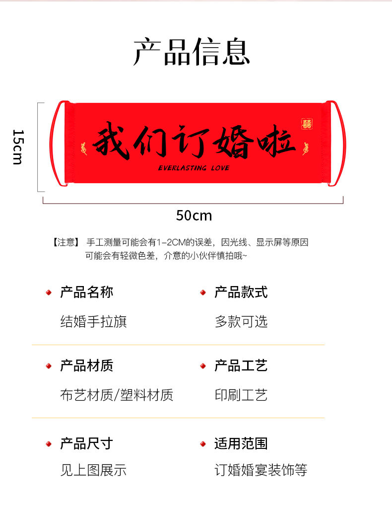 订婚拍照小道具我们订婚啦手拉旗装饰摆件拍照小道具手持喜字灯笼