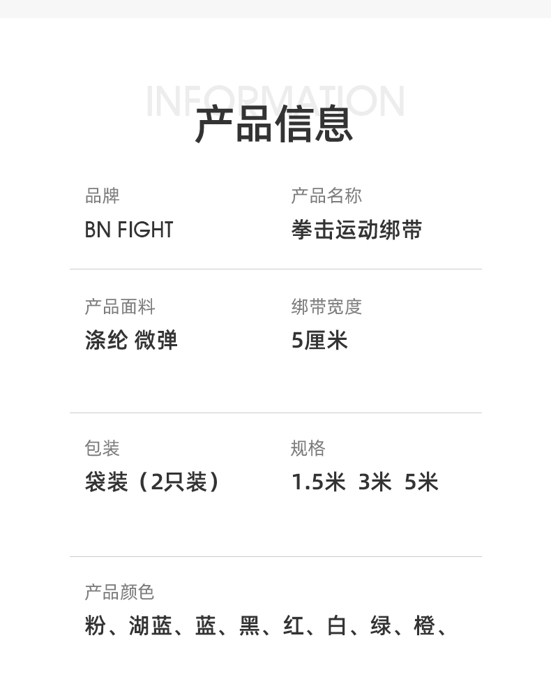 BN FIGHT拳击绑带护手成人儿童3米5米缠手带搏击泰拳绑手绷带弹力