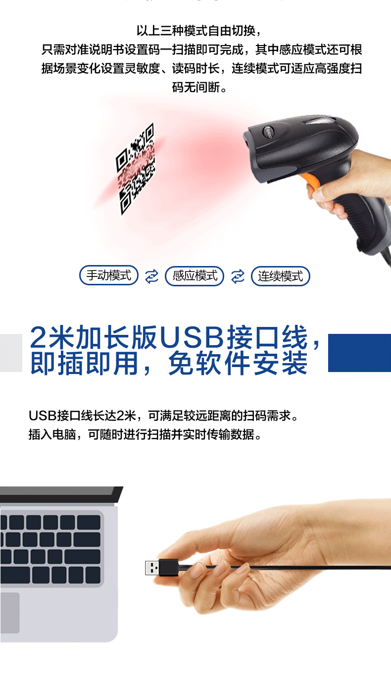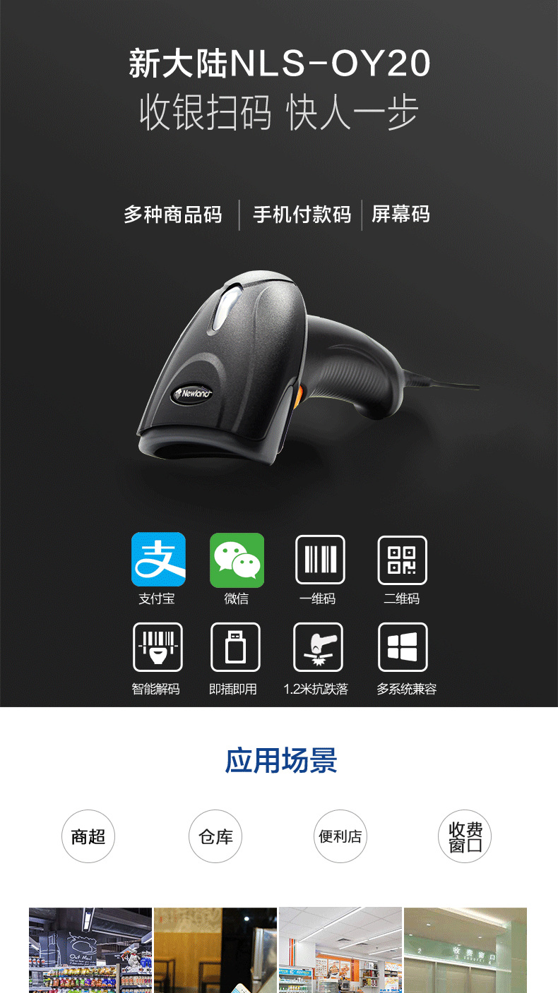 新大陆扫码枪手持式条码扫描器NLS-OY20+超市药店药品追溯码USB连接电脑收银机 有线无线蓝牙串口RS232二维码