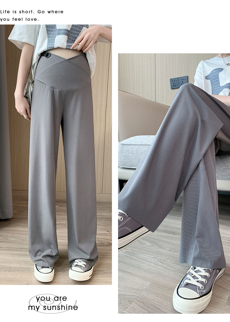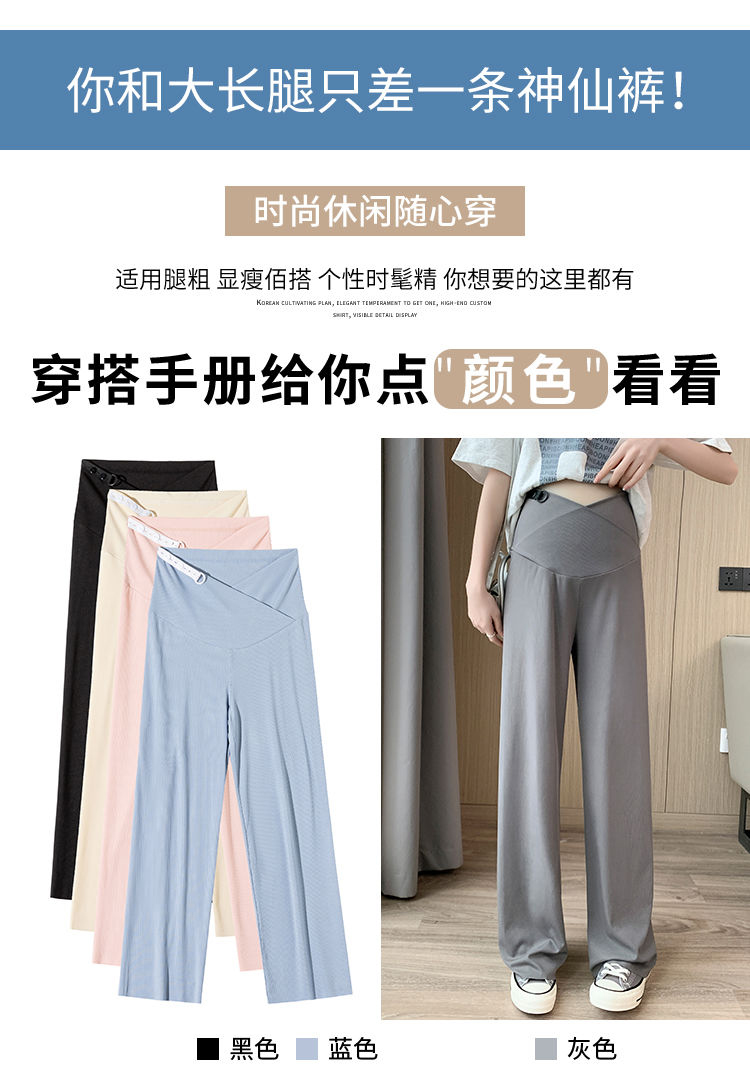 孕妇裤子阔腿裤夏季薄款外穿冰丝休闲裤直筒裤宽松打底裤夏装交叉