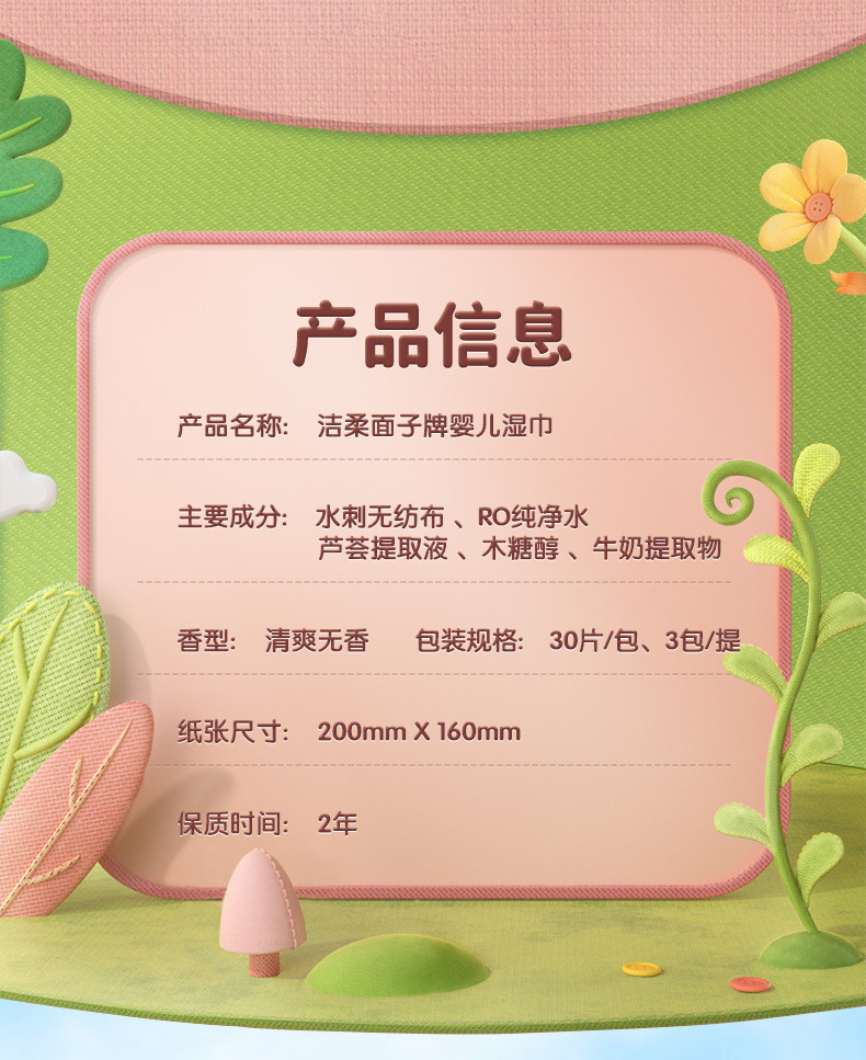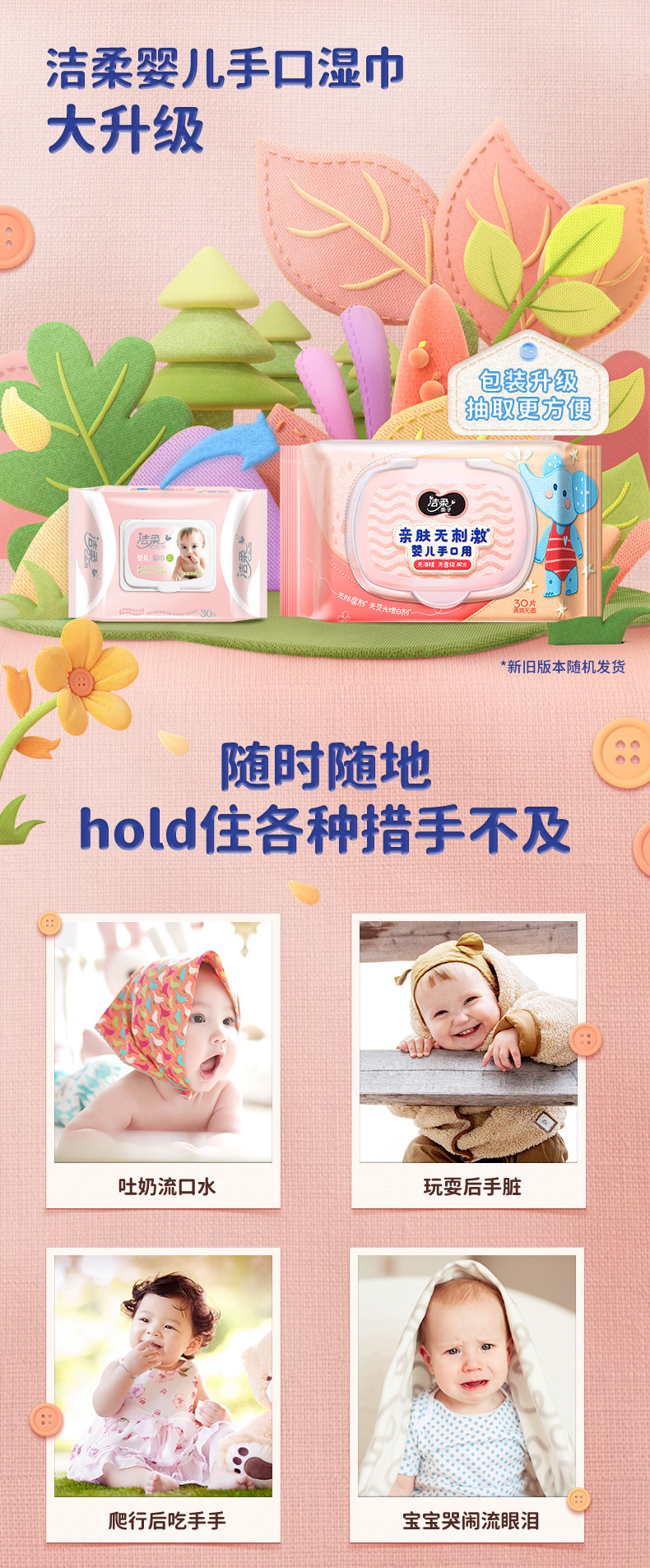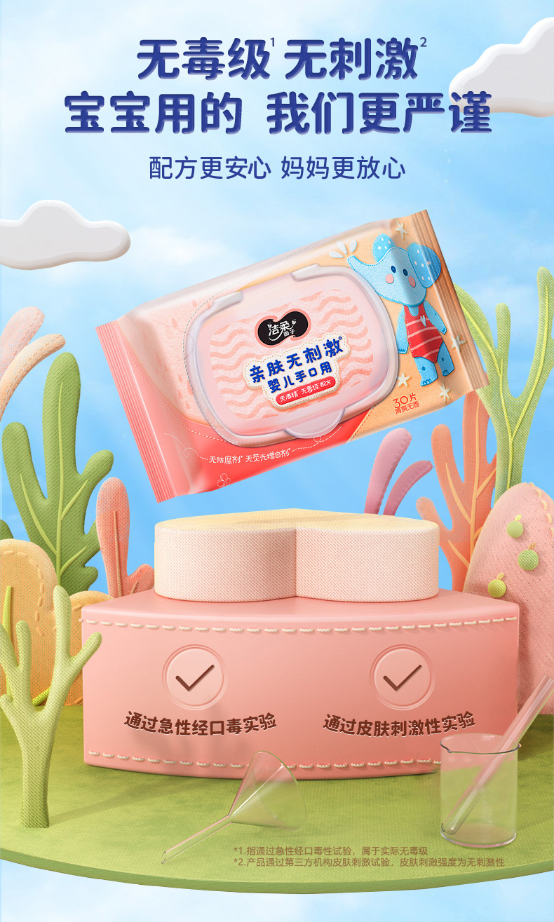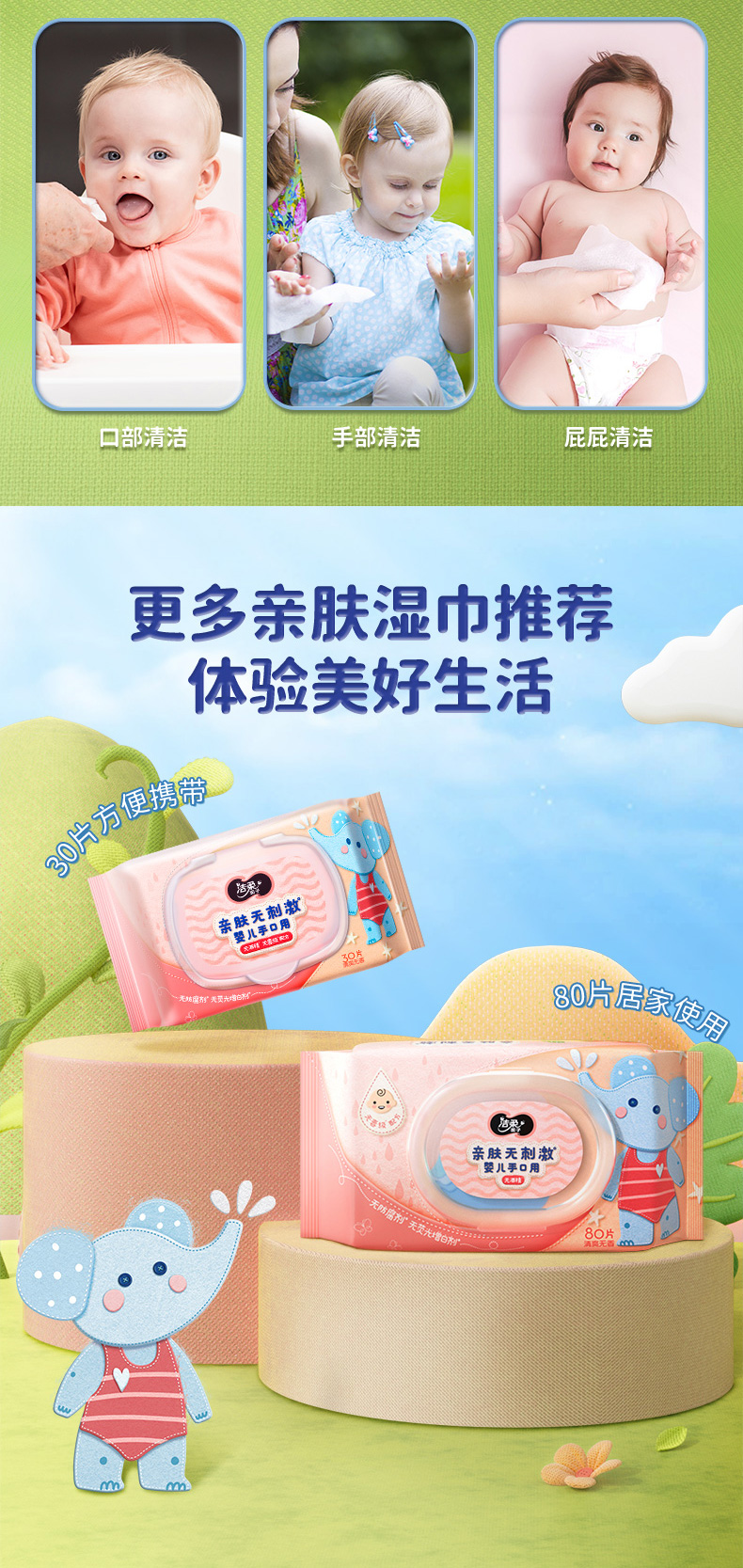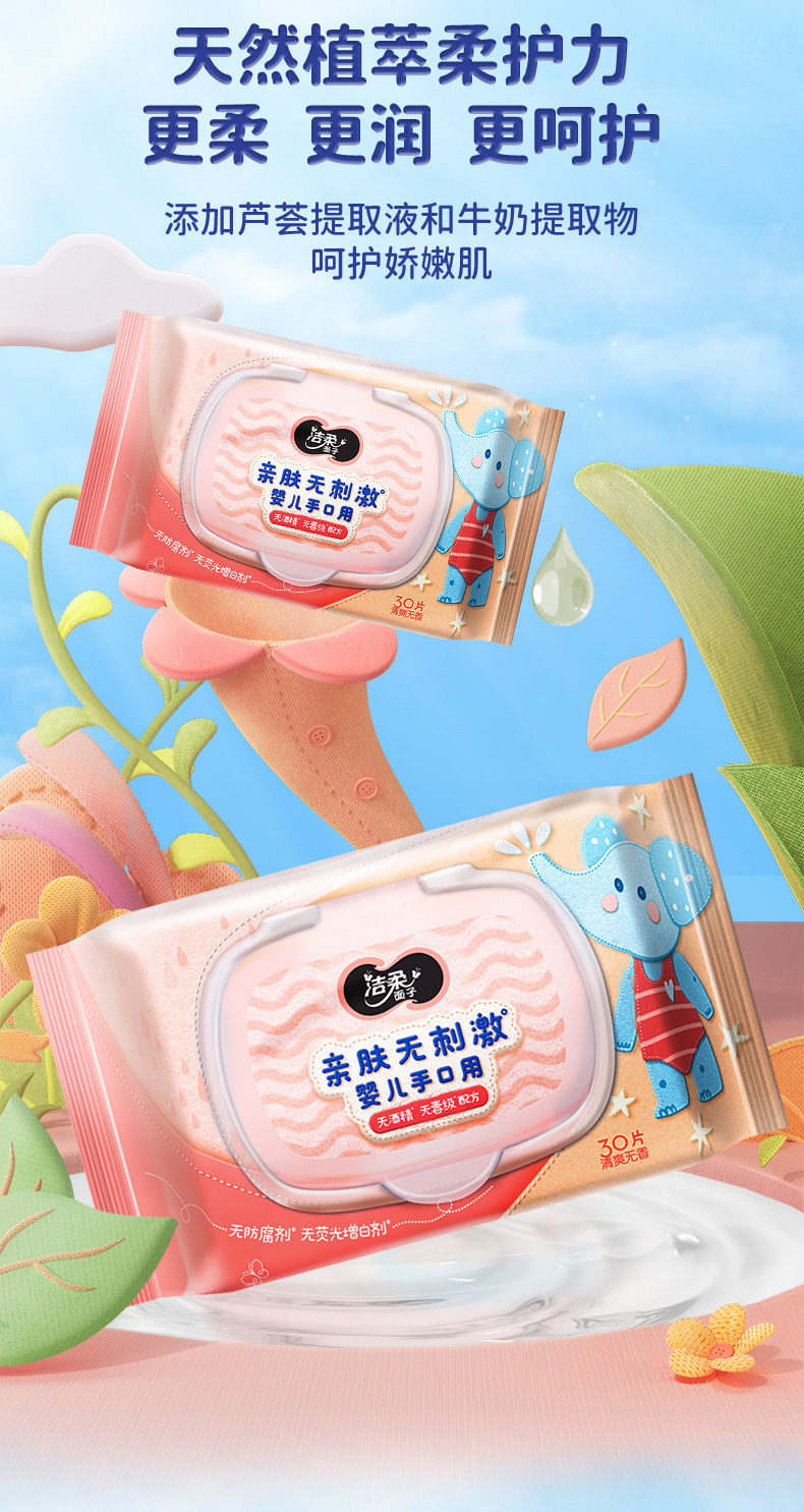 洁柔湿巾婴儿手口湿纸巾30片厚实柔软家用宝宝母婴专用家庭实惠装