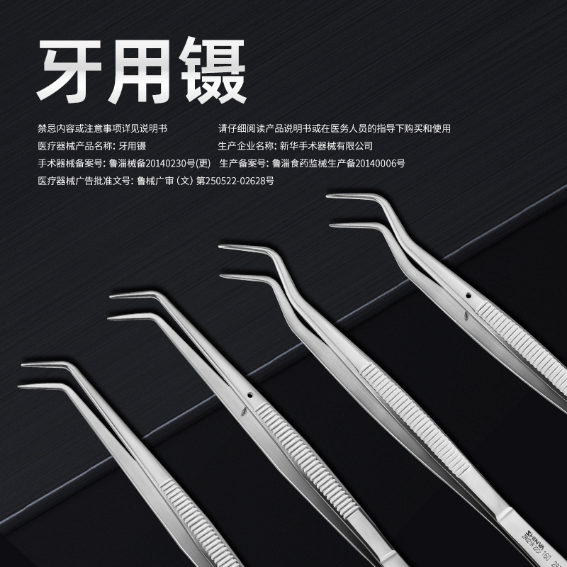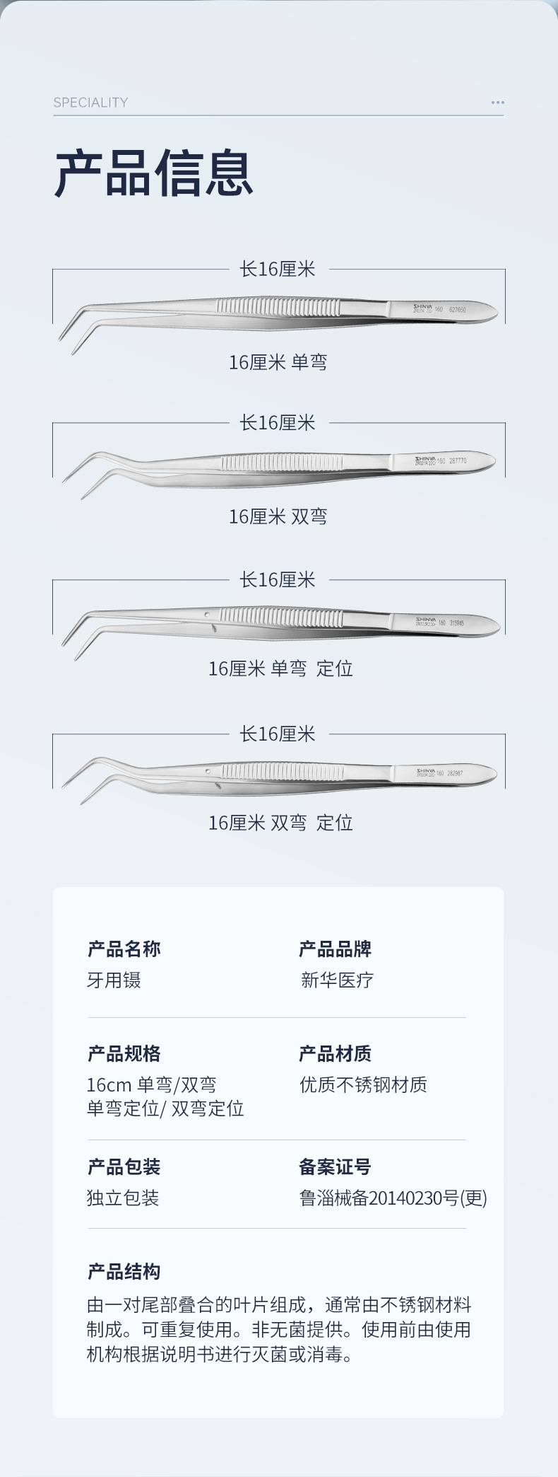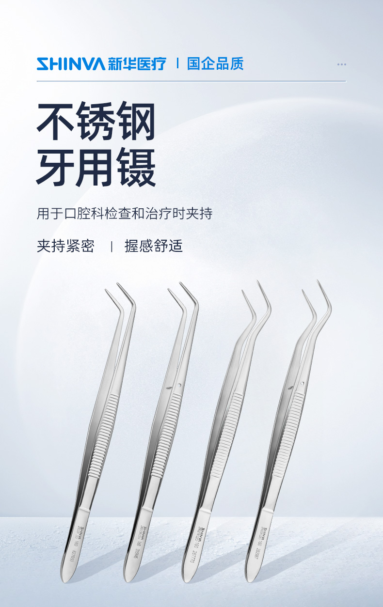 新华医疗牙用镊16厘米医用不锈钢镊子夹子弯头牙科口腔科手术器械