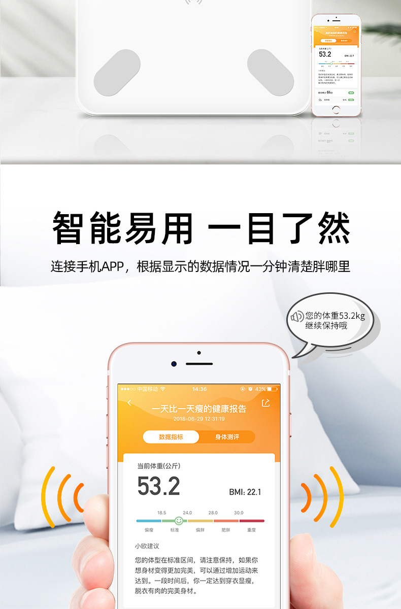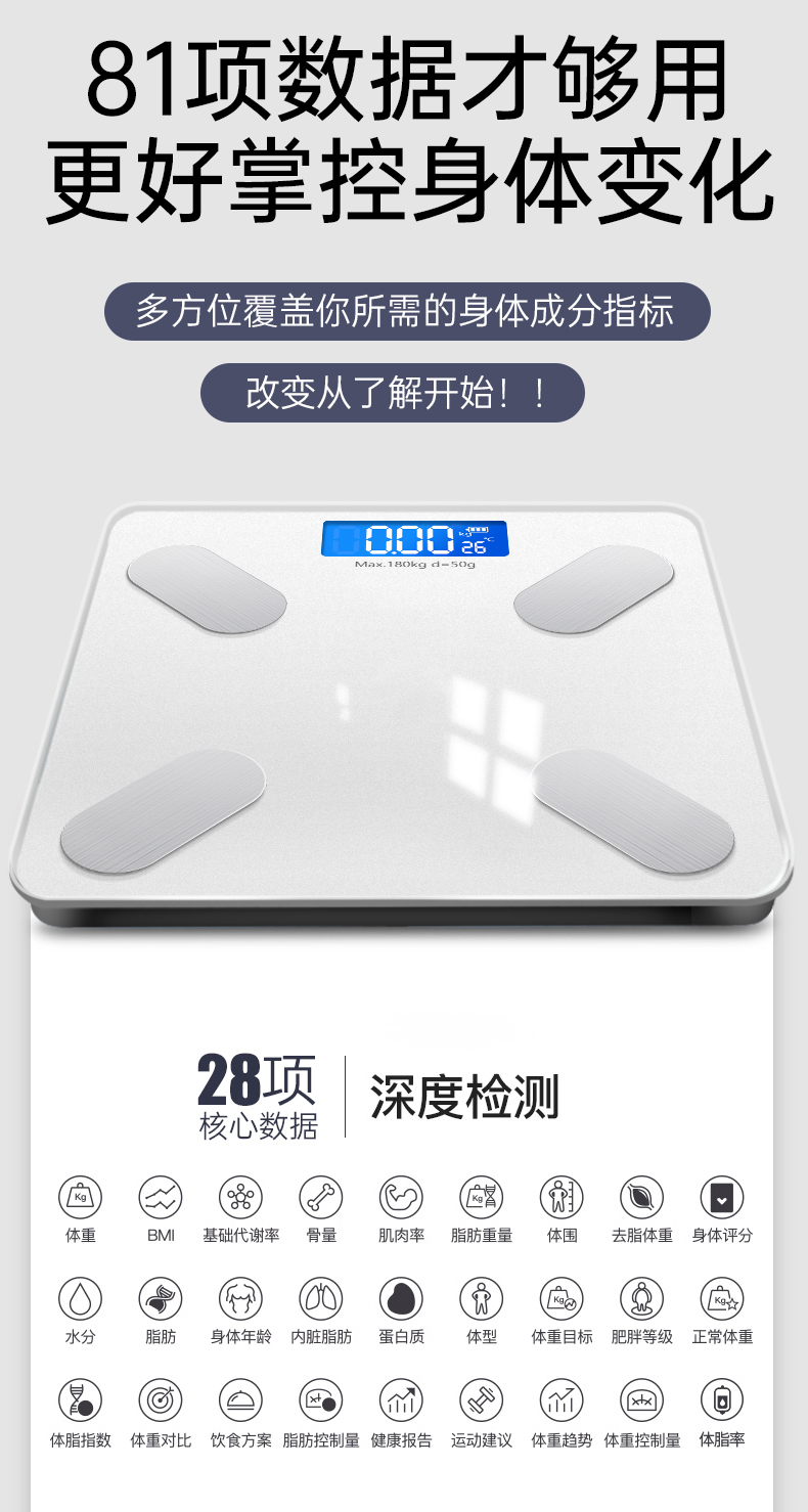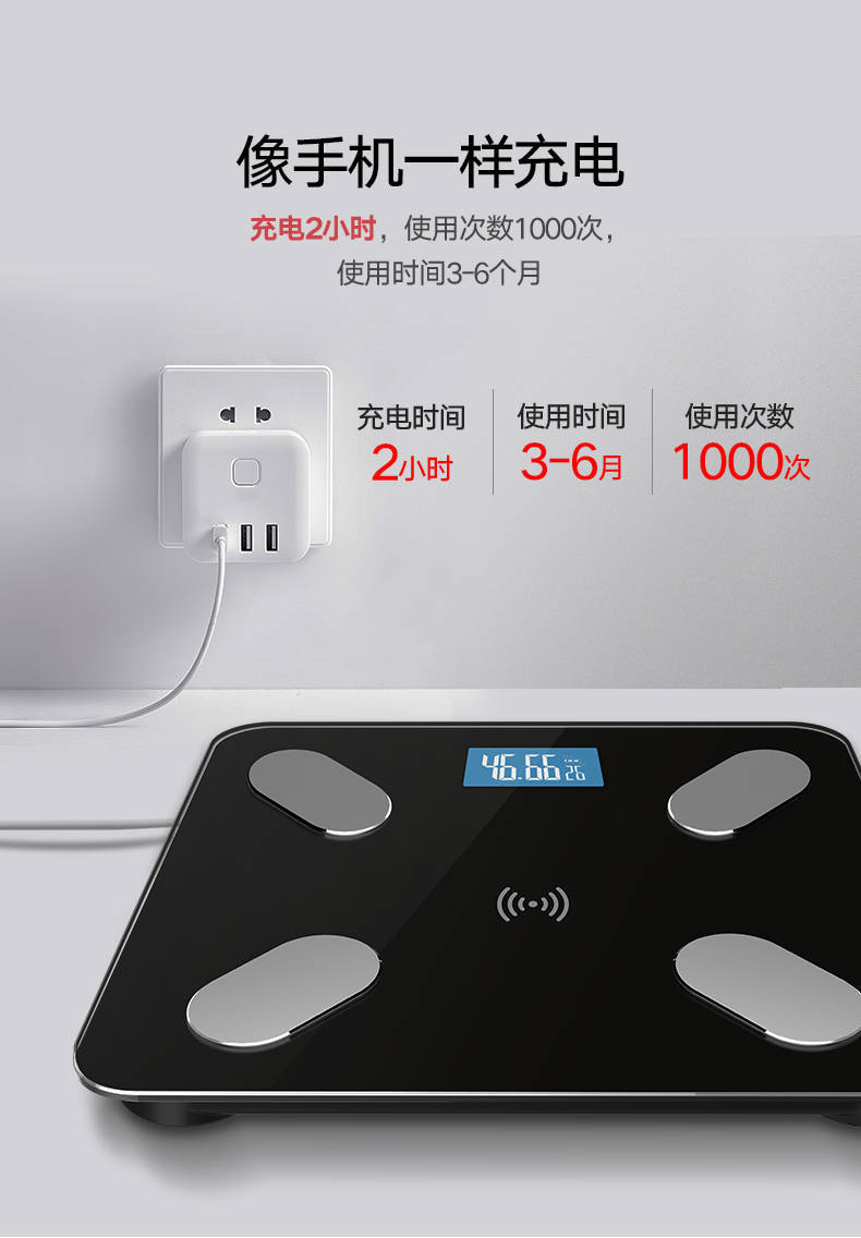 多锐okok智能测脂肪体脂称蓝牙专业体重秤家用充电精准小型称重秤