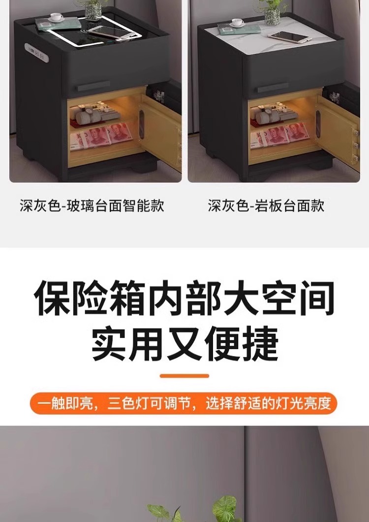 智能床头柜简约现代家用卧室收纳柜轻奢高级主卧收纳柜保险箱一体