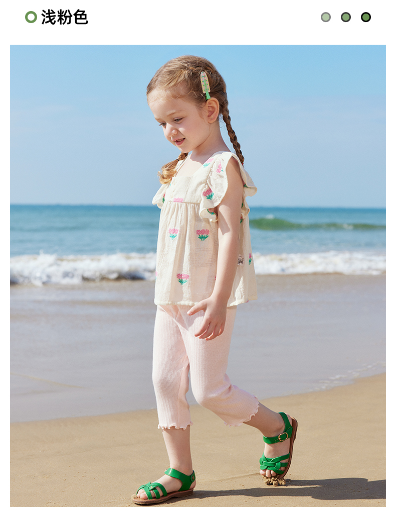 贝肽斯女童打底裤夏季薄款凉感抗菌婴儿宝宝冰丝防蚊防晒七分裤子