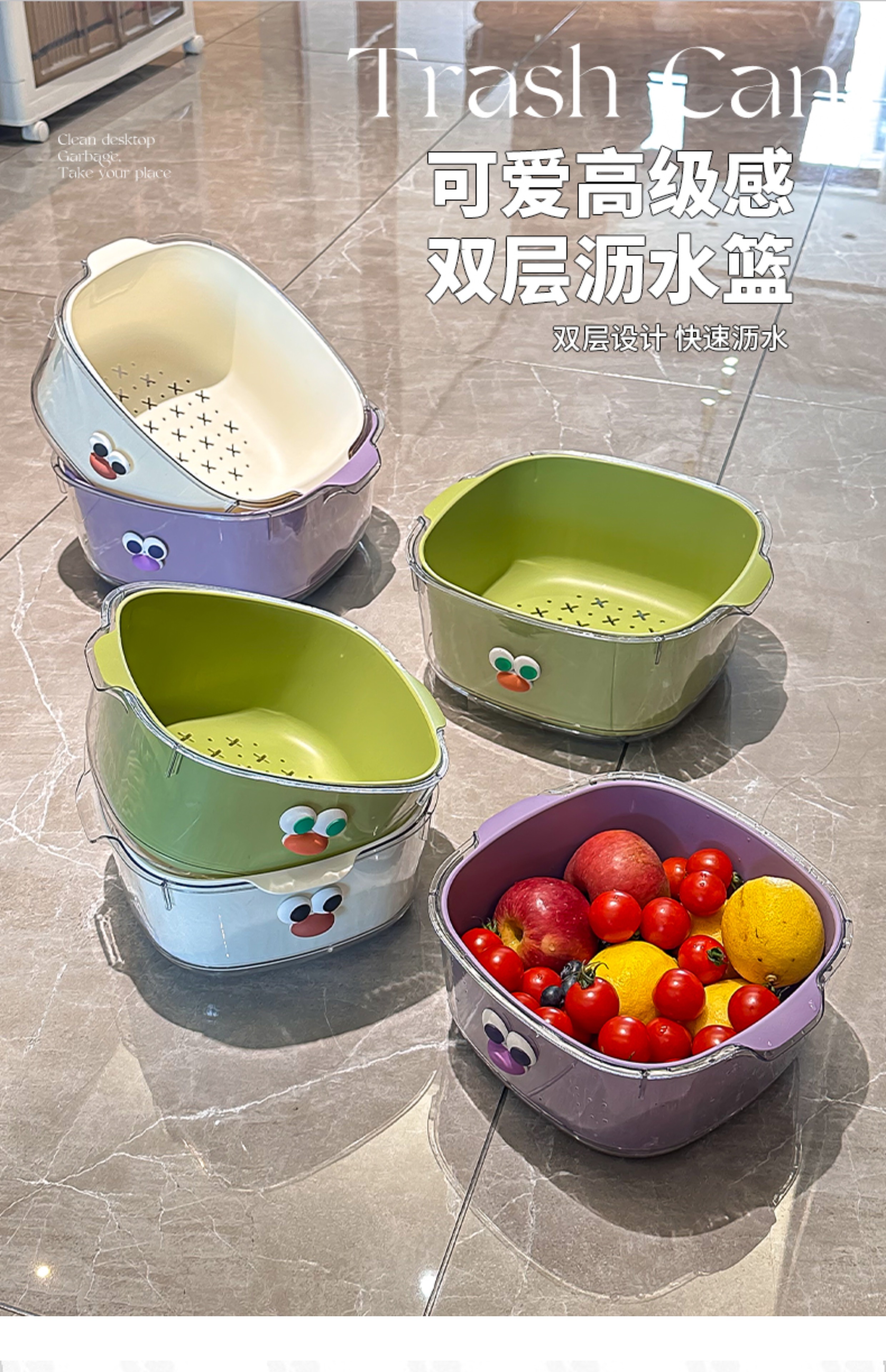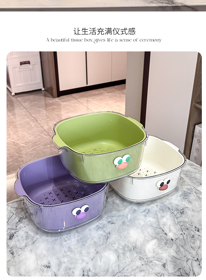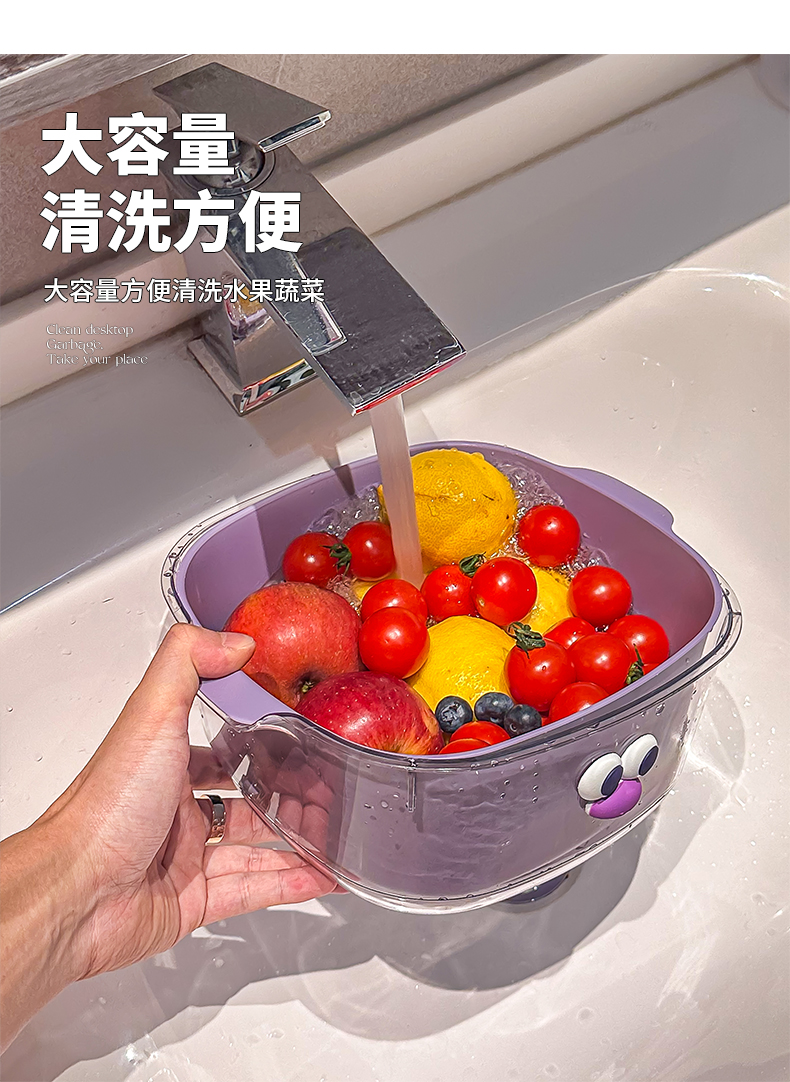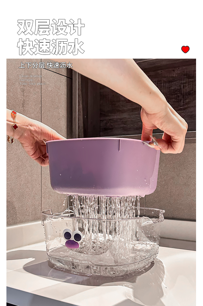 双层多巴胺沥水篮家用可爱水果篮子清洗滤水二合一加厚果盘洗菜篮