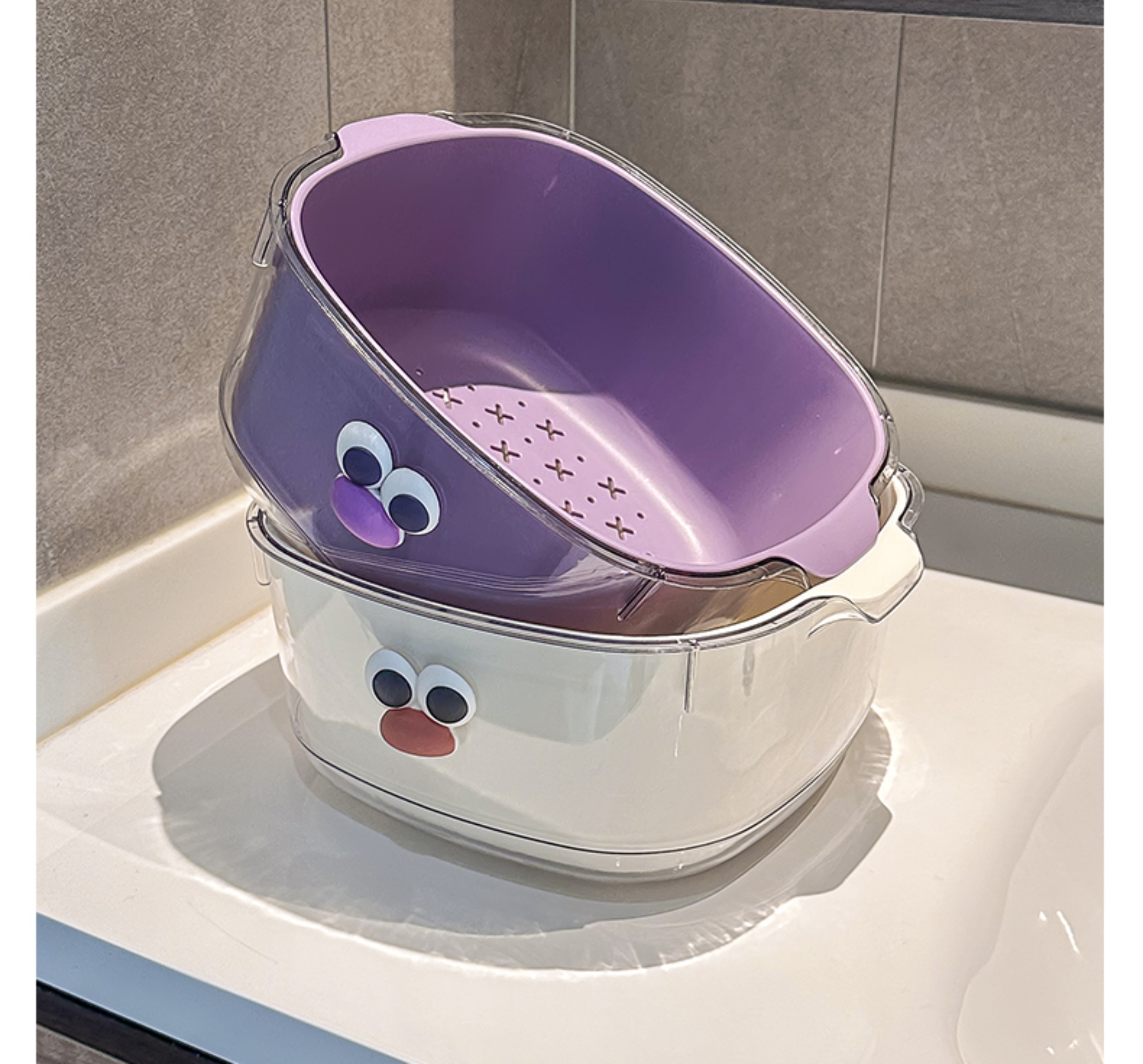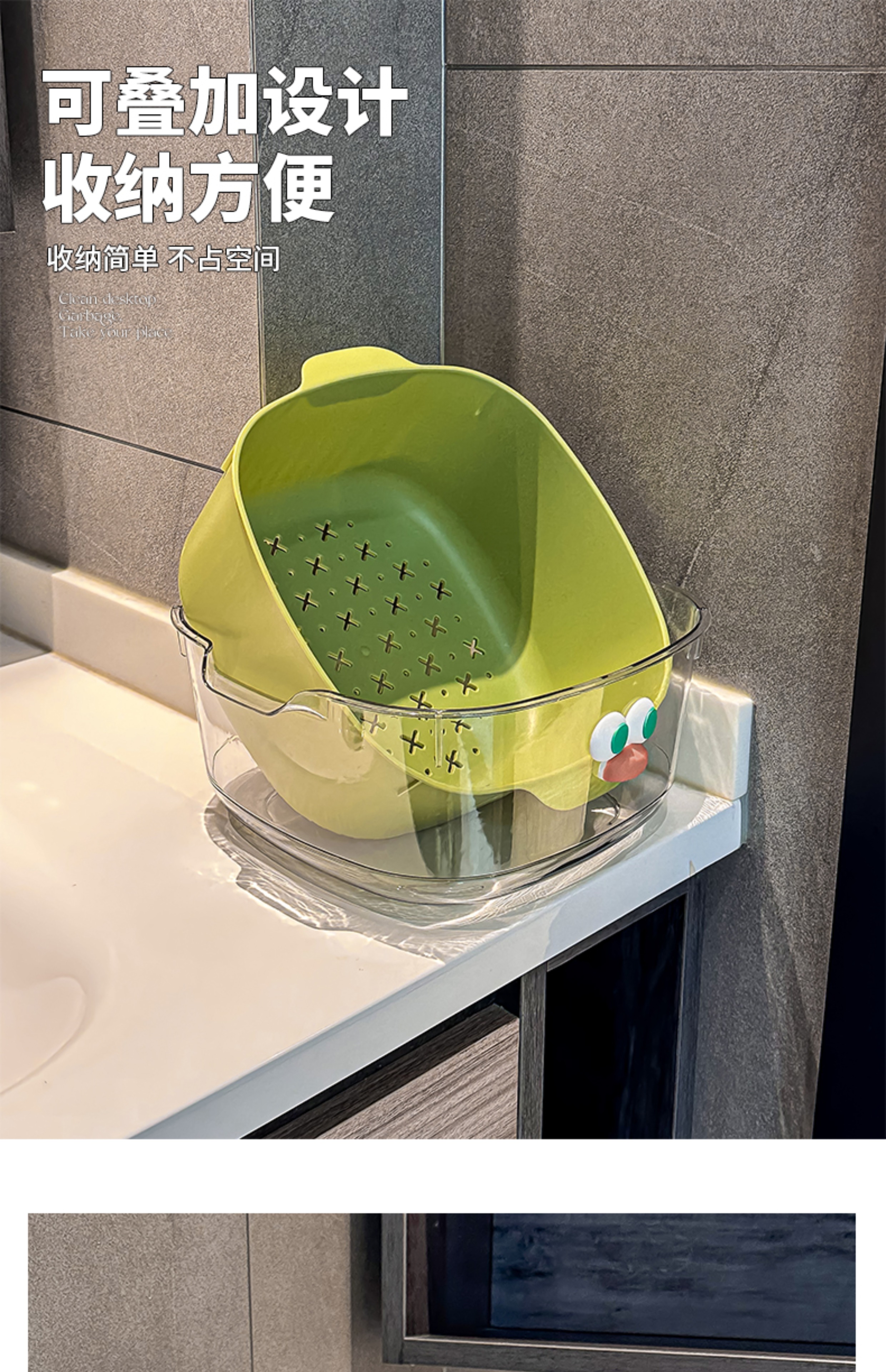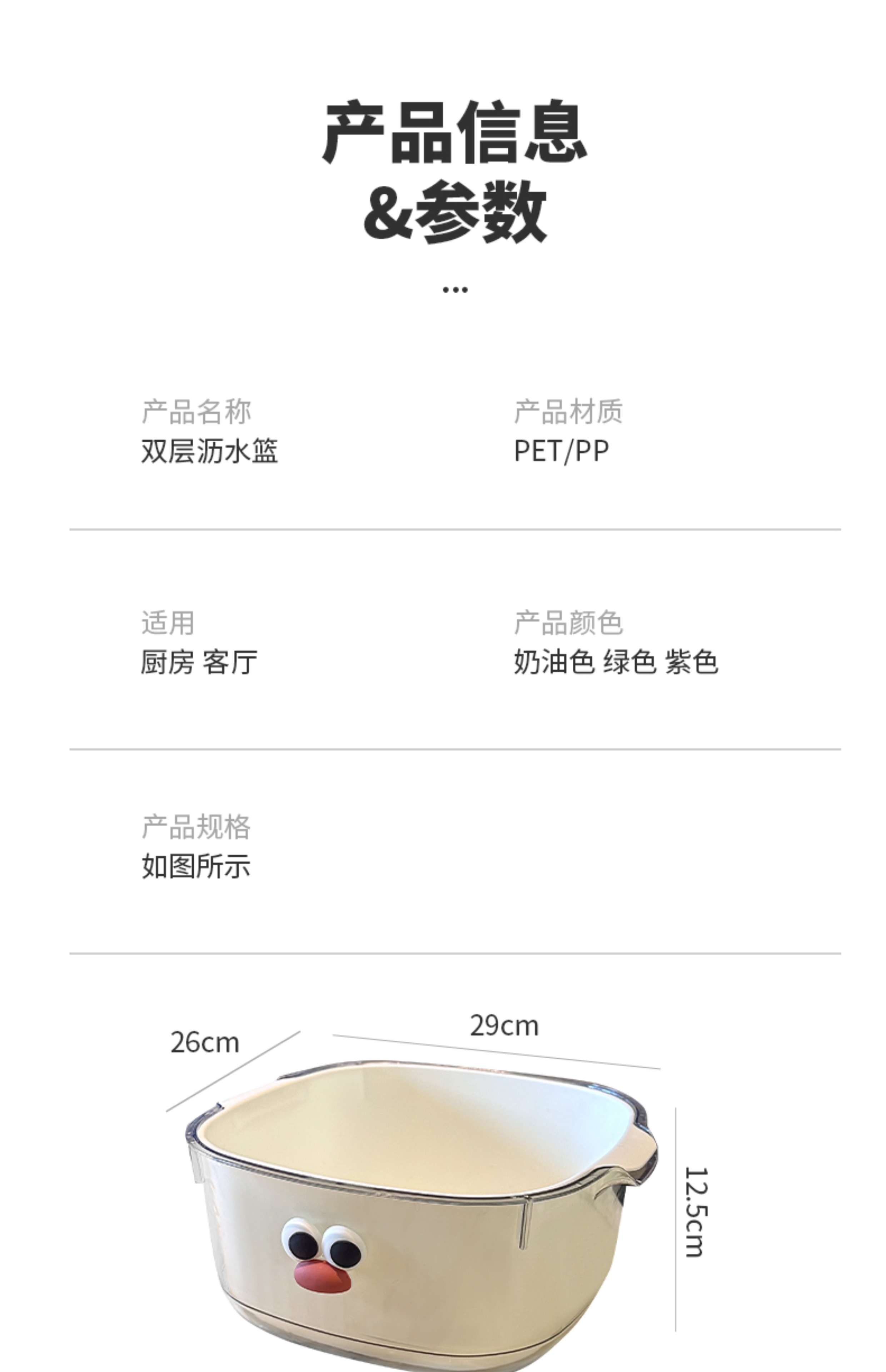 双层多巴胺沥水篮家用可爱水果篮子清洗滤水二合一加厚果盘洗菜篮