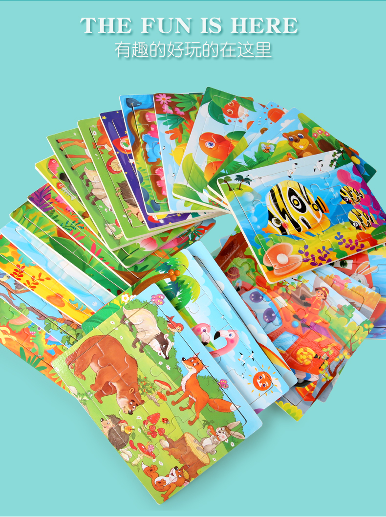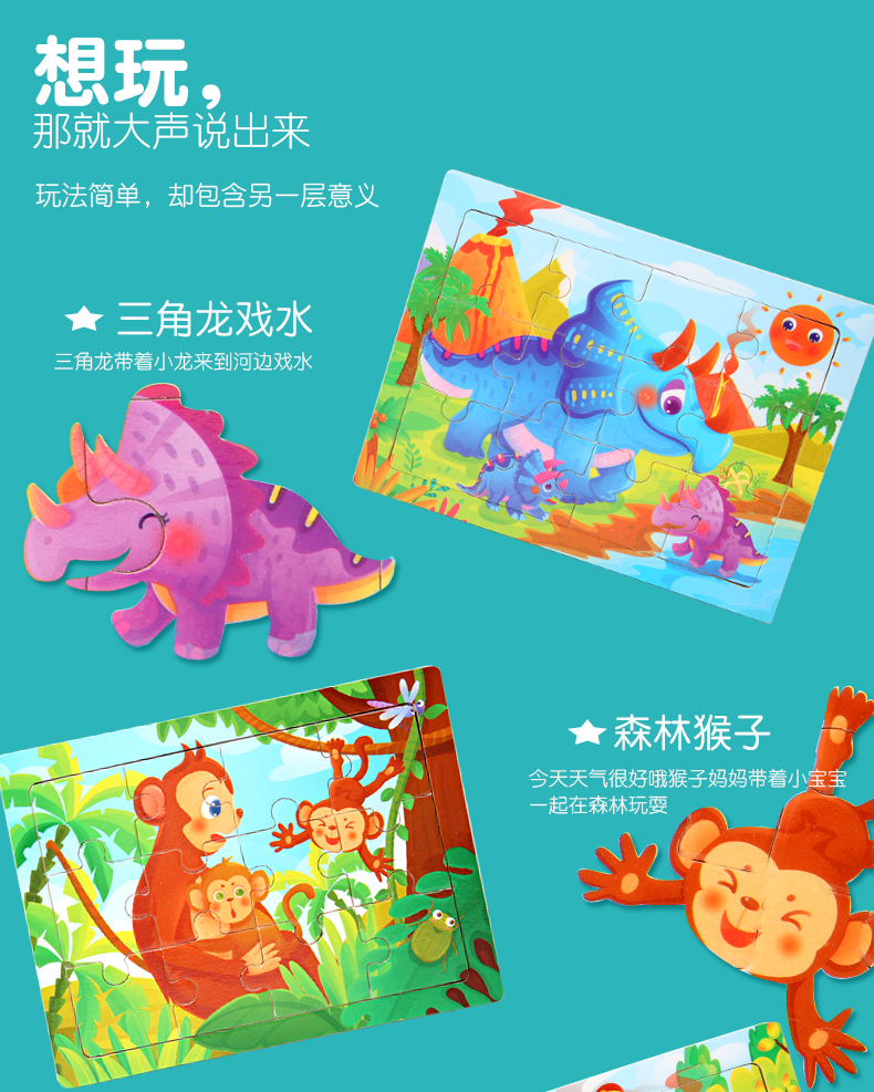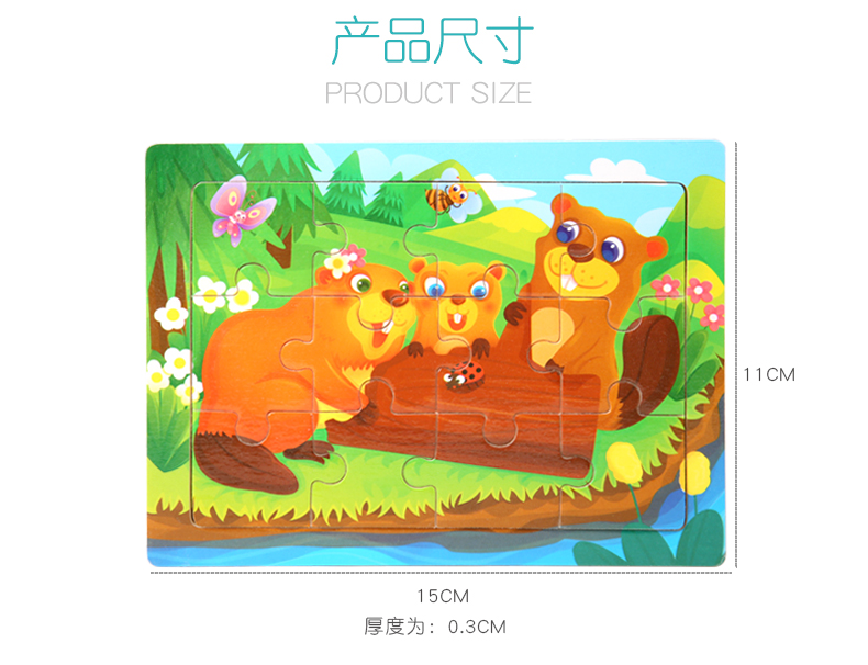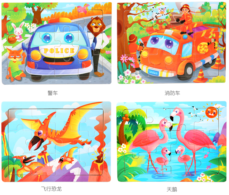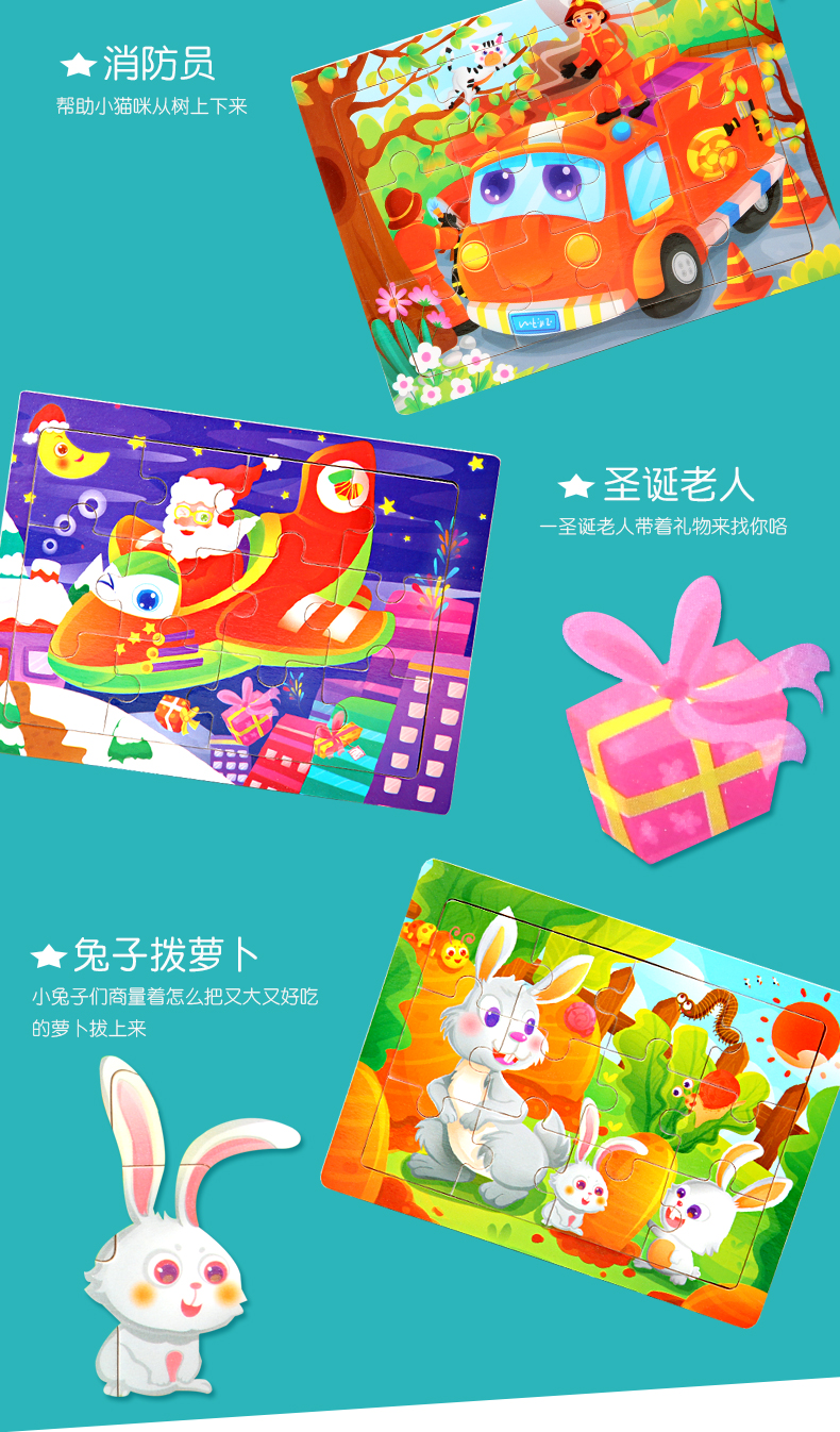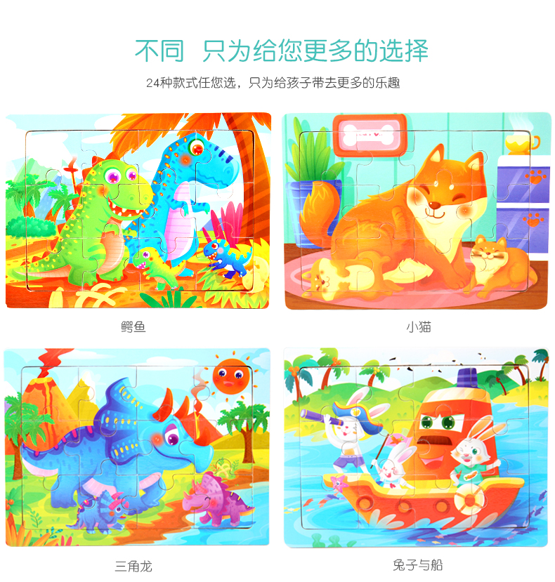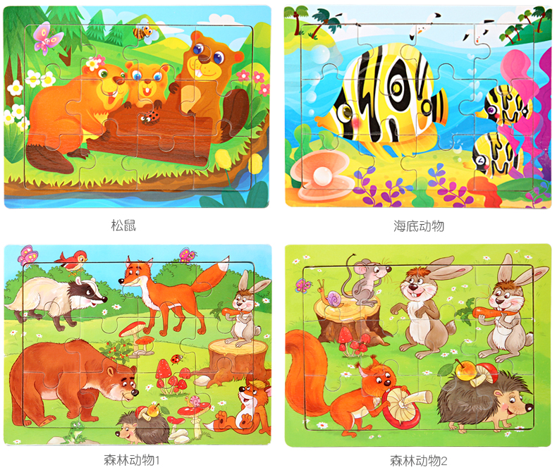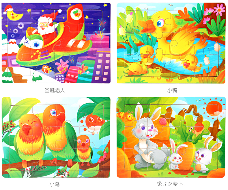 幼儿童拼图12片早教益智2-4岁3宝宝男女智力开发卡通动物木制拼板