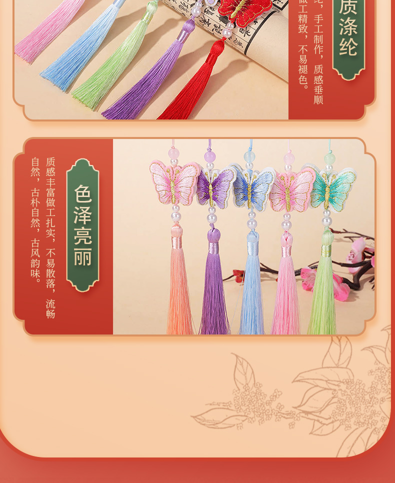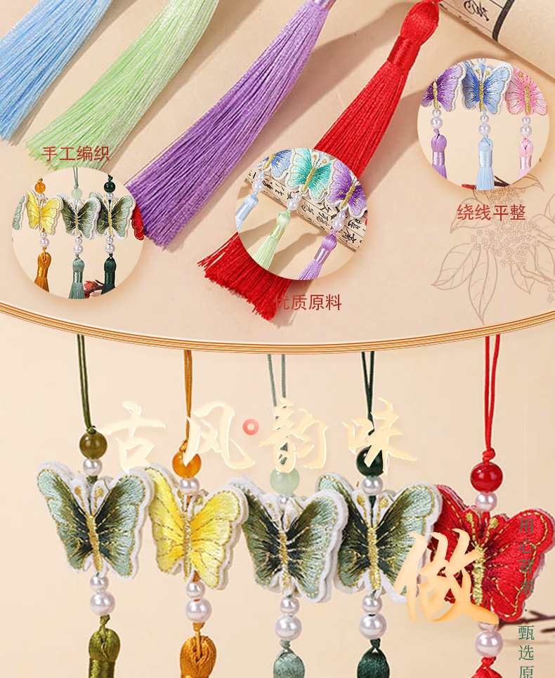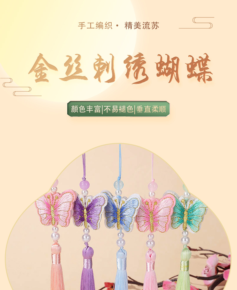 金丝刺绣蝴蝶流苏 国风美少女压襟璎珞吊坠童装服装精品挂件新款