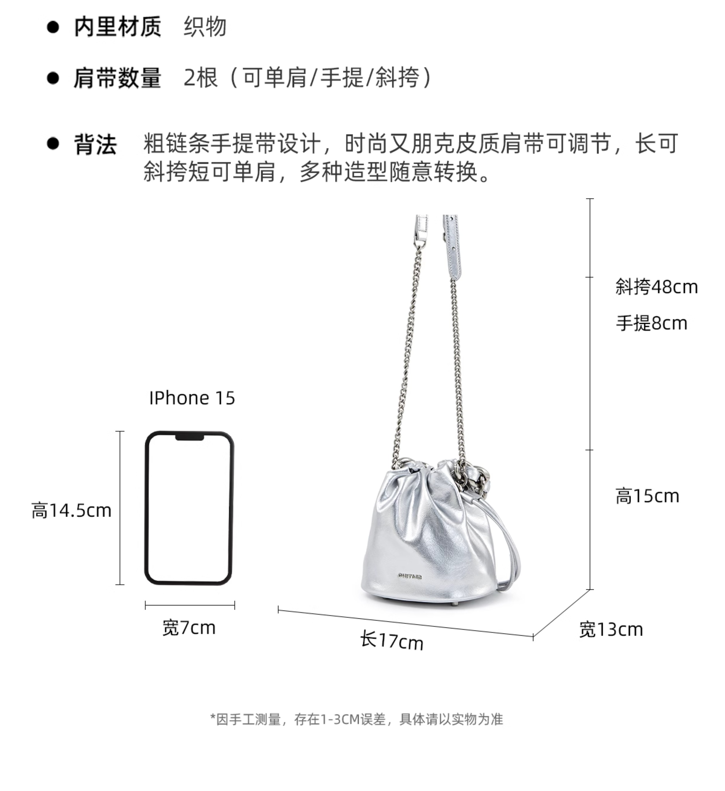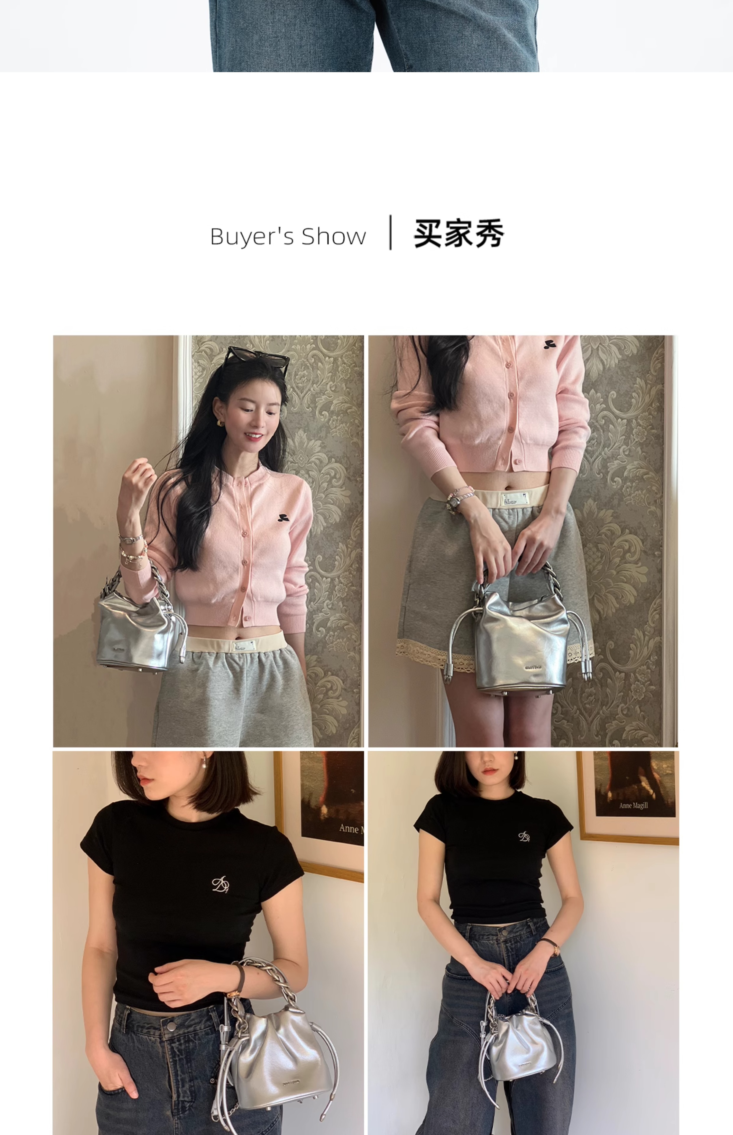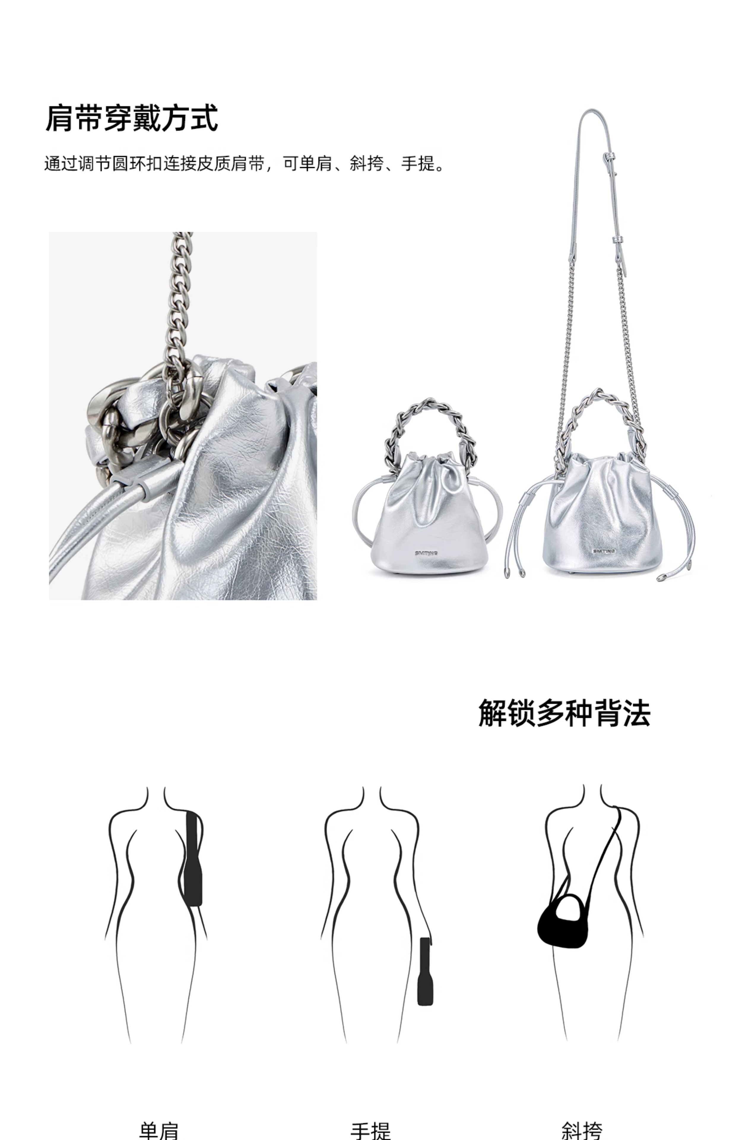 去流浪 银色小水桶包女手提包春夏新款链条包女小拎包