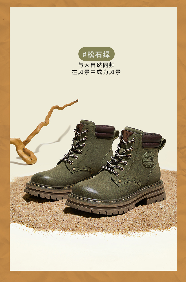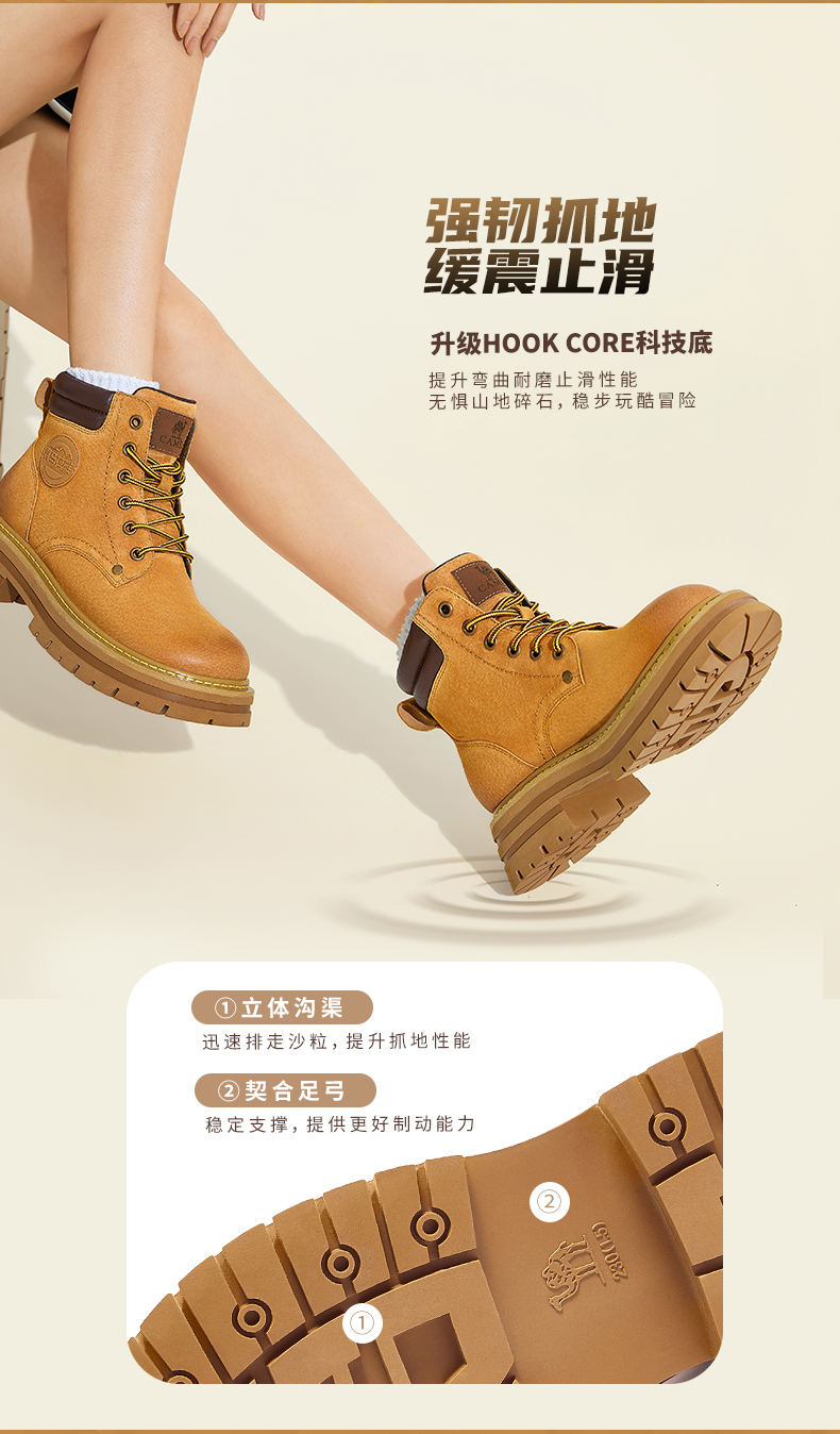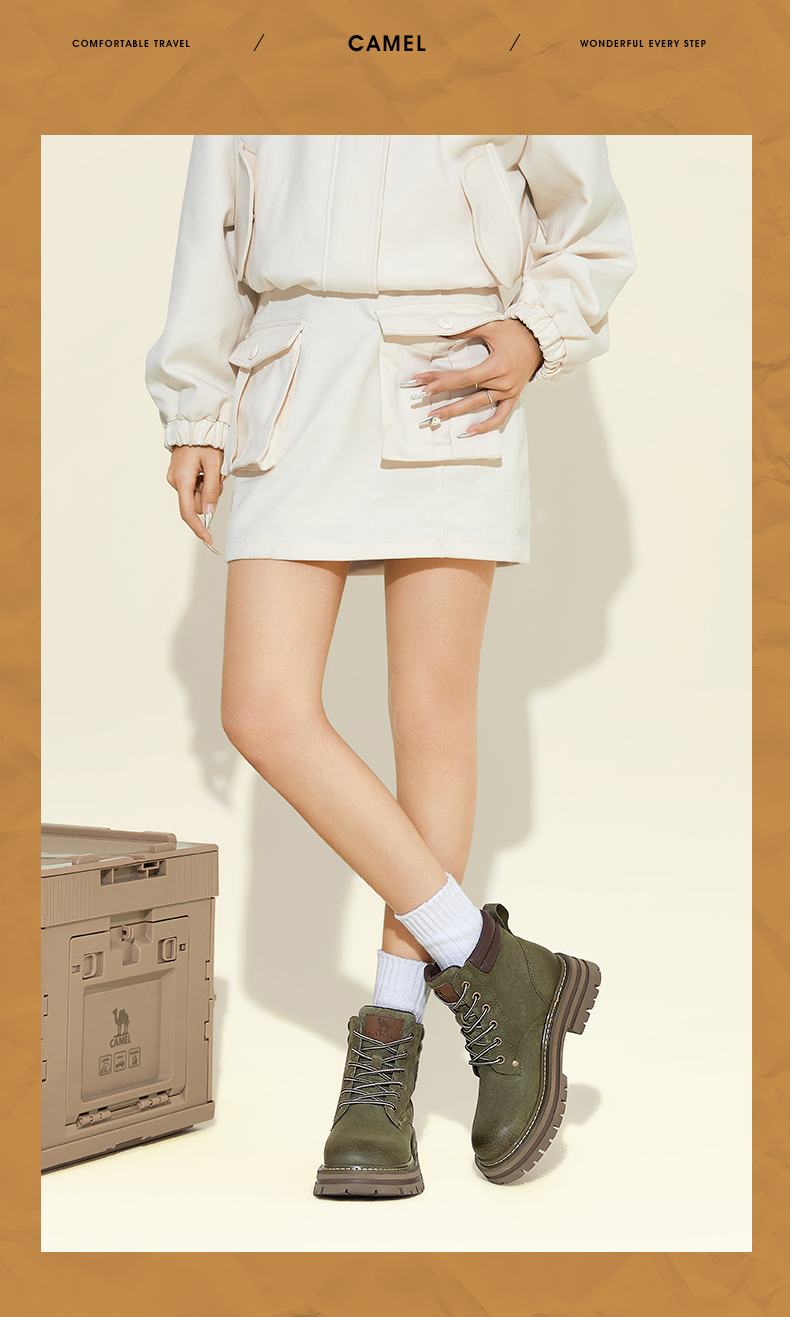 骆驼女鞋2025夏季新款马丁靴女厚底工装靴子户外耐磨踢不烂大黄靴