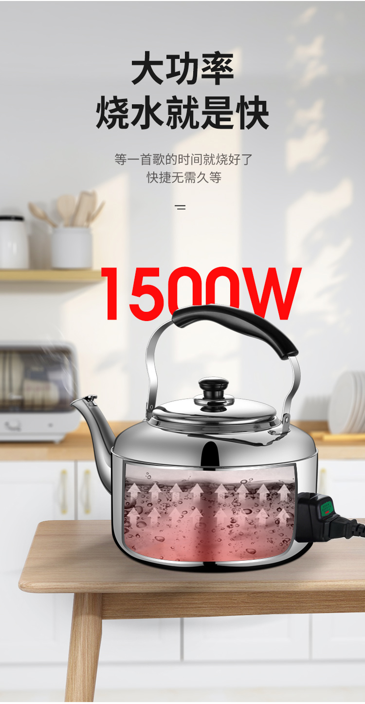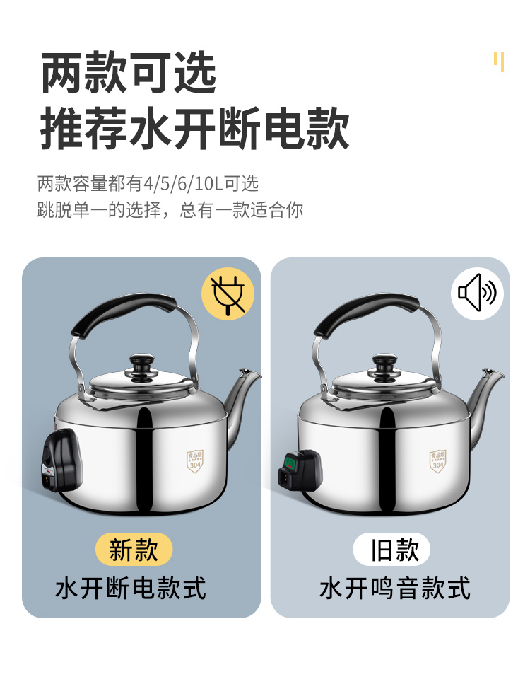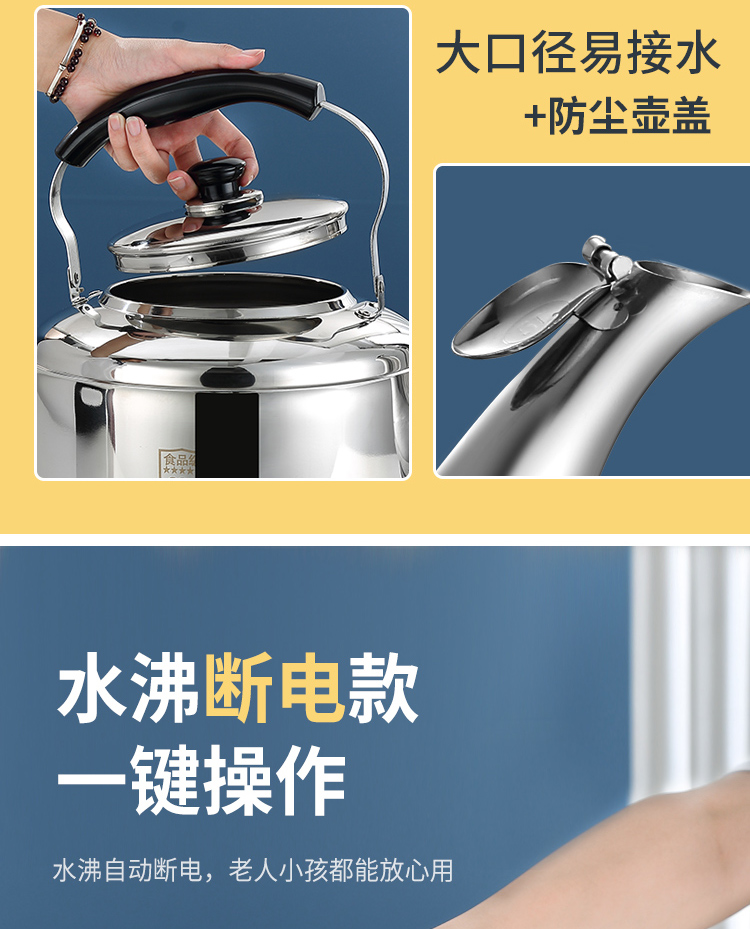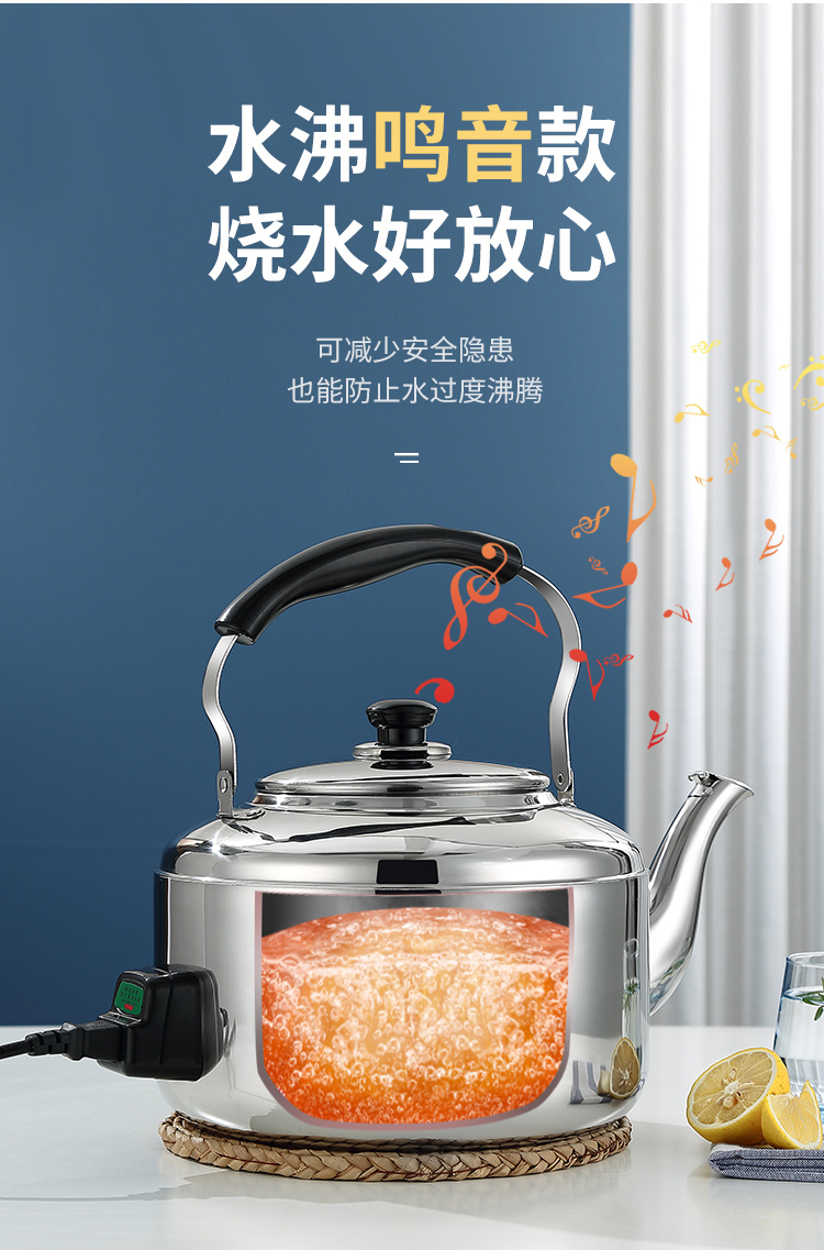 电水壶家用烧水304不锈钢大容量鸣笛商用防干烧加厚自动断电热壶