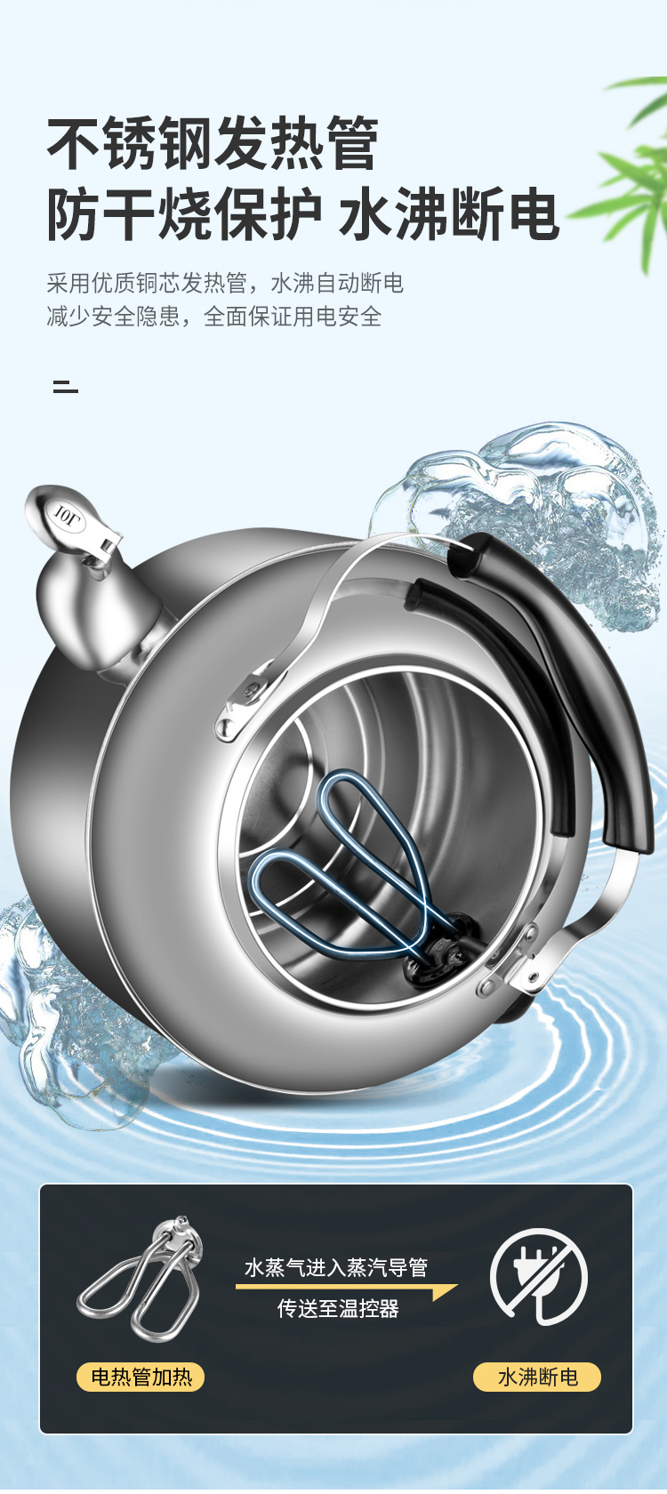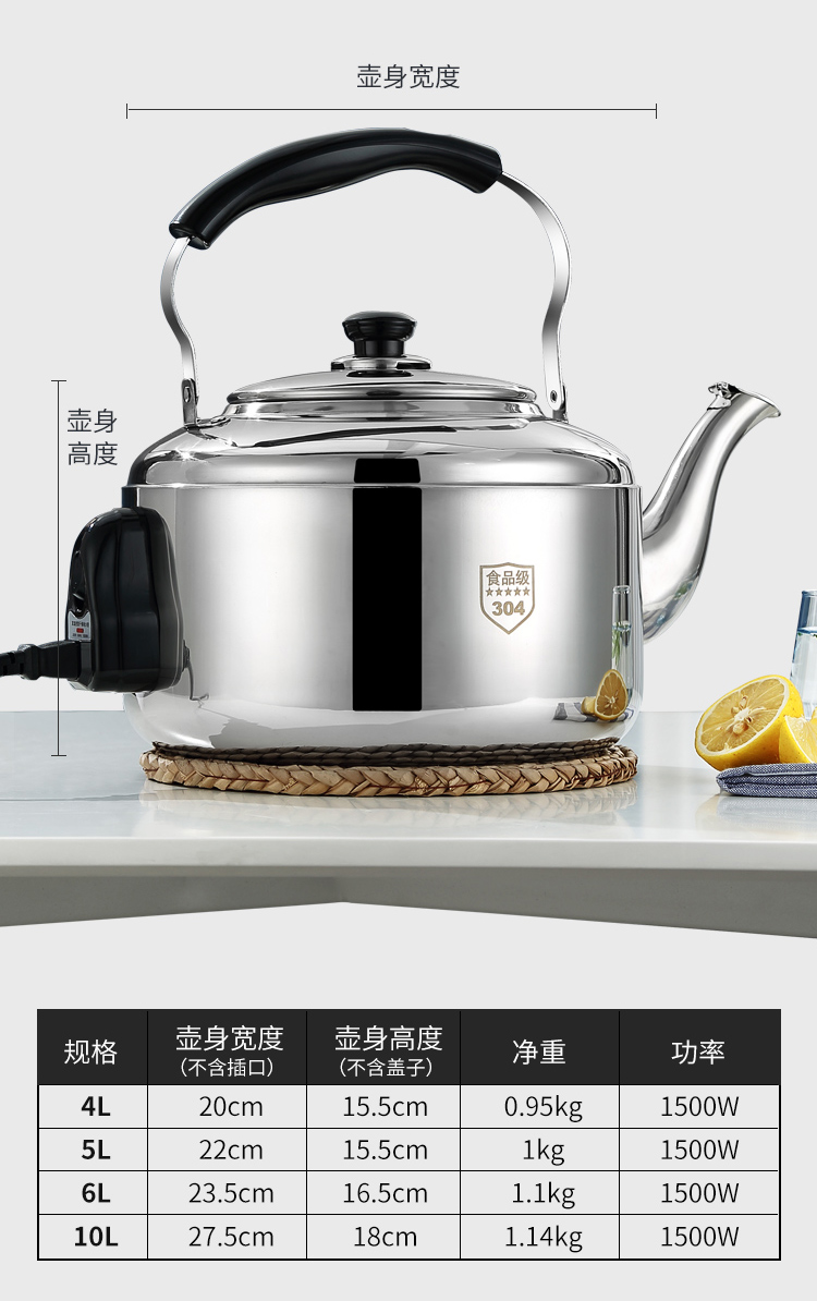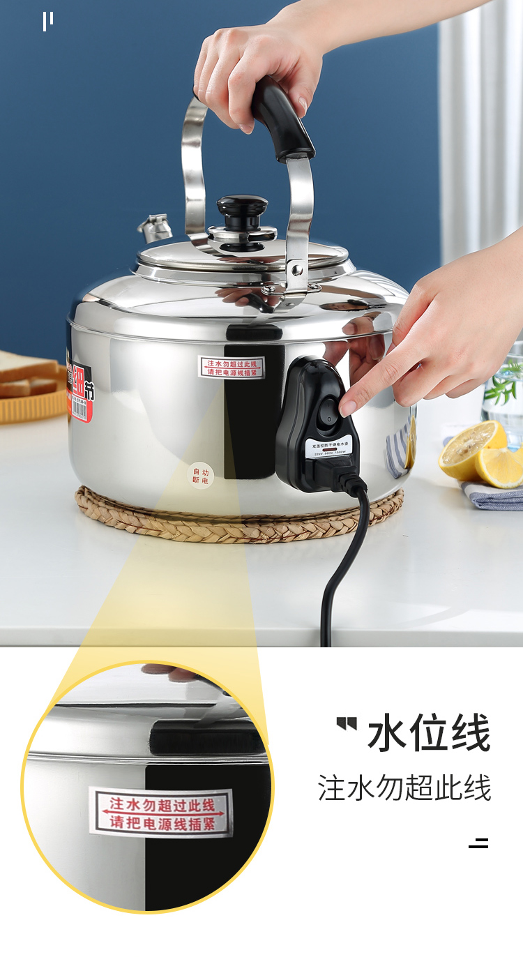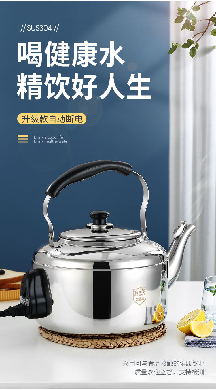 电水壶家用烧水304不锈钢大容量鸣笛商用防干烧加厚自动断电热壶