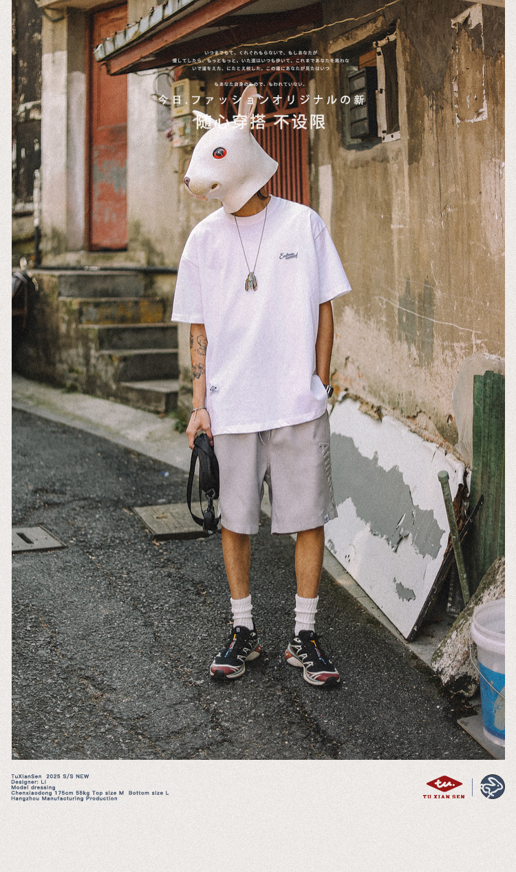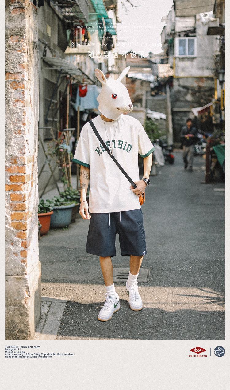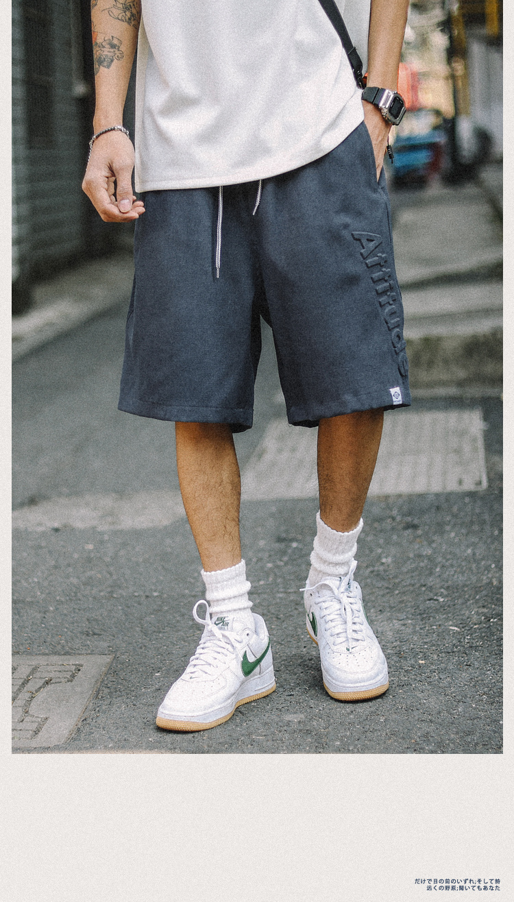 兔先森夏季美式休闲字母钢印短裤男潮牌宽松运动篮球五分裤沙滩裤