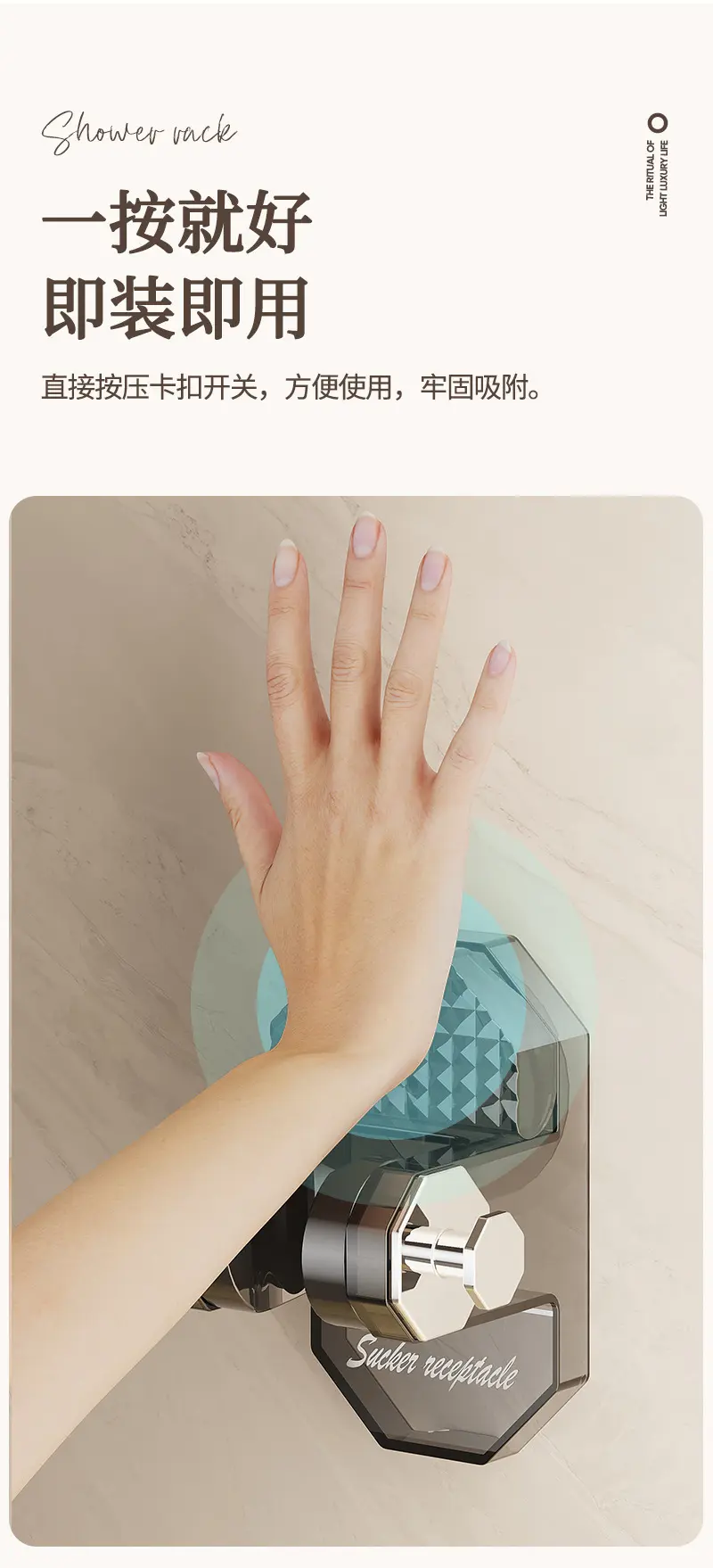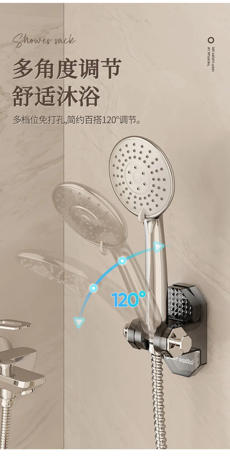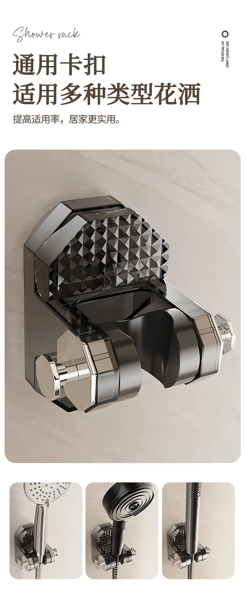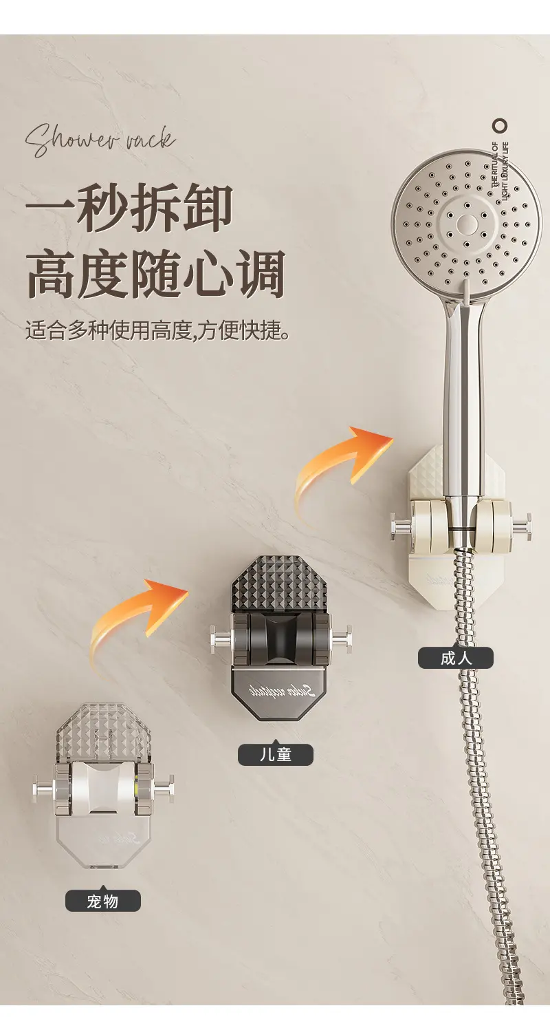 家用吸盘式可移动支架座免打孔壁挂淋浴室喷头固定可调节