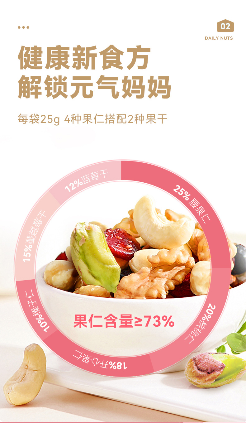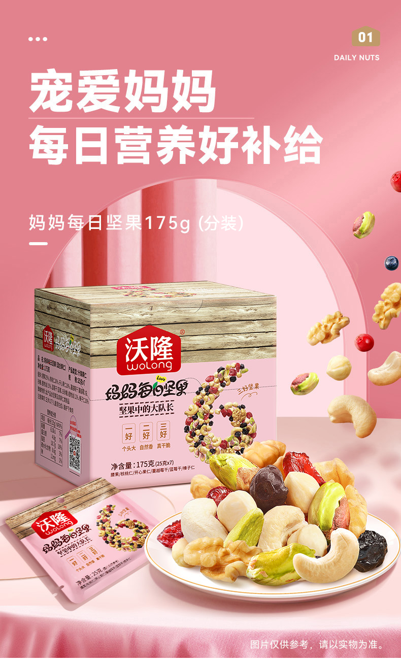 沃隆每日坚果175g妈妈款孕妇健康营养零食混合坚果干果7袋小包装