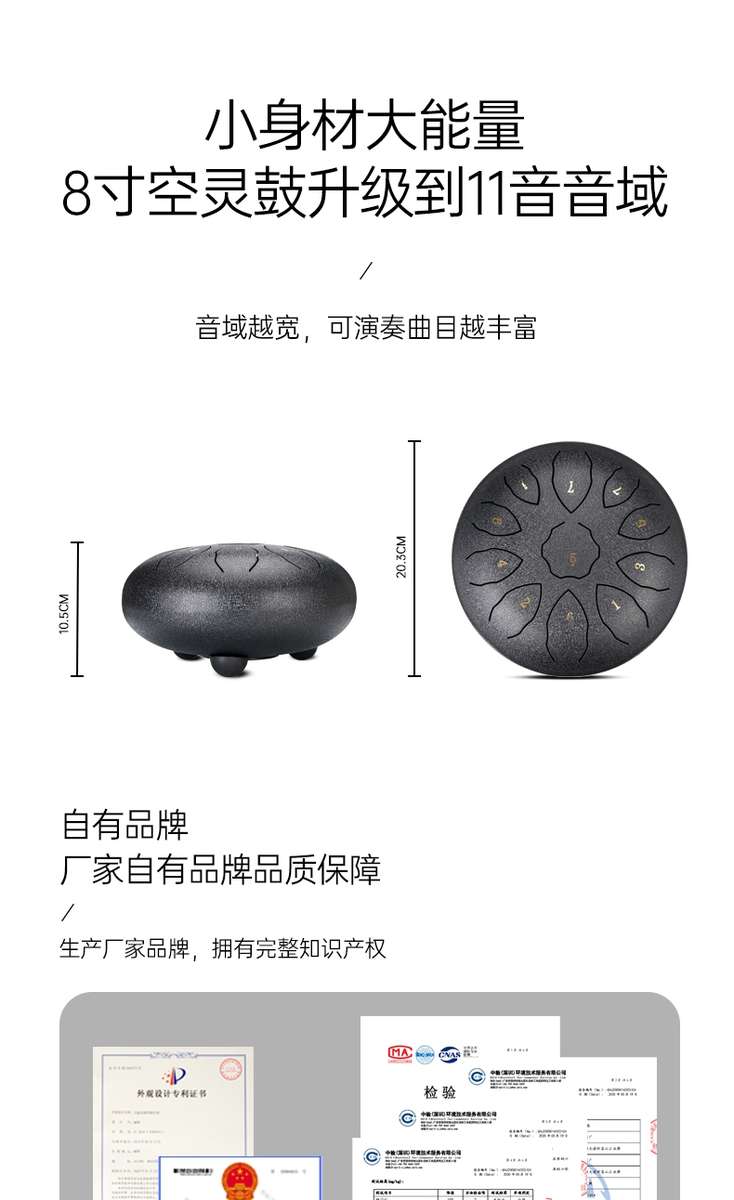 汉盘8寸11音空灵鼓色空鼓钢舌鼓梵音鼓迷你小鼓儿童玩具乐器F调