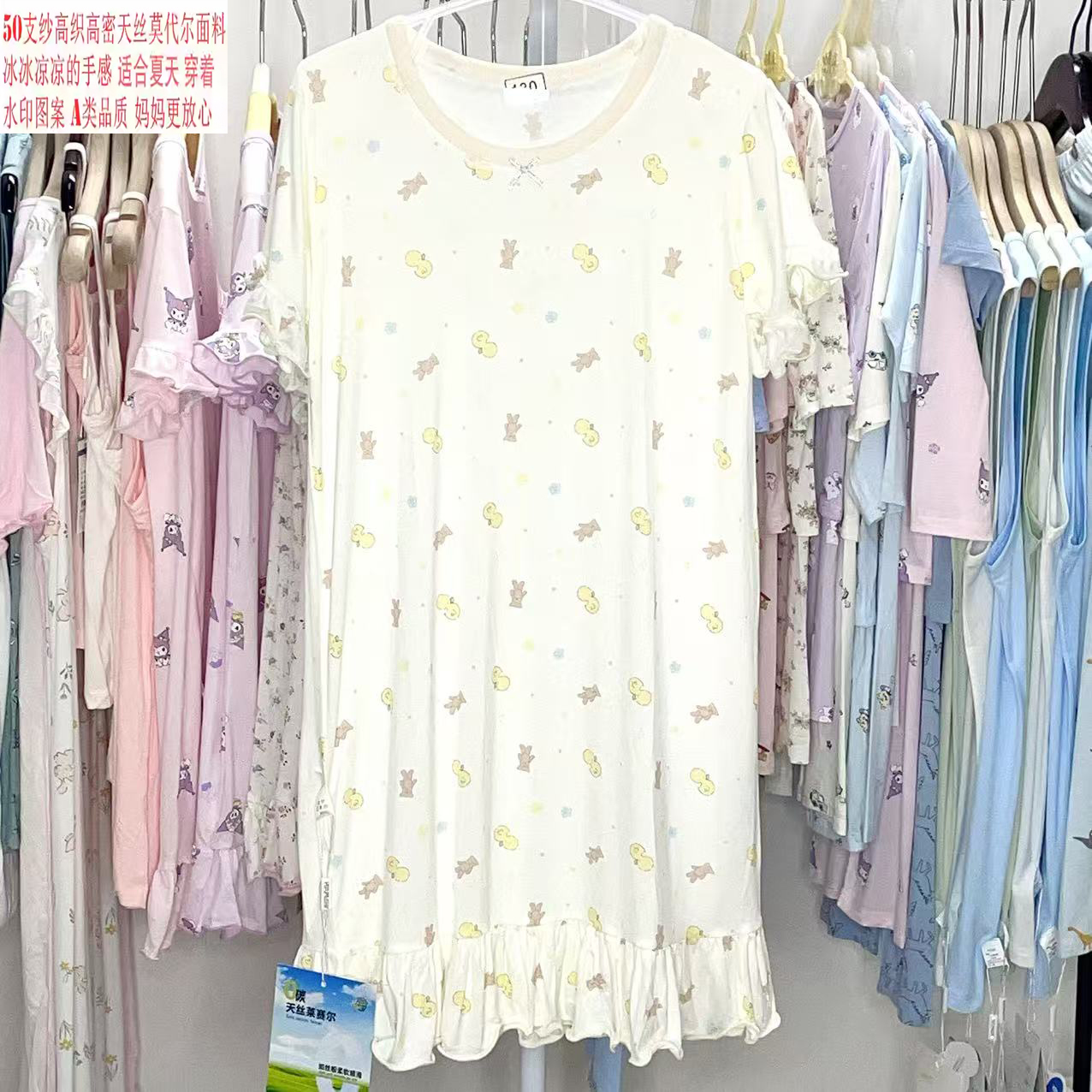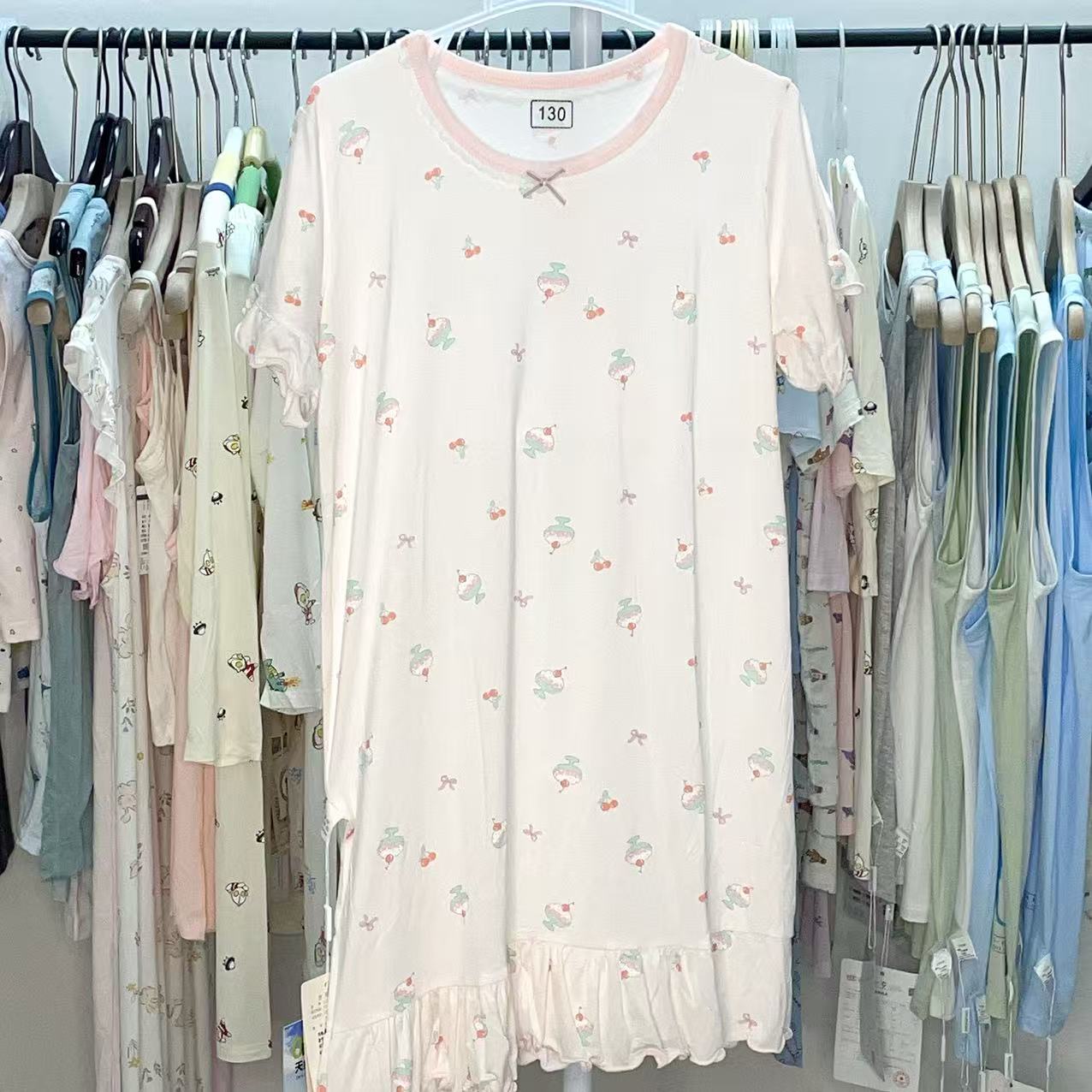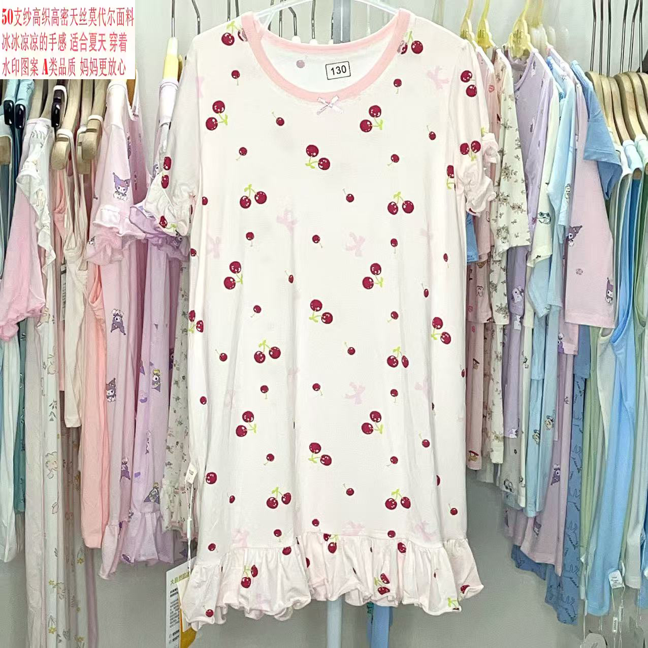 捡漏莫代尔薄款睡裙女童满印可爱夏季公主宝宝亲子装连衣裙