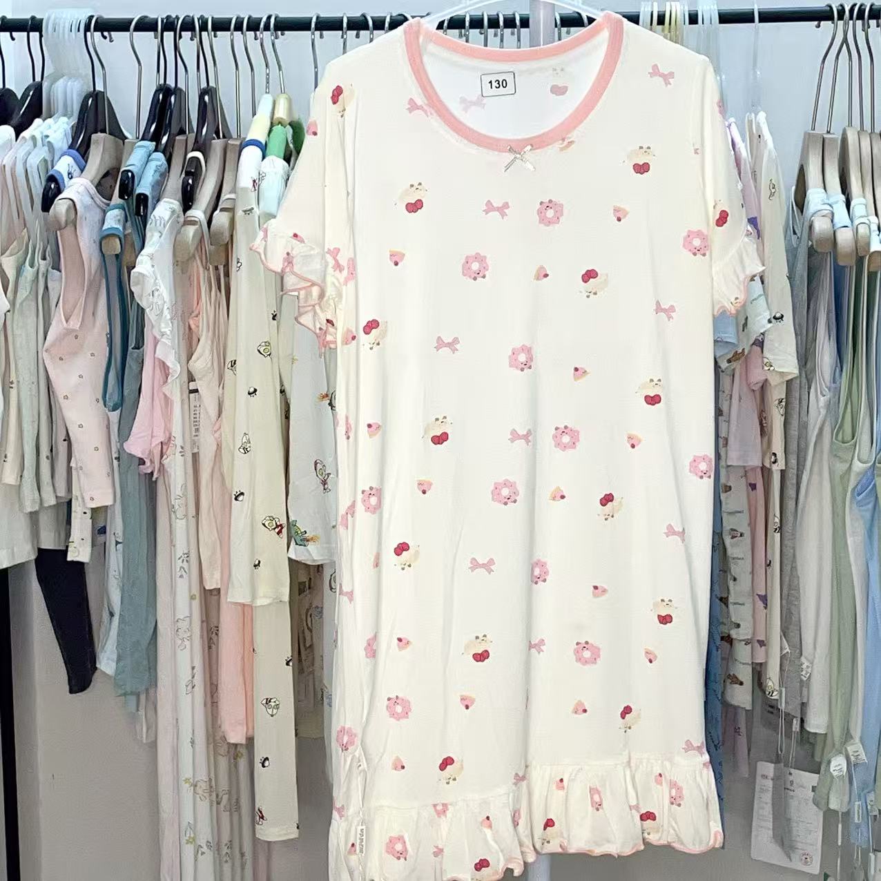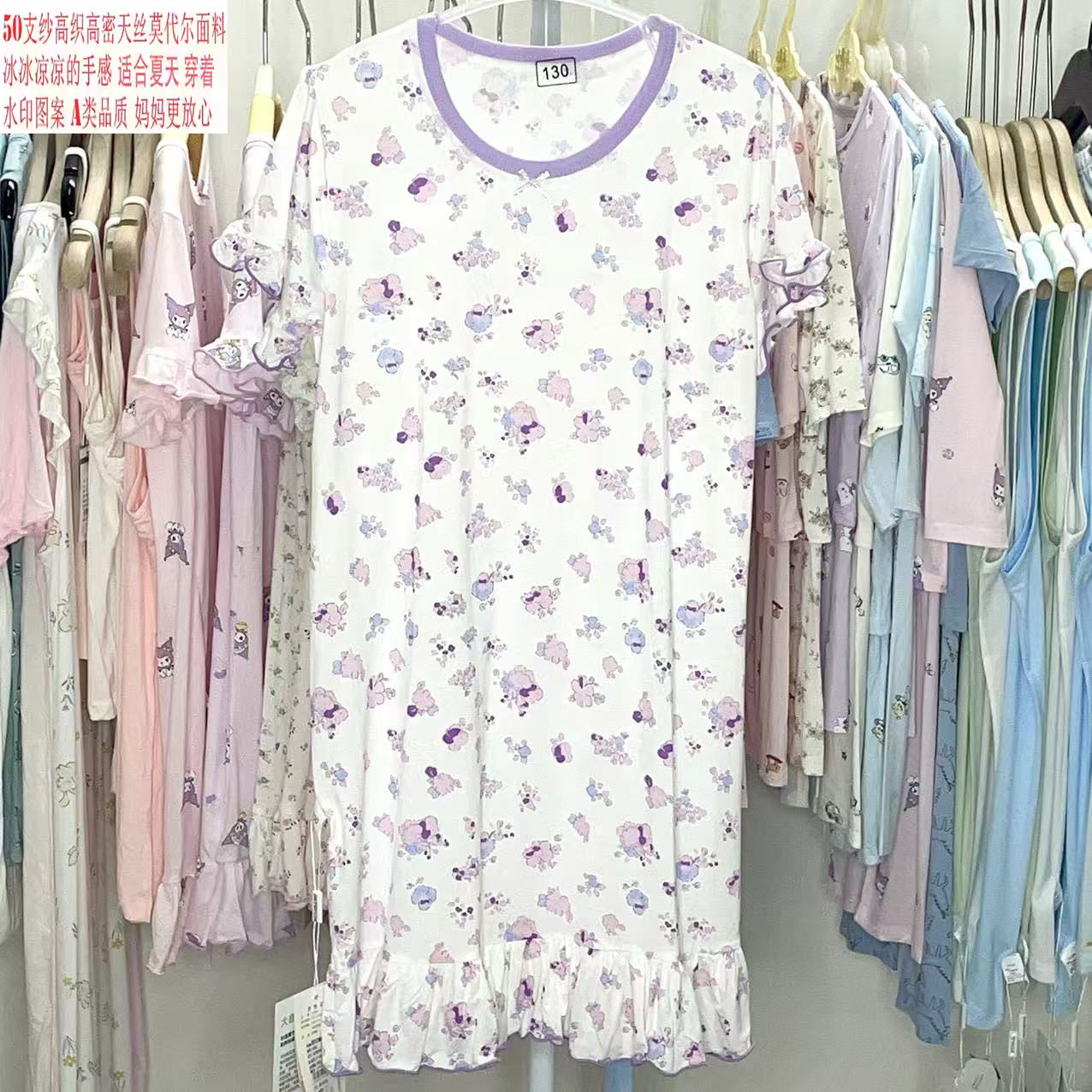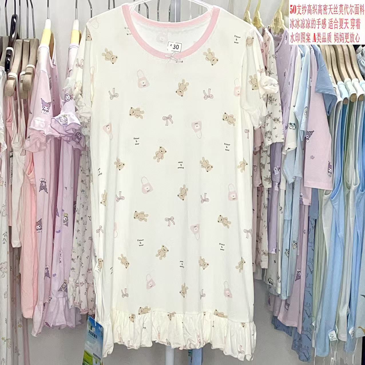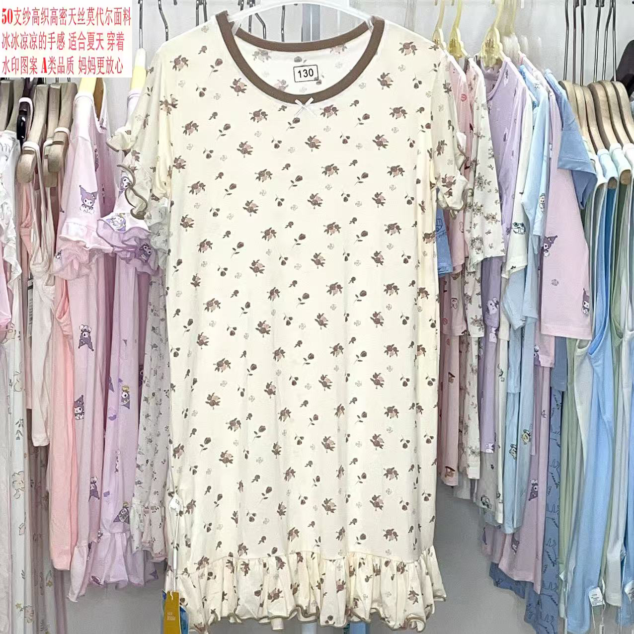 捡漏莫代尔薄款睡裙女童满印可爱夏季公主宝宝亲子装连衣裙