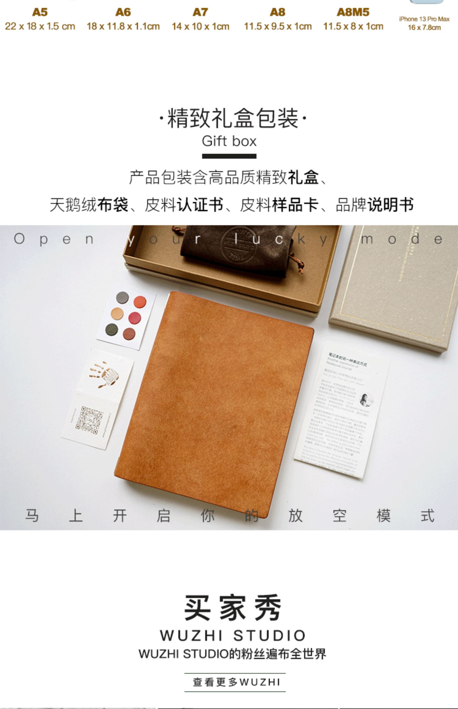 物致WUZHI®真皮活页本A5/A6/A7/A8M5手帐笔记本意大利Mbox牛皮