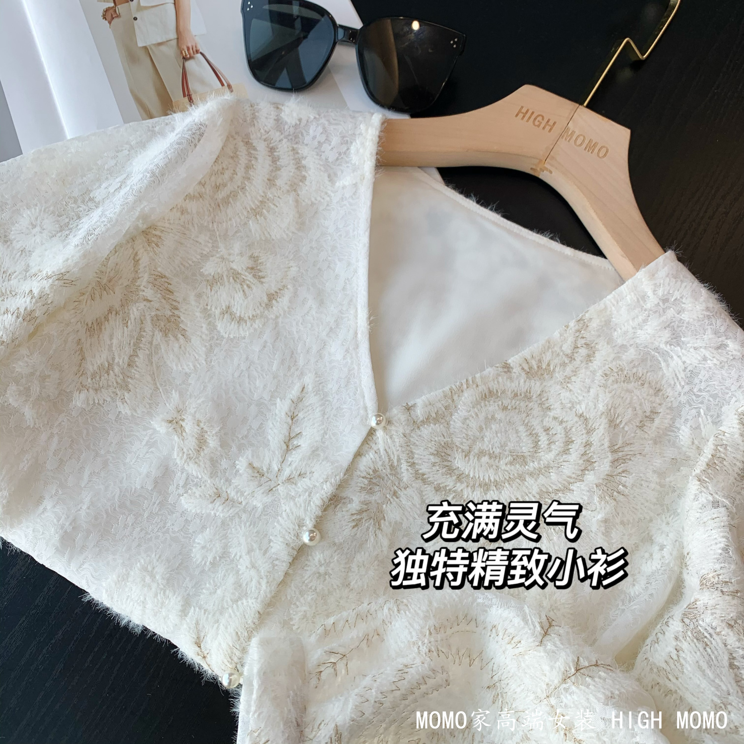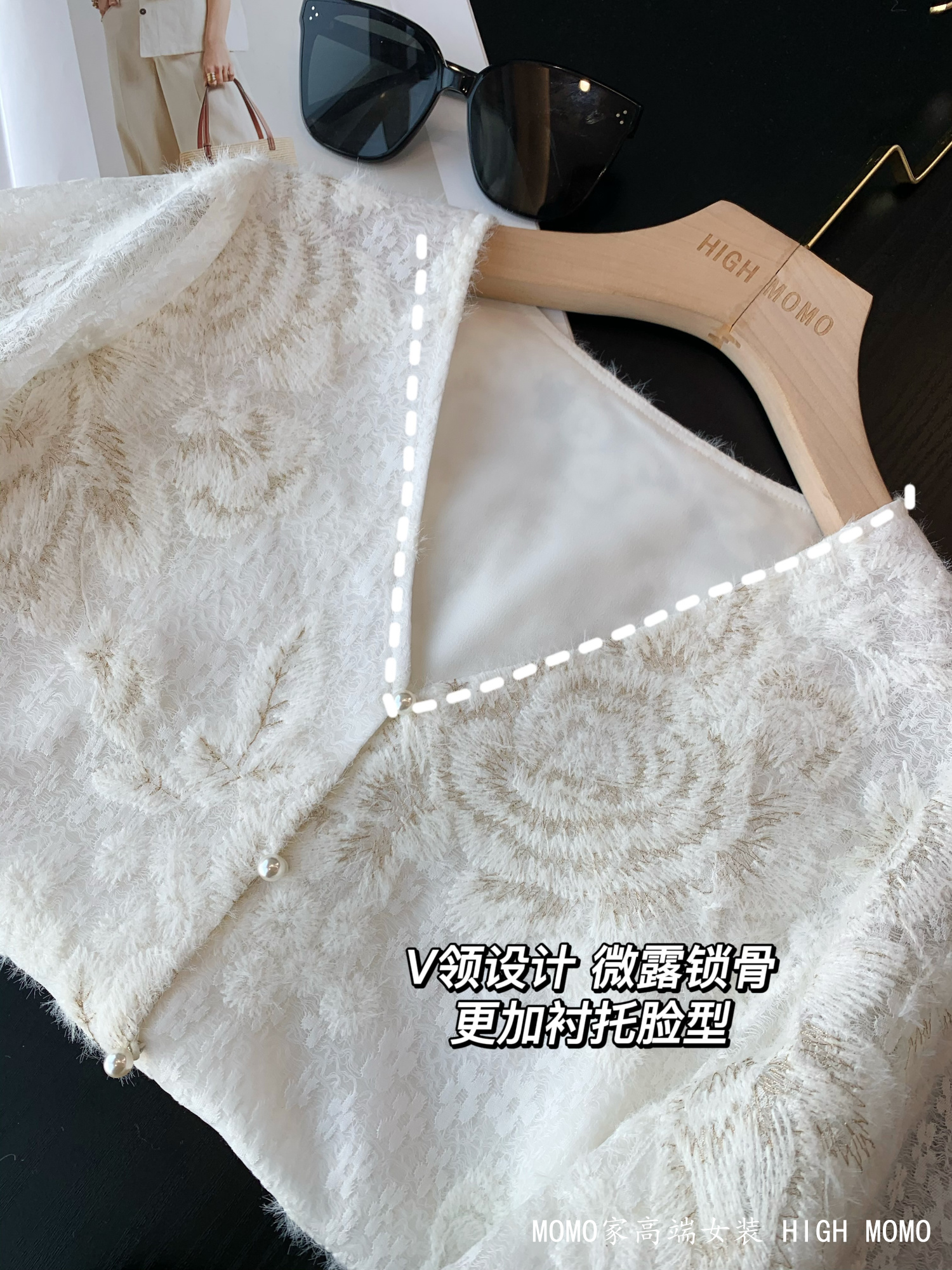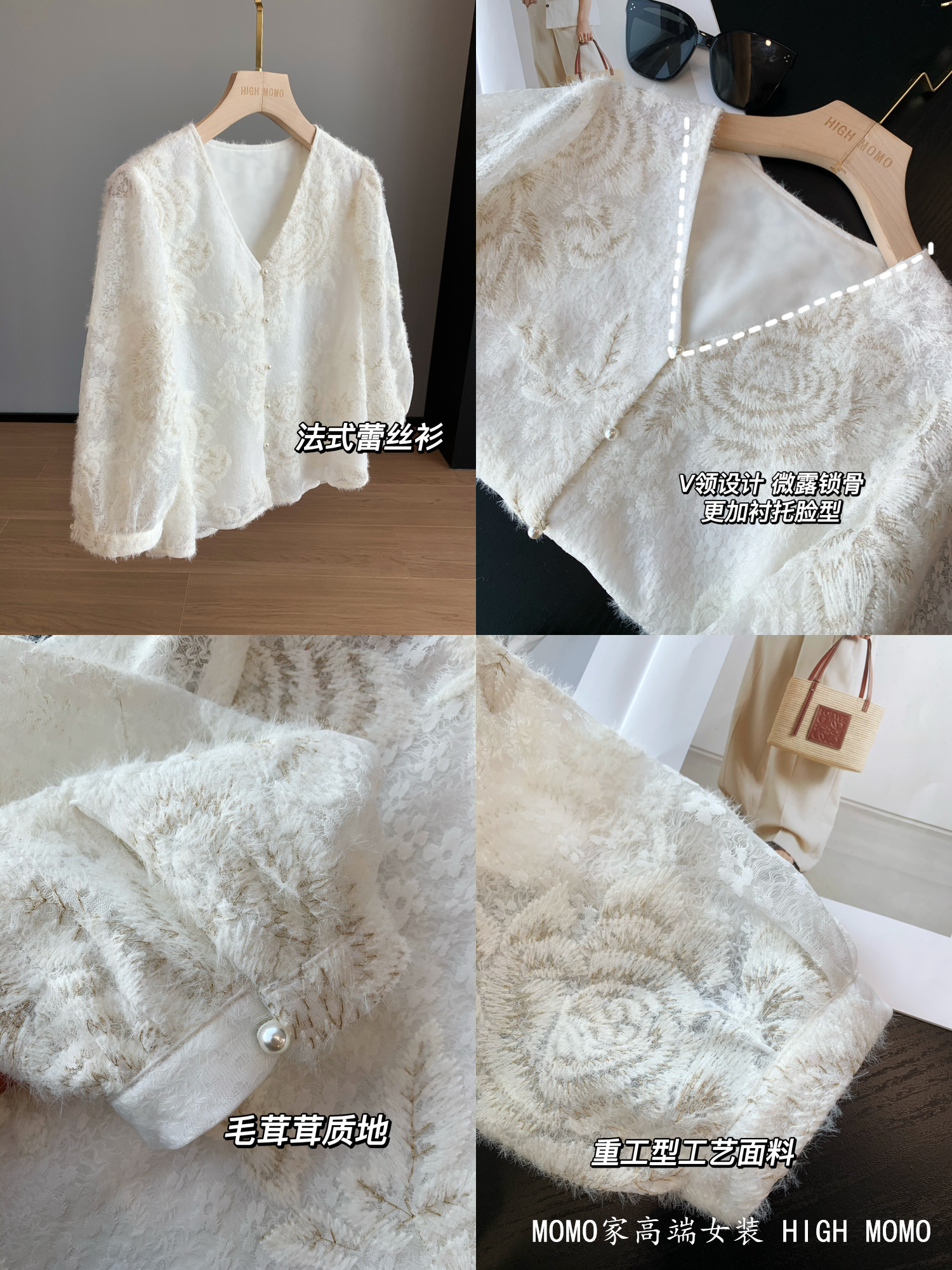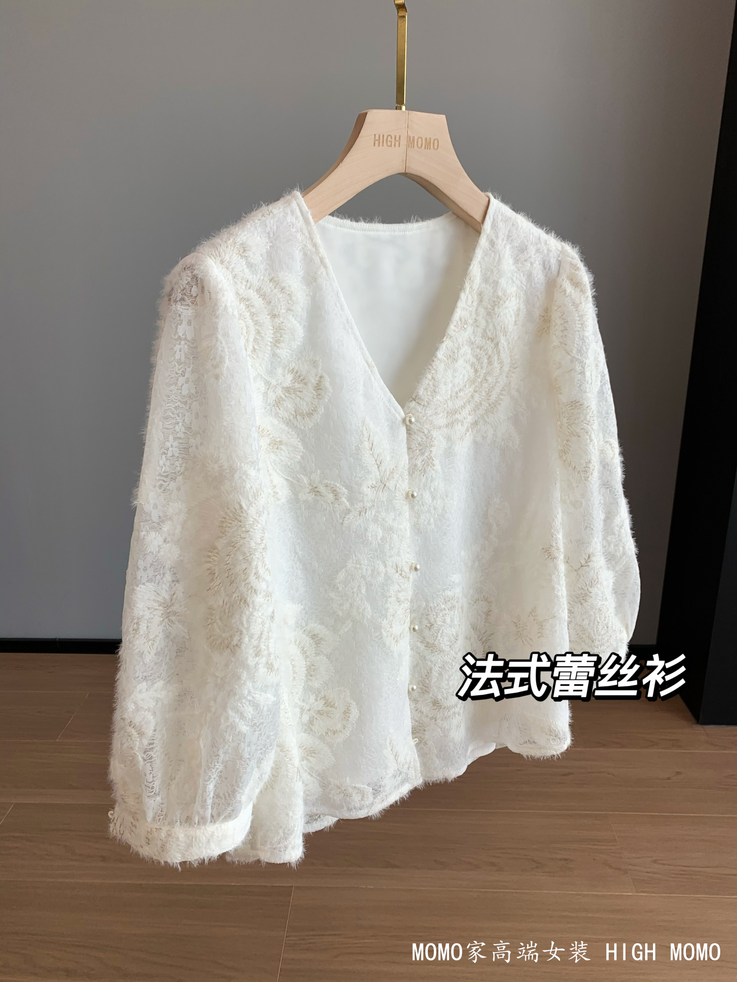 充满灵气!金丝刺绣时髦洋气蕾丝衫V领蕾丝上衣衬衫女新款2025