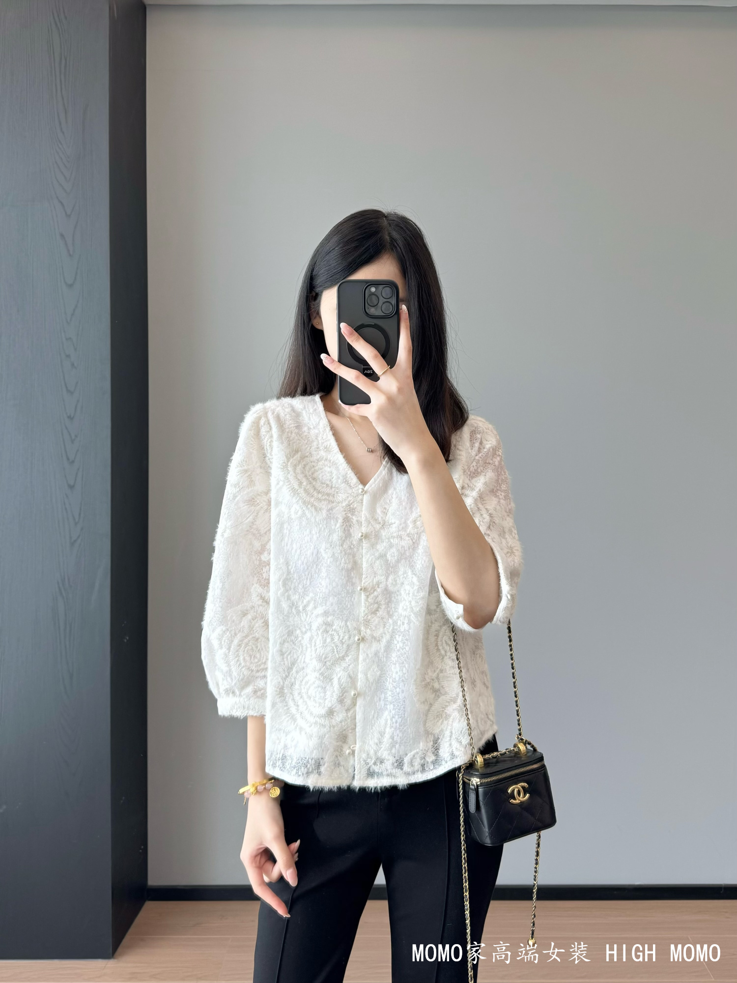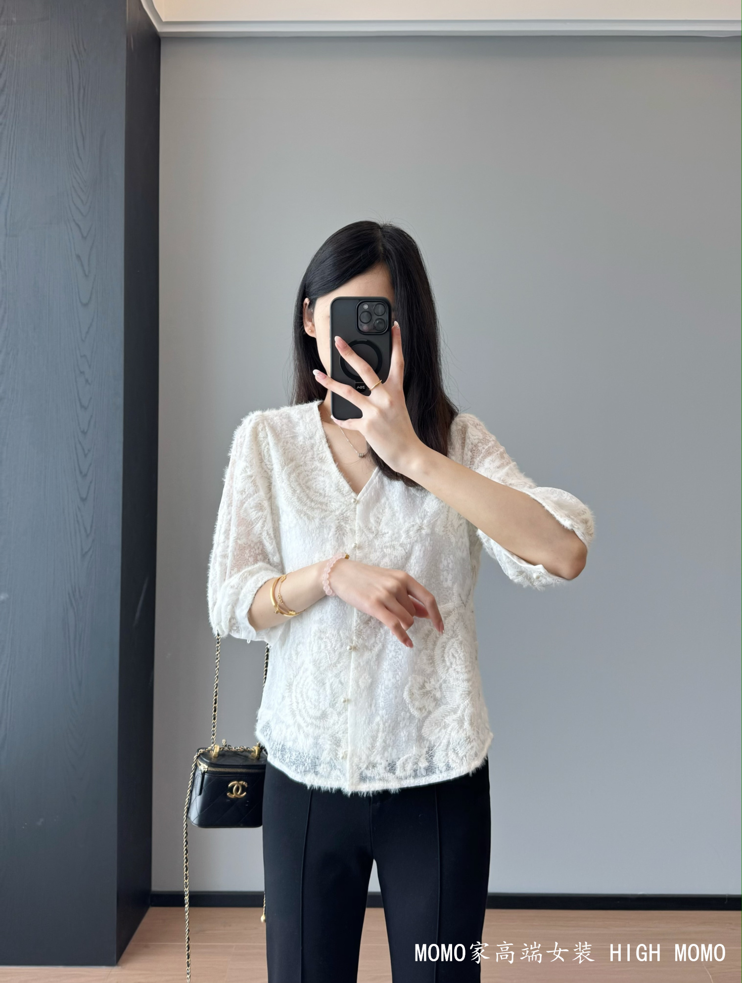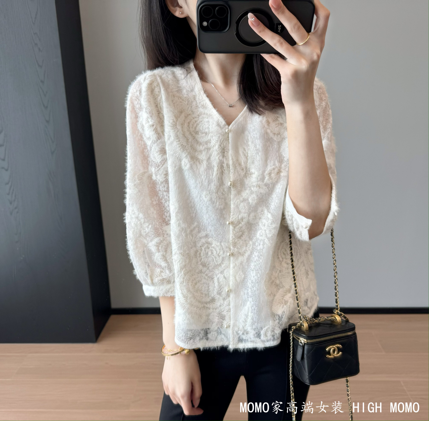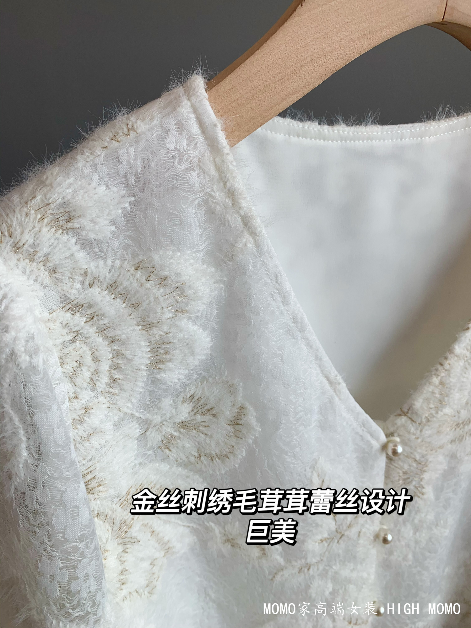 充满灵气!金丝刺绣时髦洋气蕾丝衫V领蕾丝上衣衬衫女新款2025