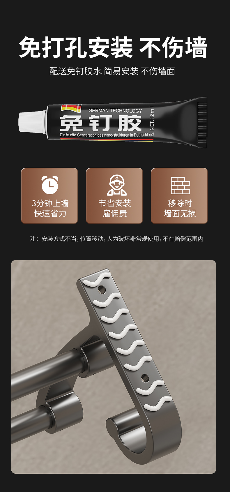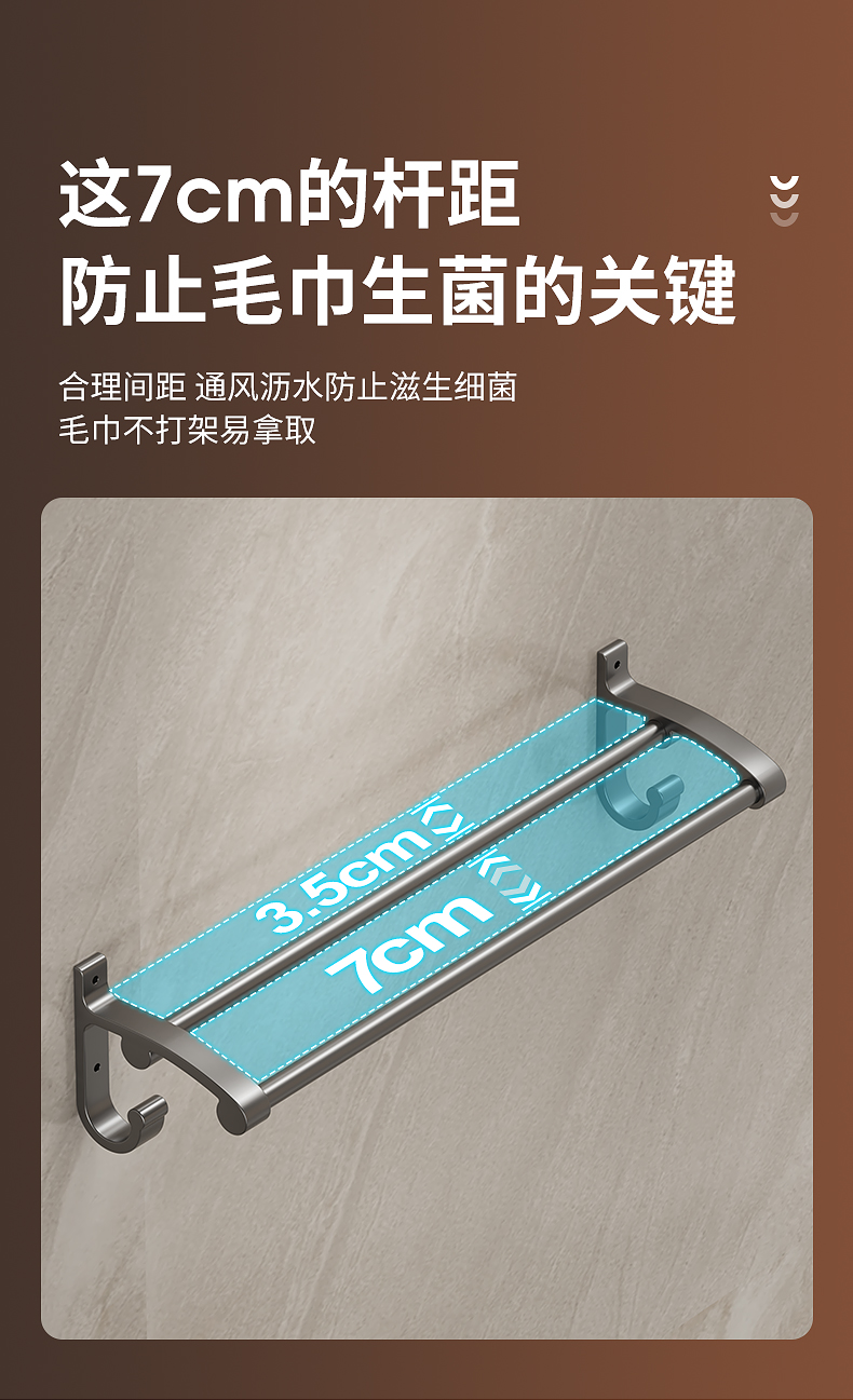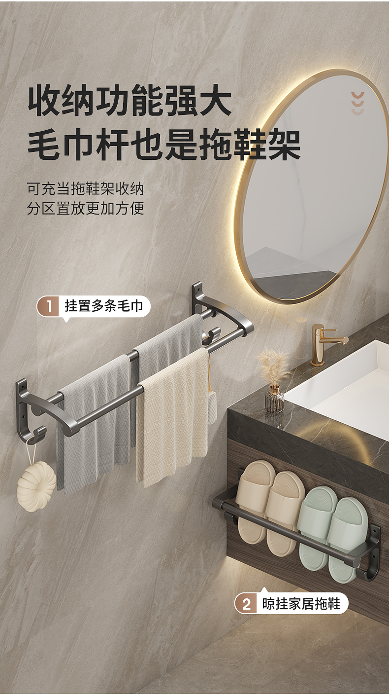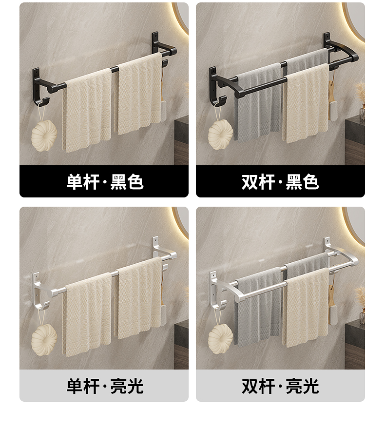 毛巾架单杆免打孔浴室凉毛巾杆卫生间置物架子双层枪灰色打孔挂杆