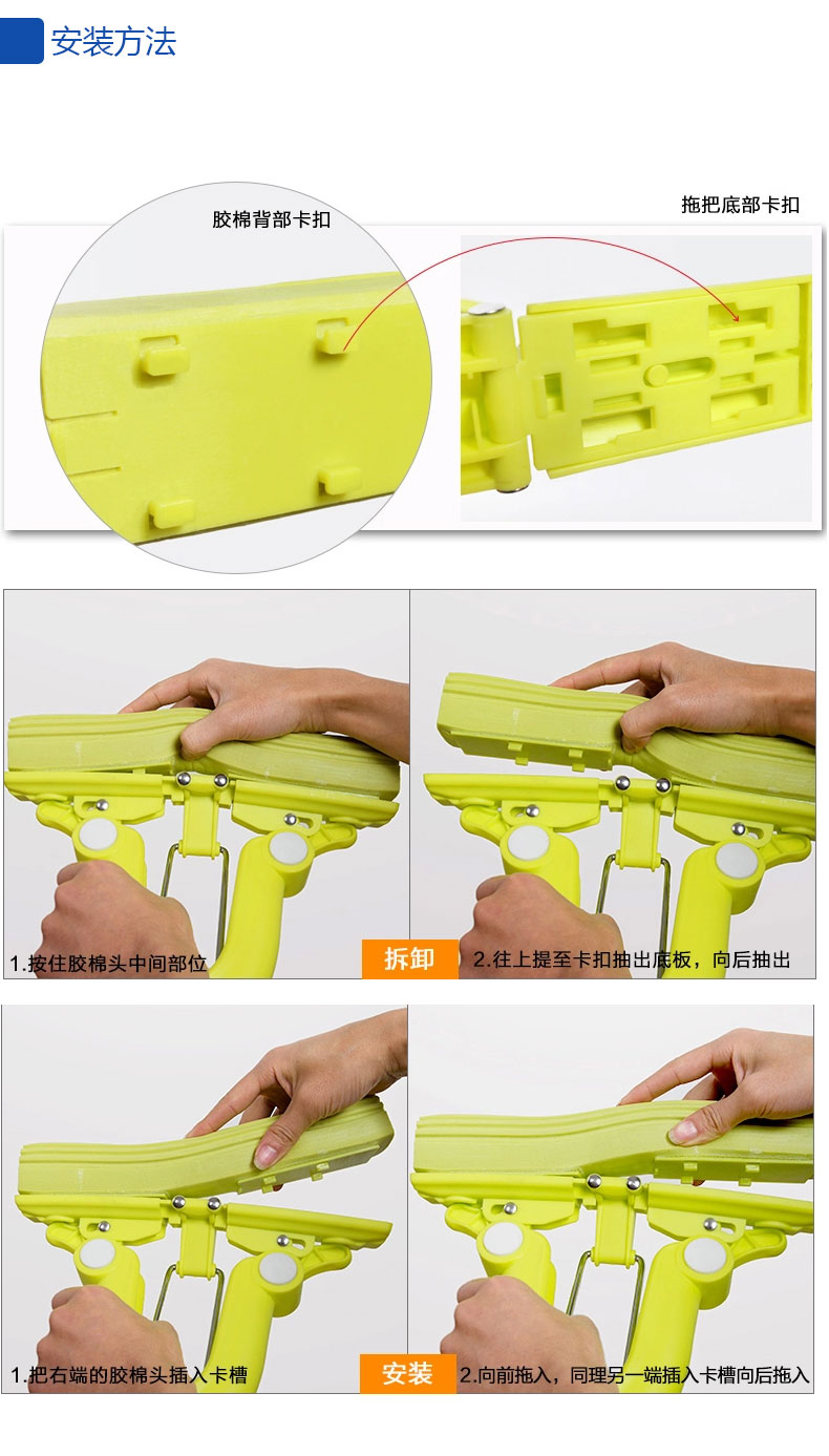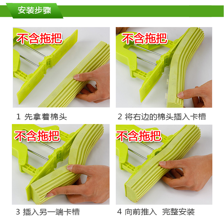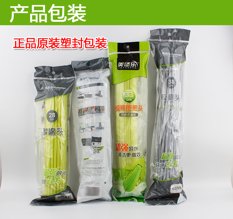 美添乐对折式胶棉拖把头家用吸水海绵替换装通用挤水海棉头墩布头