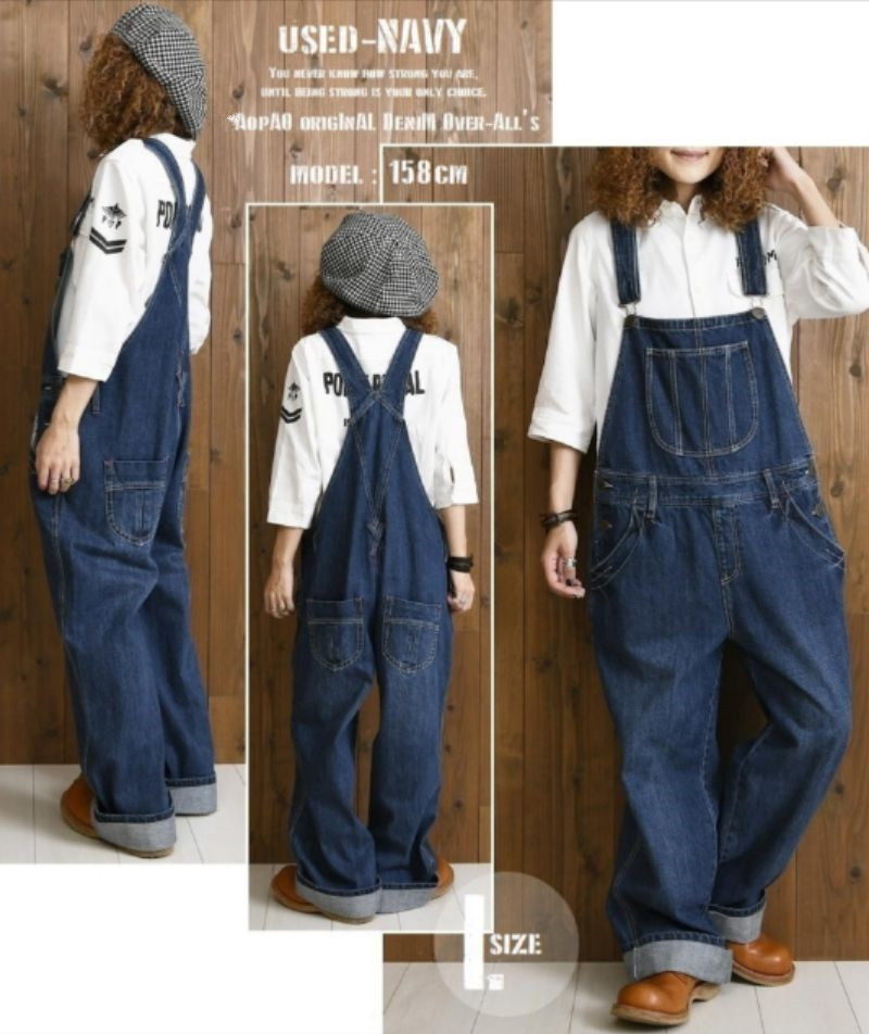 2025春夏日系贵牌宽松连身衣纯棉牛仔背带裤工人裤女裤