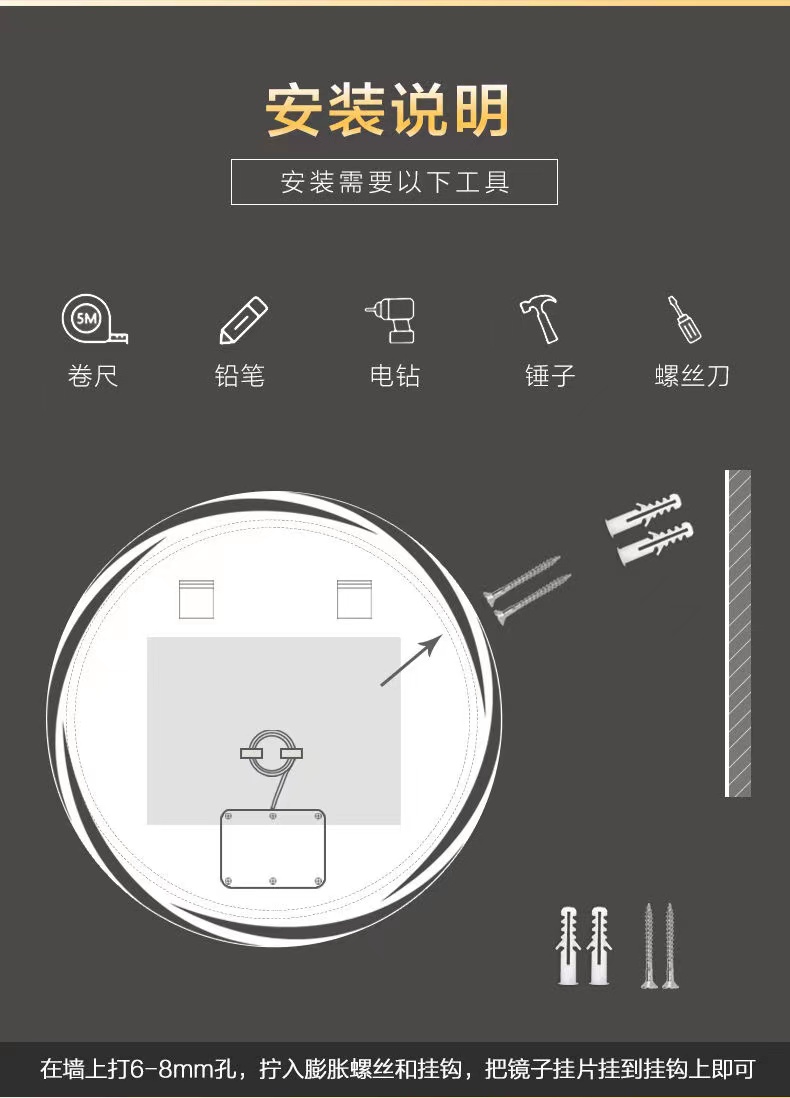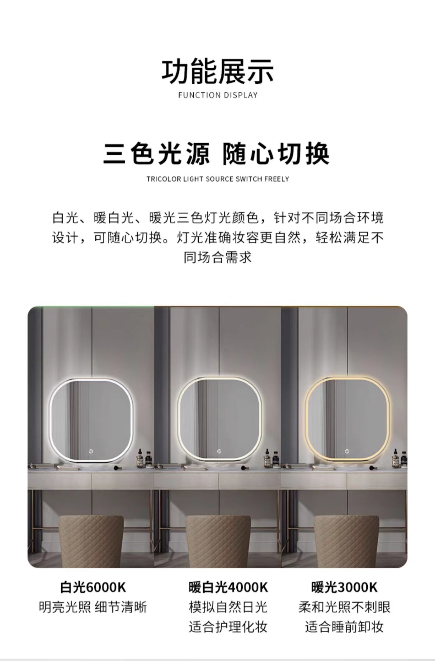 定制智能镜子壁挂浴室镜led卫生间触摸屏防除雾镜带灯镜定做镜片