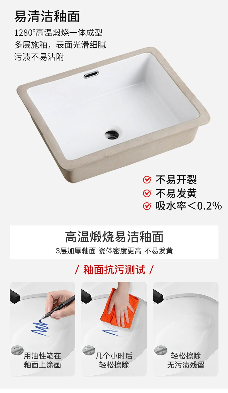 台下盆浴室陶瓷嵌入式水槽台盆洗手盆单盆卫生间阳台洗脸盆大容量