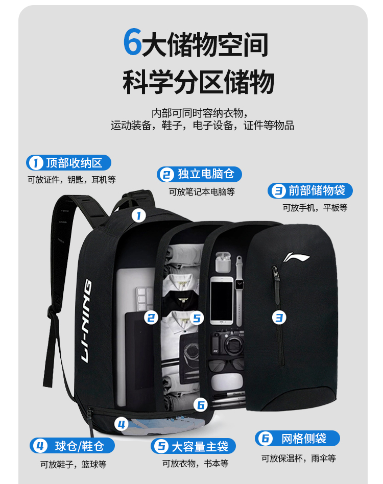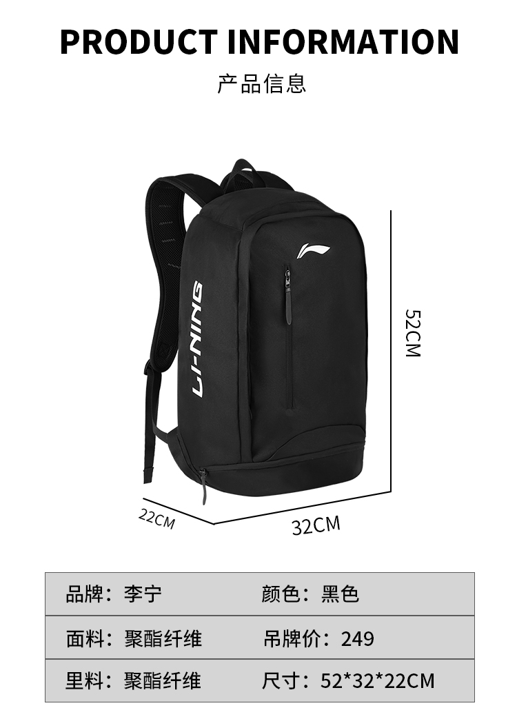 李宁双肩包男大容量运动登山篮球背包户外旅行初中高中学生书包女