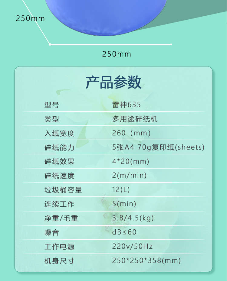 雷神635碎纸机办公室自动家用颗粒状电动大功率商用便捷桌面纸张