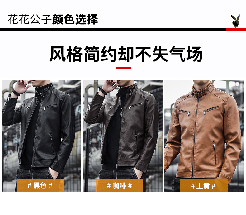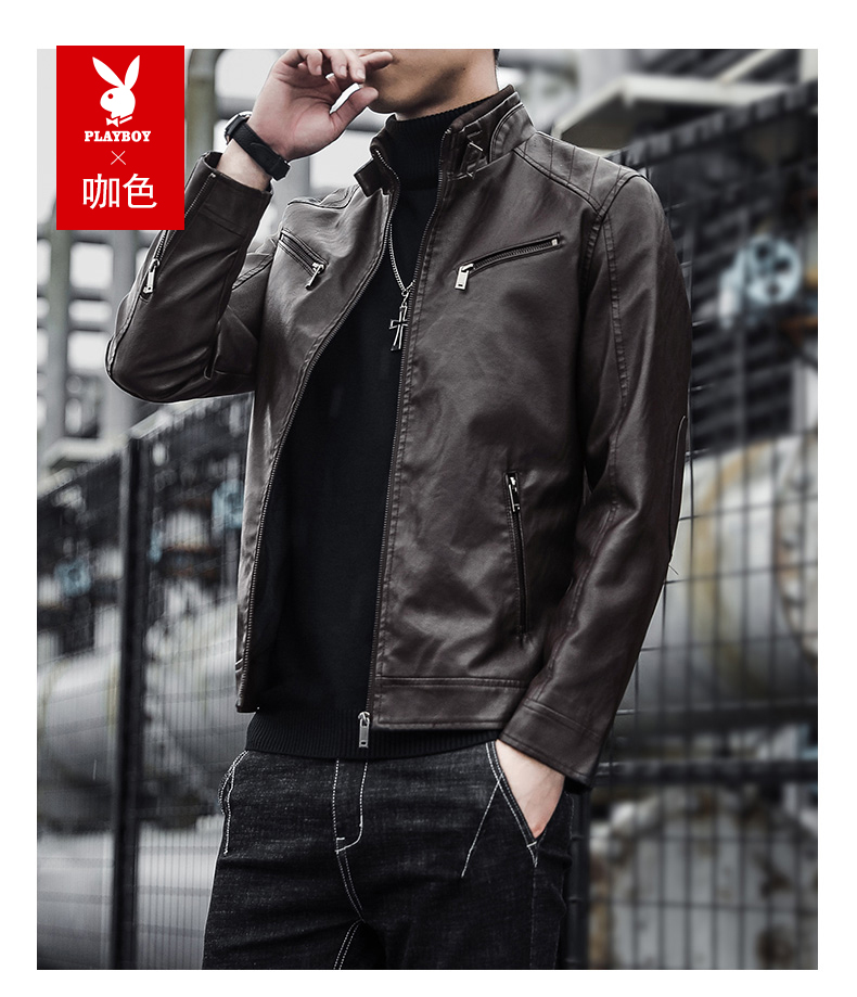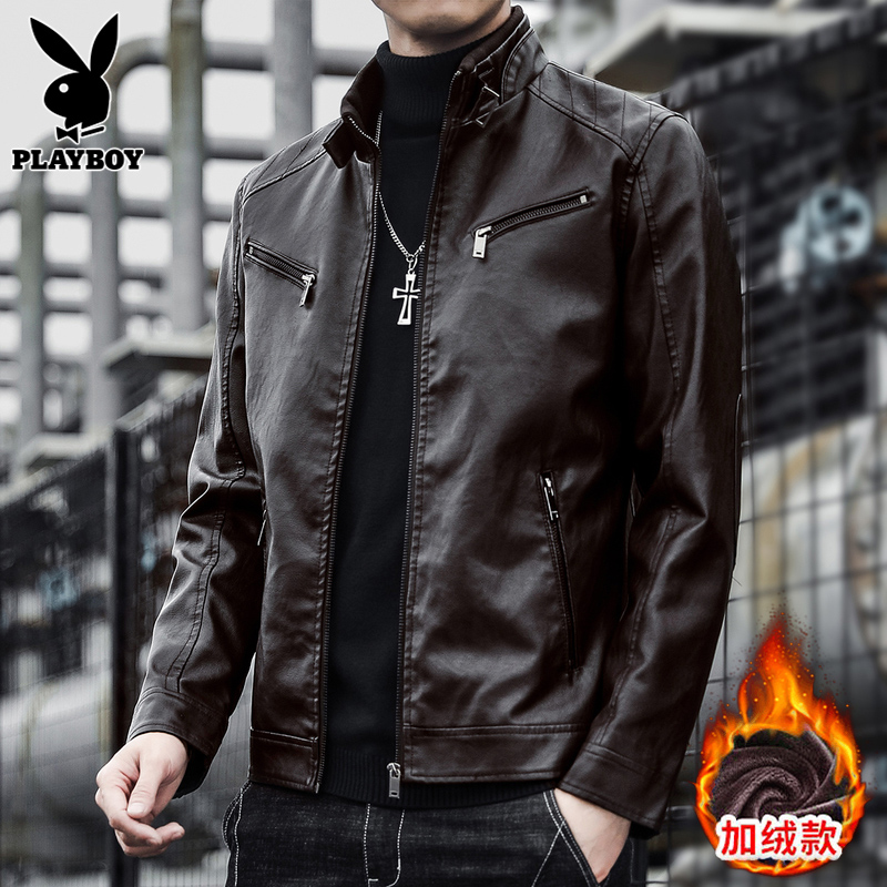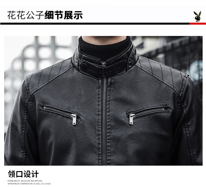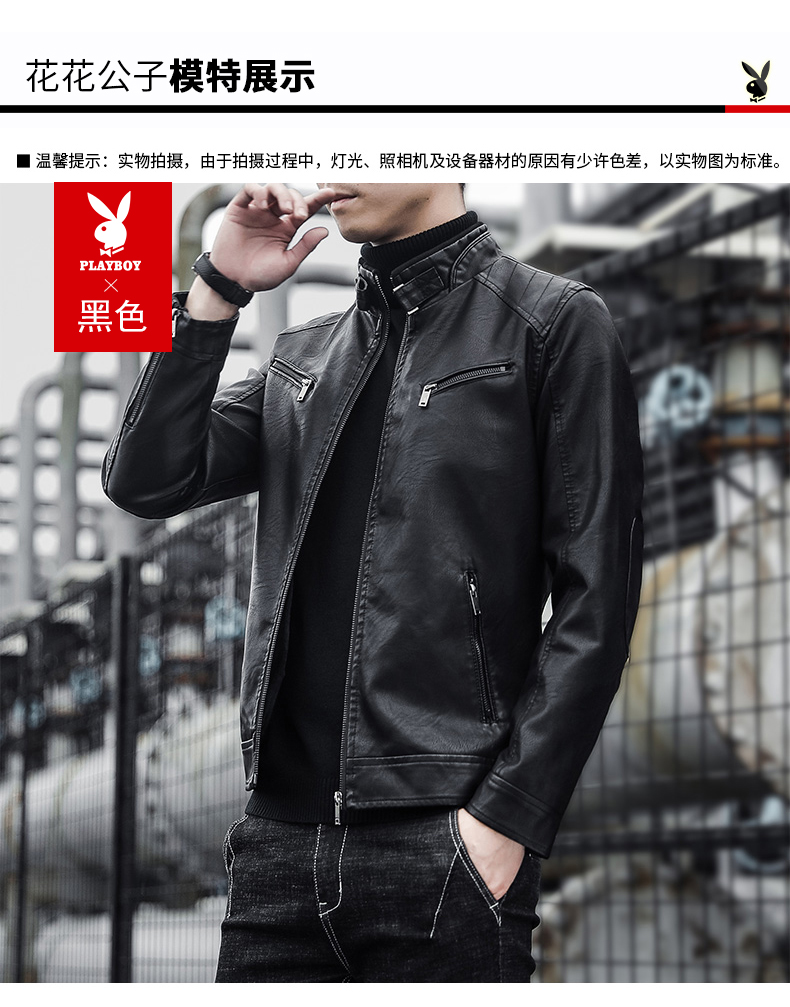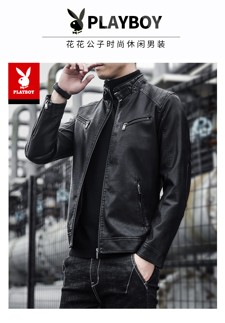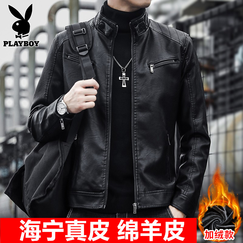 花花公子真皮皮衣男士立领海宁潮牌帅气休闲秋冬款机车皮夹克外套
