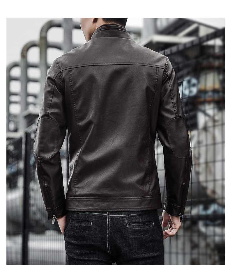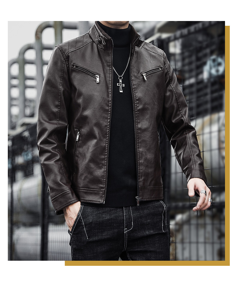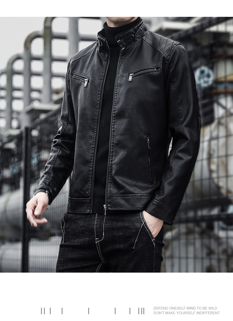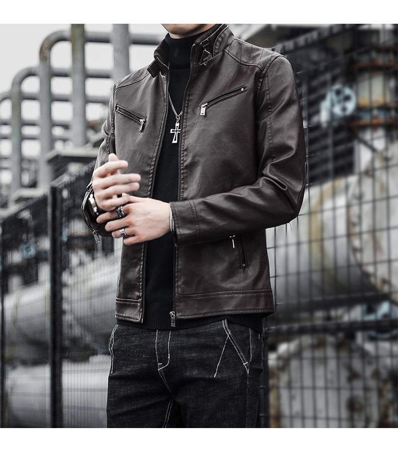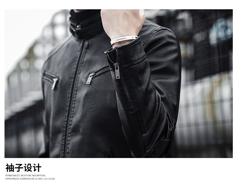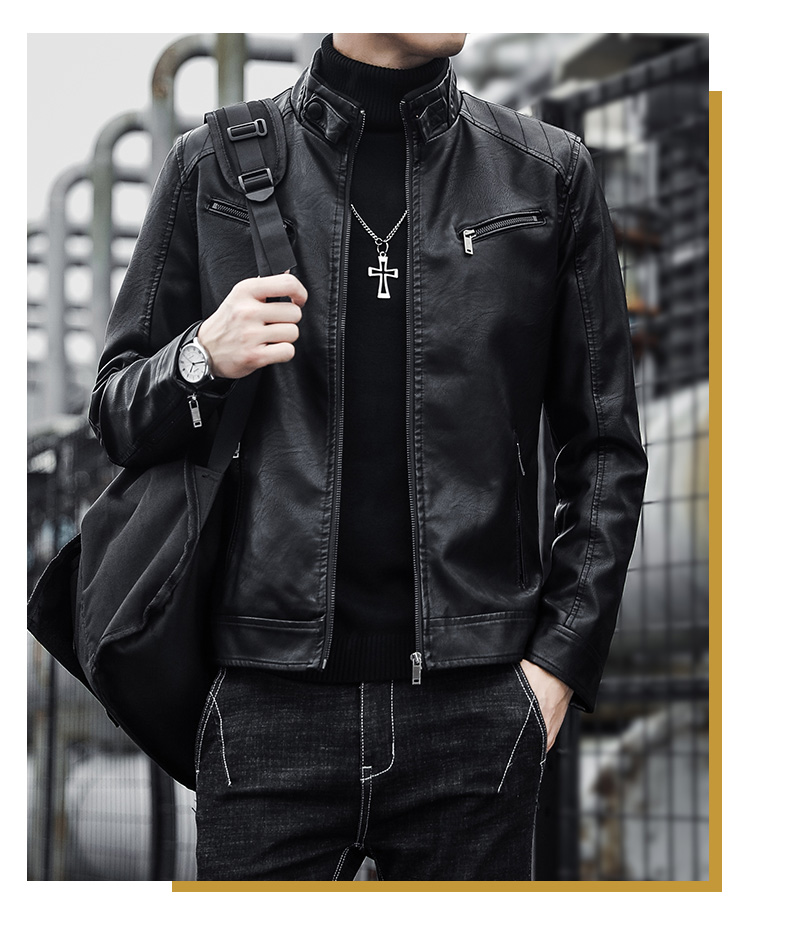 花花公子真皮皮衣男士立领海宁潮牌帅气休闲秋冬款机车皮夹克外套