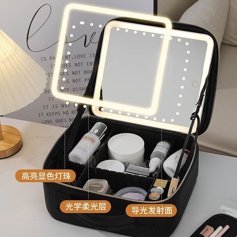 LED灯带镜子化妆包女便携大容量2025新款化妆盒手提箱补光收纳