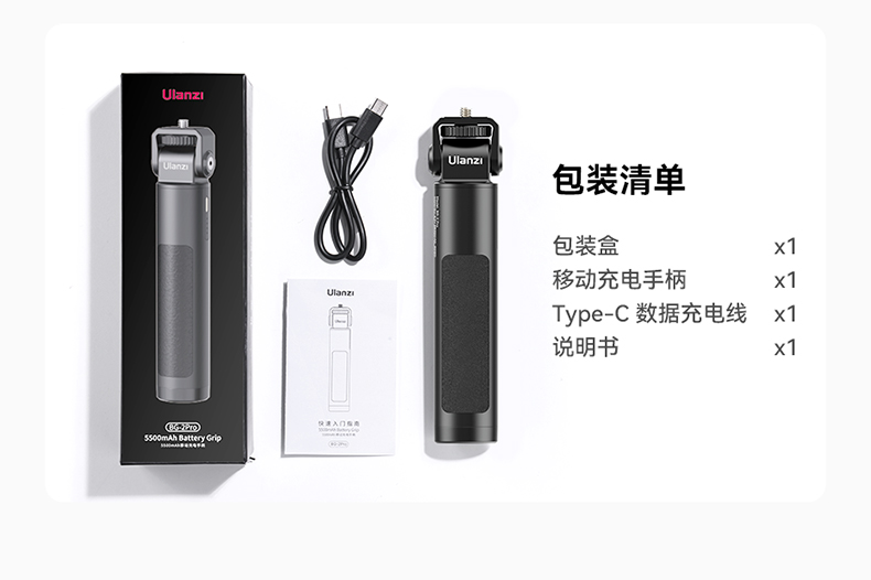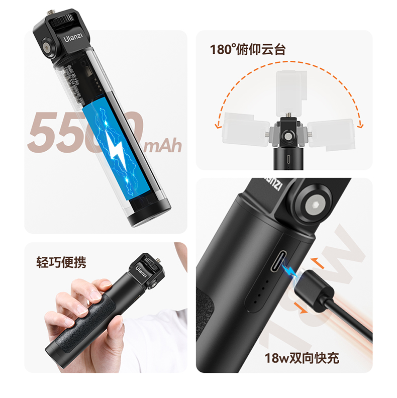 Ulanzi优篮子BG-2 Pro充电手柄便携移动电源适用Action5/4手机相机Pocket3户外18W快充自拍杆Insta360x4