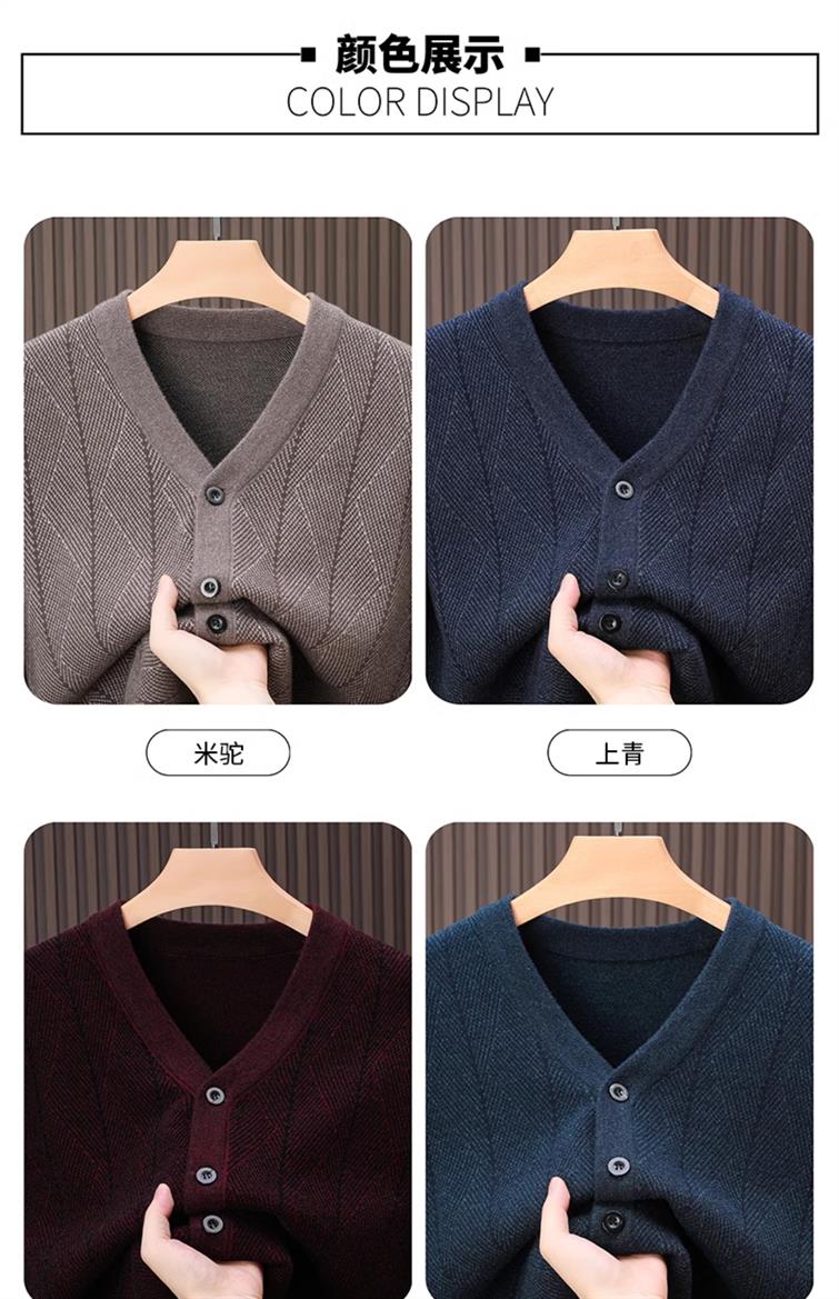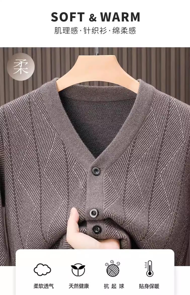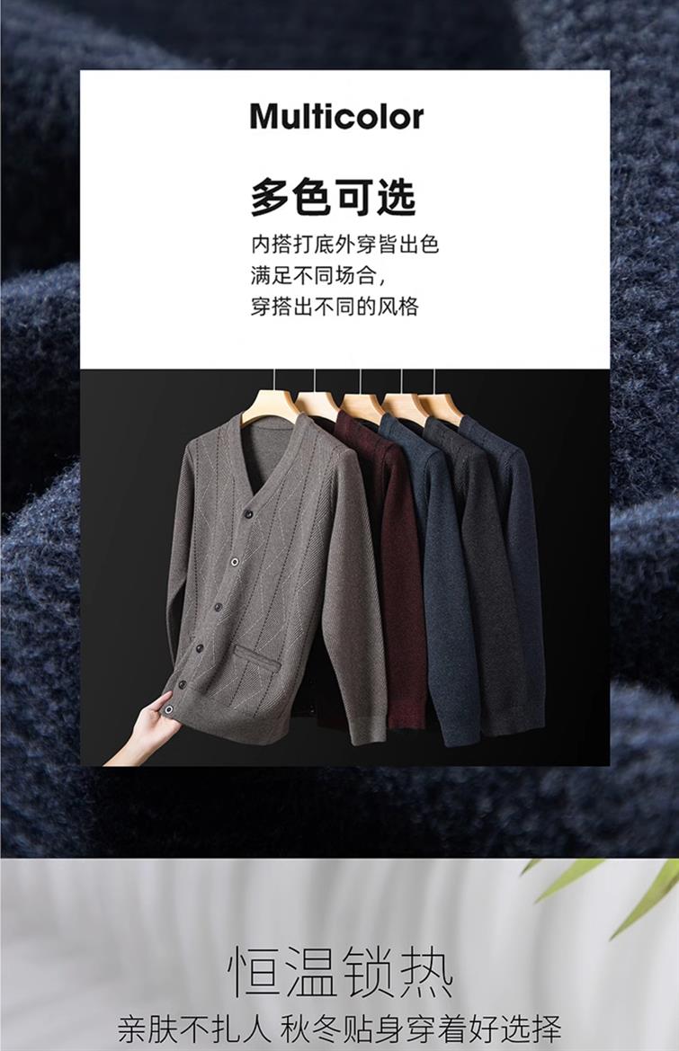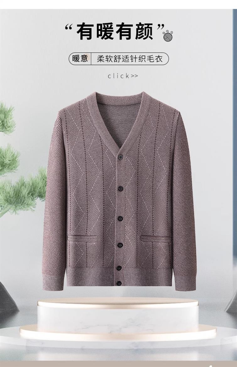 皮尔卡丹秋冬100%纯羊毛开衫中老年男爸爸装毛衣加厚针织外套