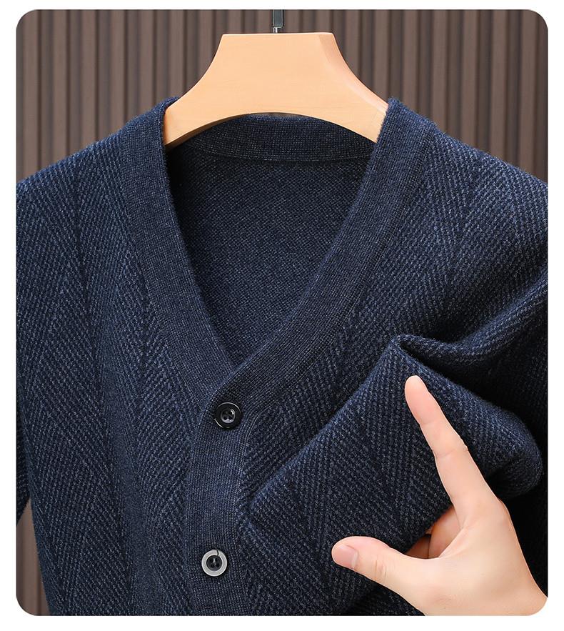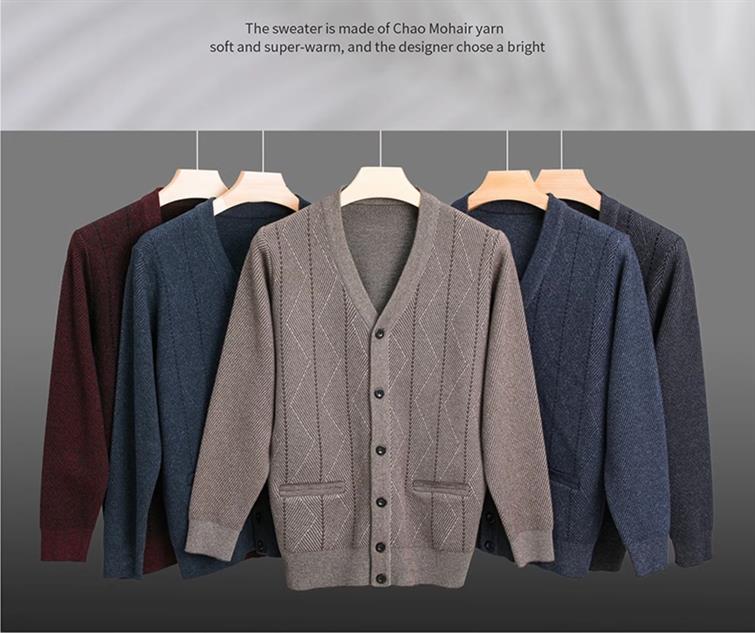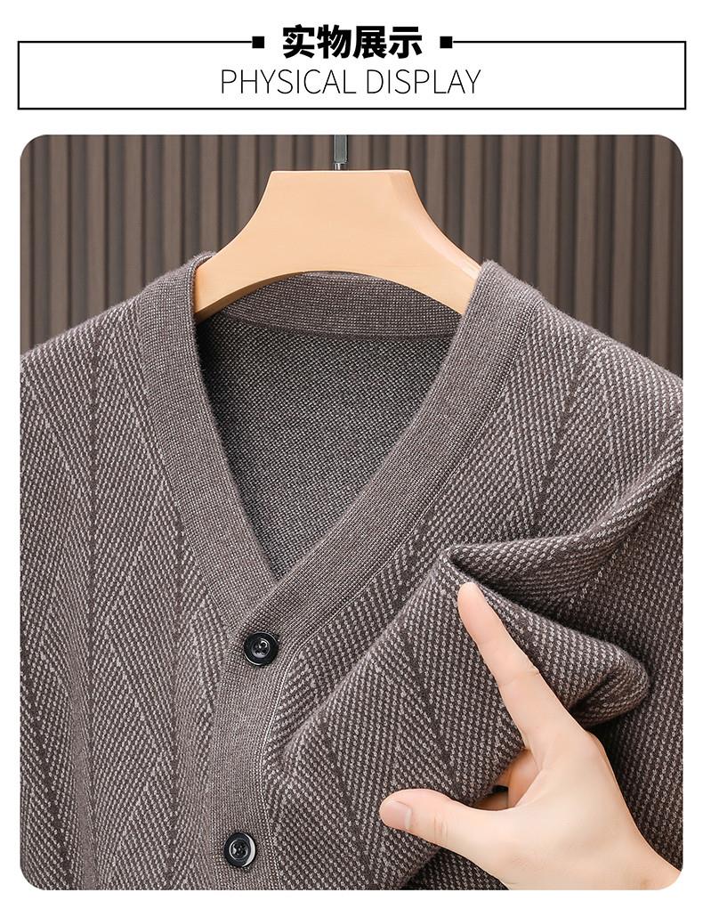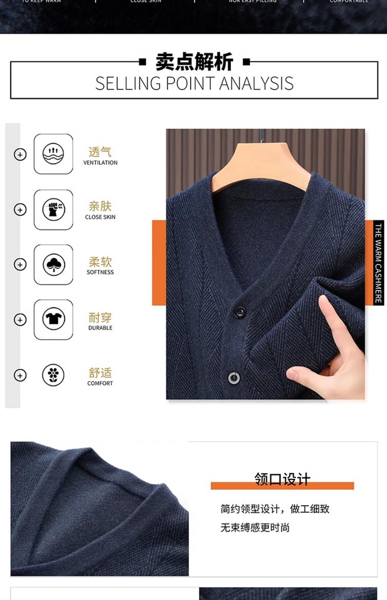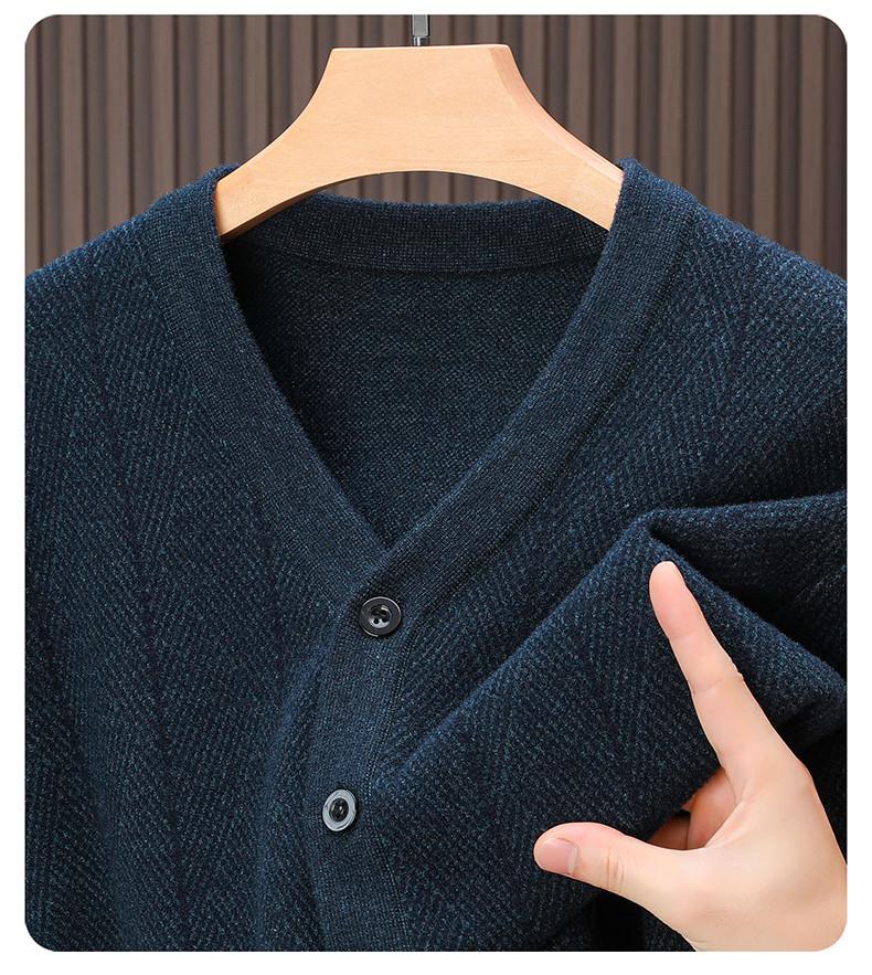 皮尔卡丹秋冬100%纯羊毛开衫中老年男爸爸装毛衣加厚针织外套