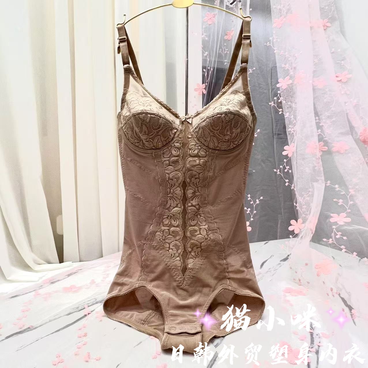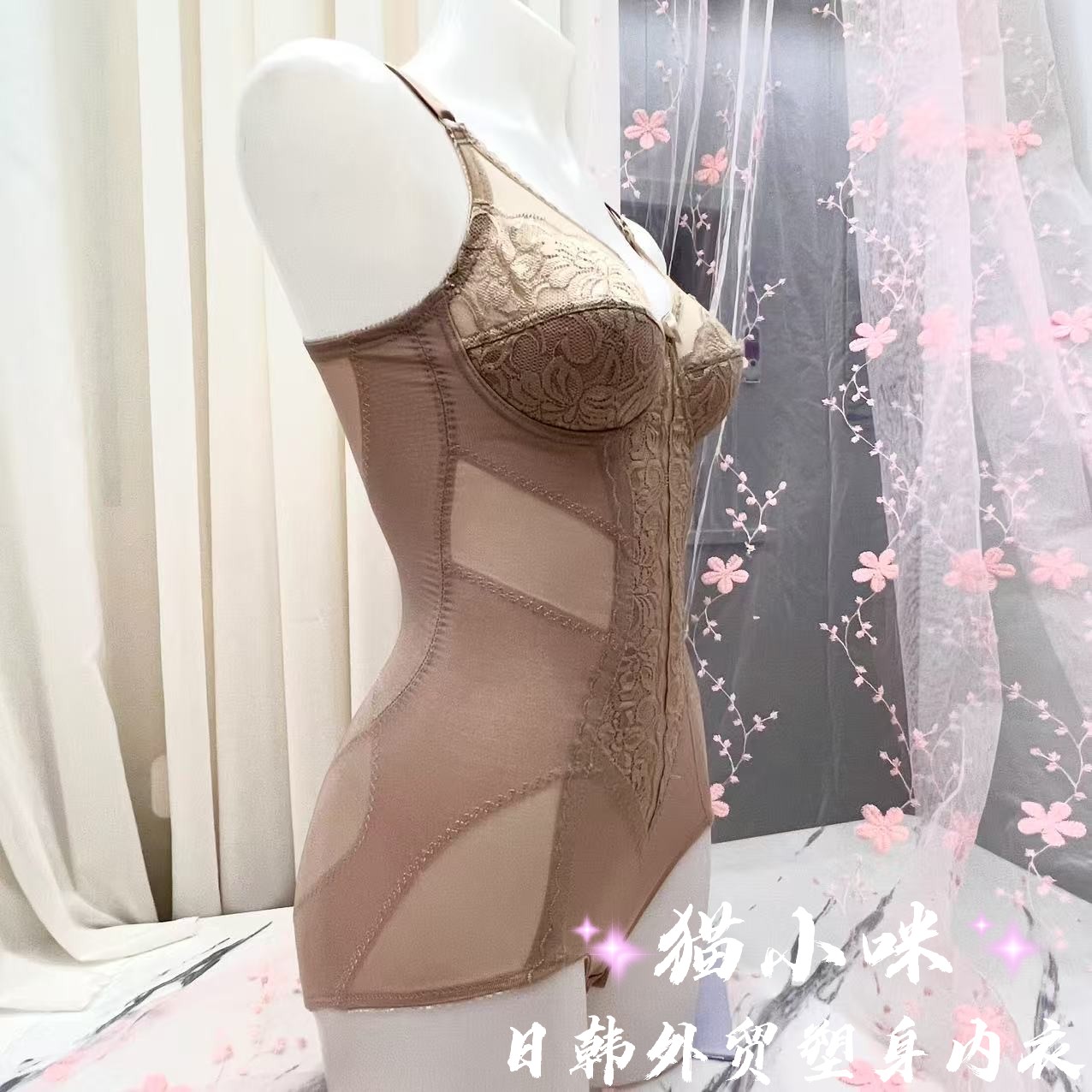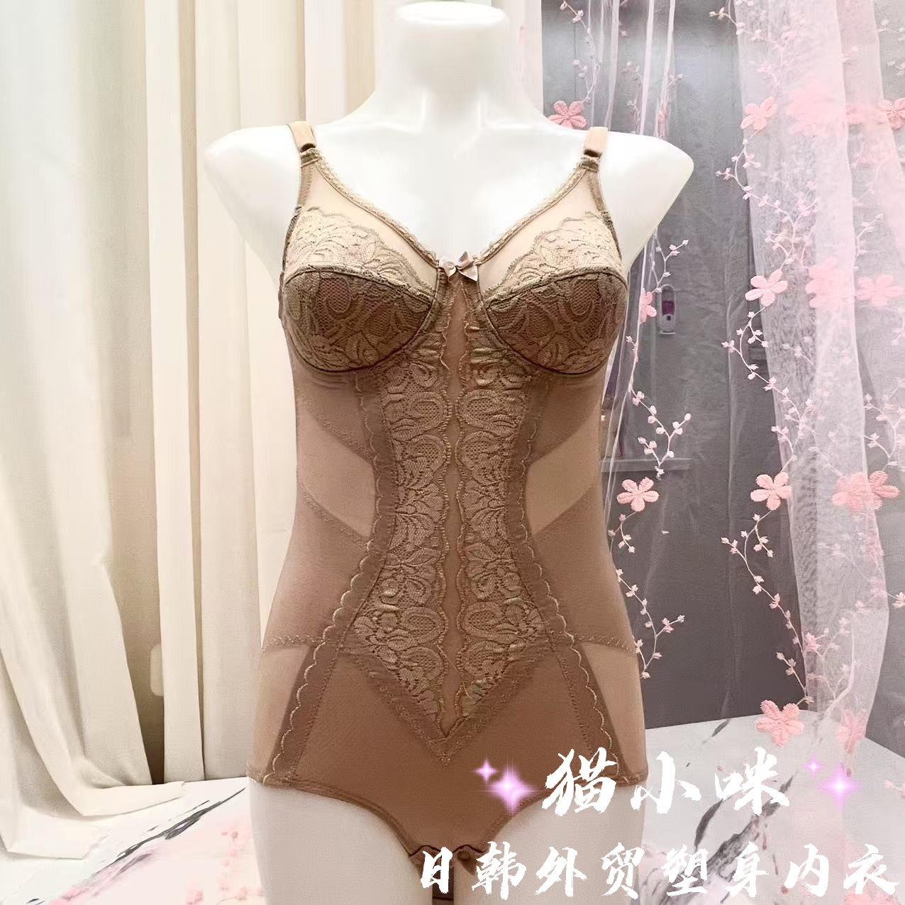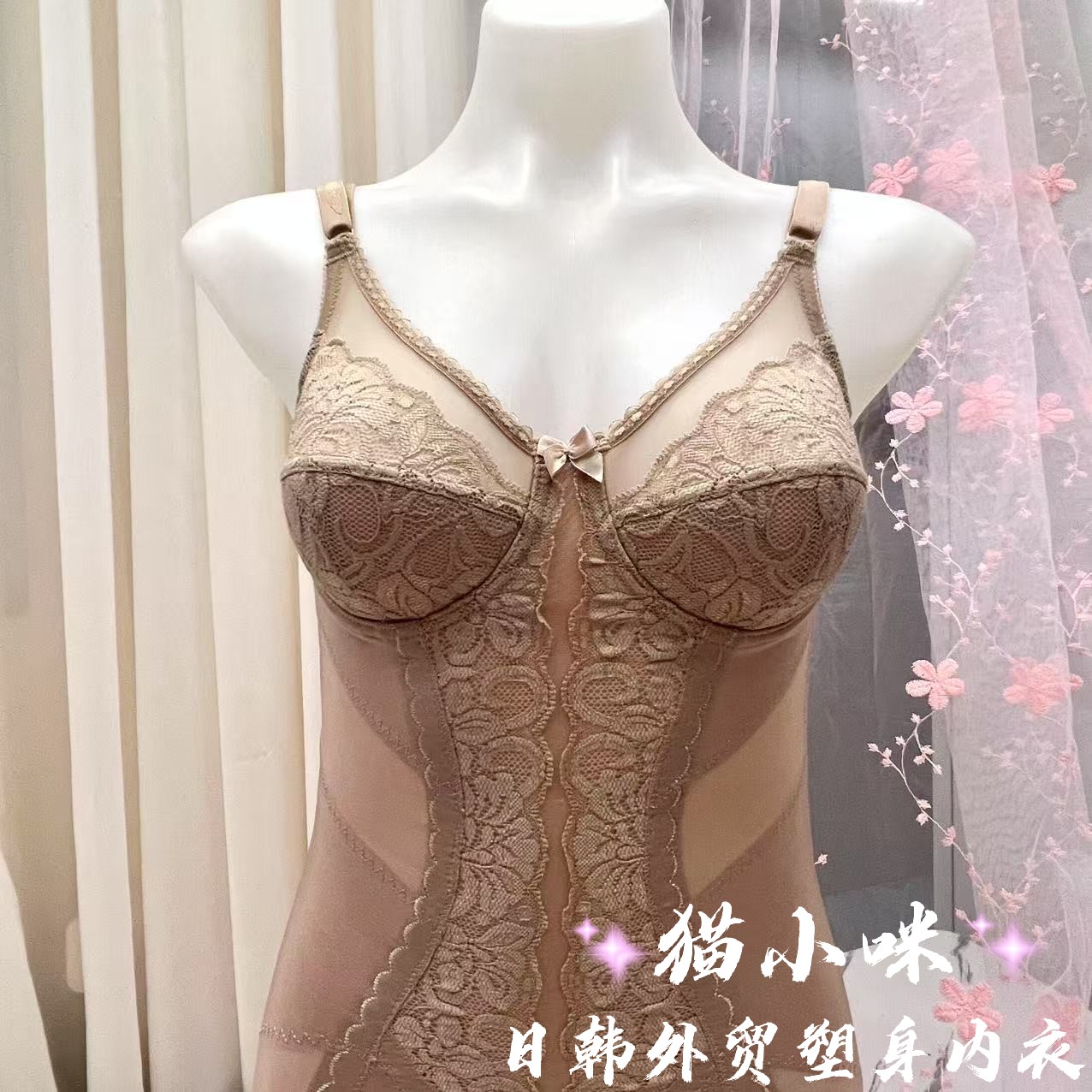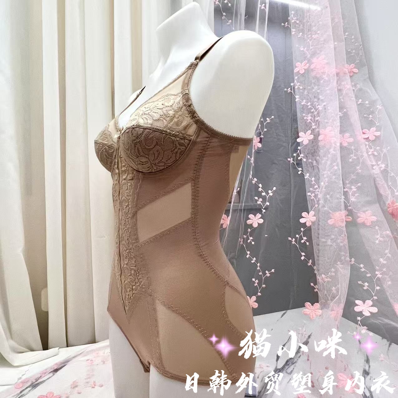 薄款强压力紧版收腹连体衣有钢圈大罩杯吊带文胸提臀美体塑身内衣