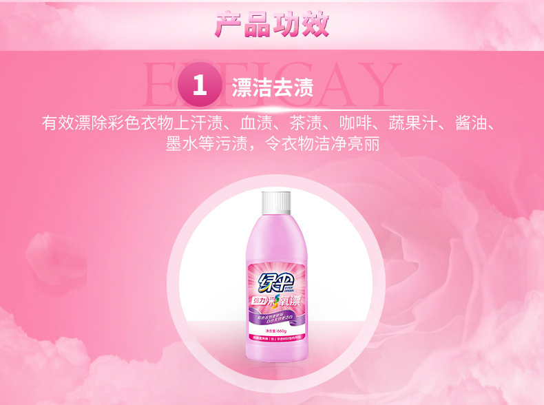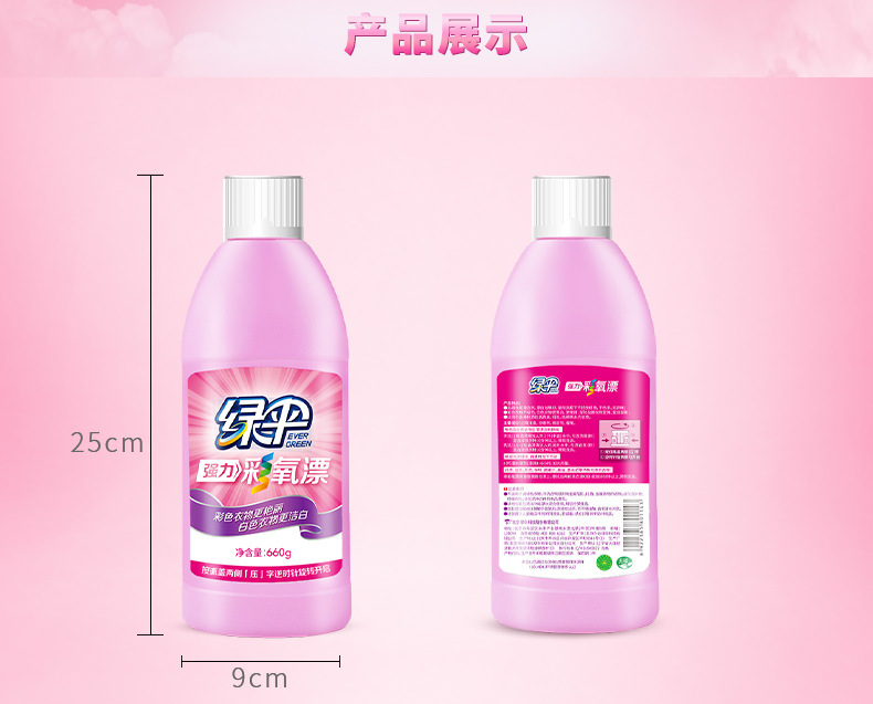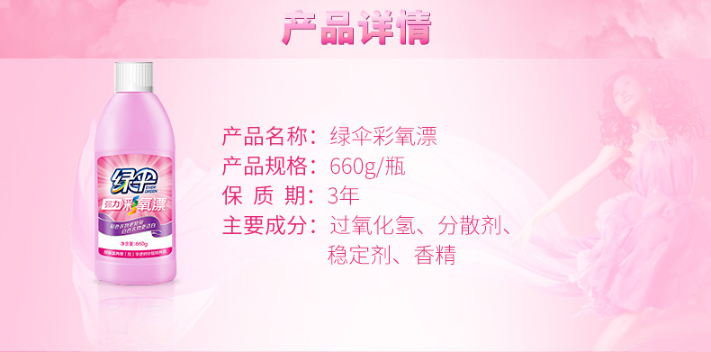 绿伞彩漂液 彩色漂660g*1瓶去果渍黄斑汗渍增白洗衣彩漂剂彩漂水