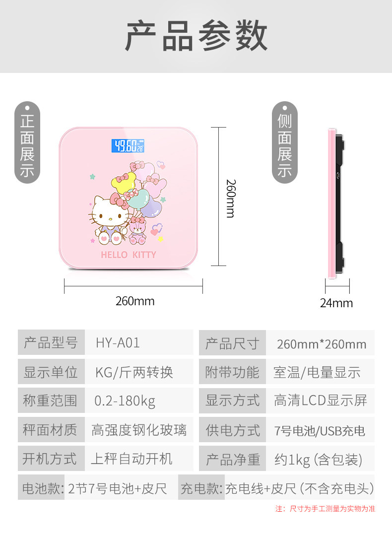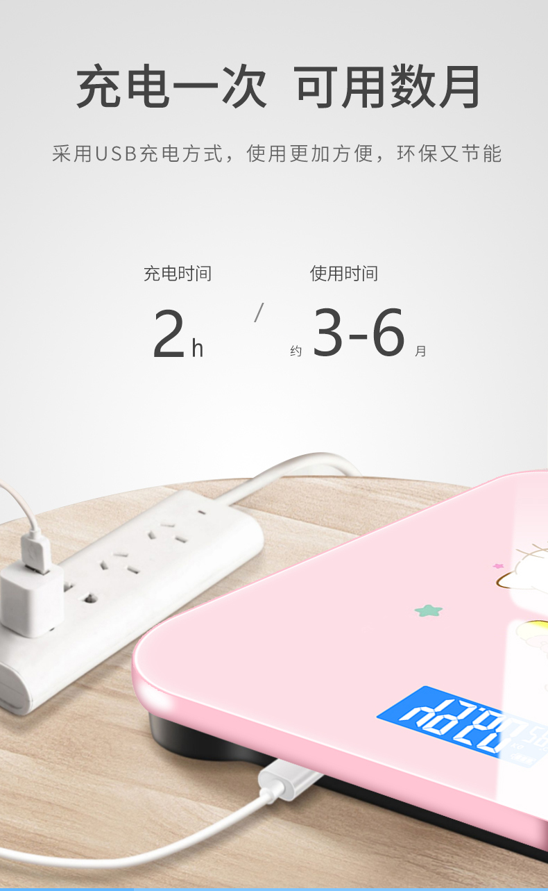 恒易可充电电子称体重秤精准家用电子秤人体秤成人减肥称重计器准