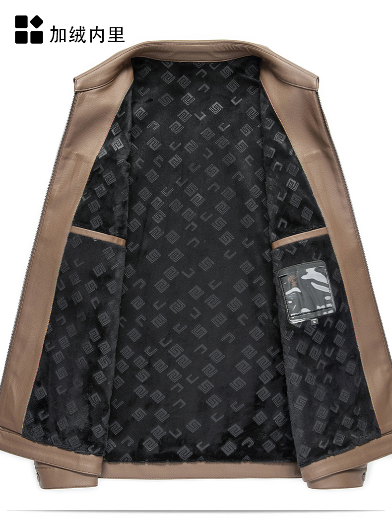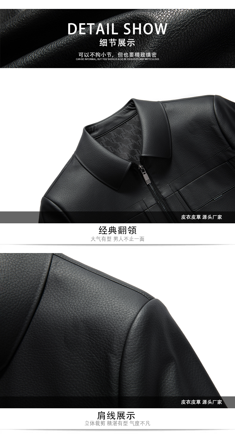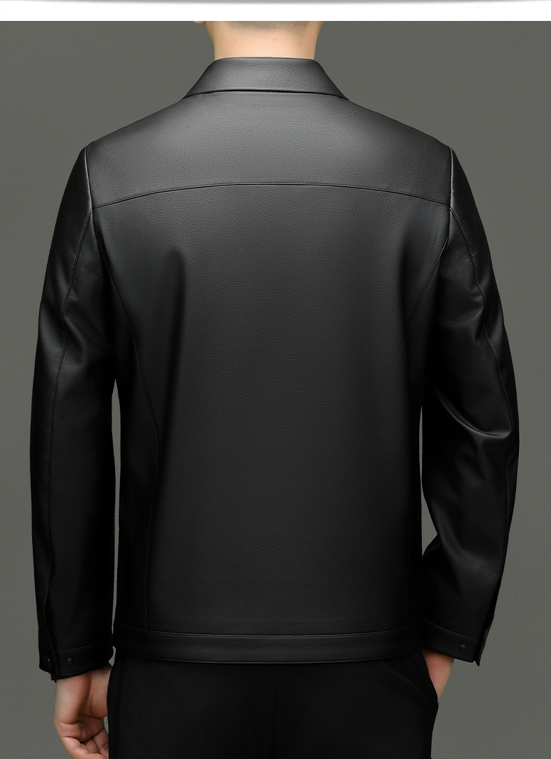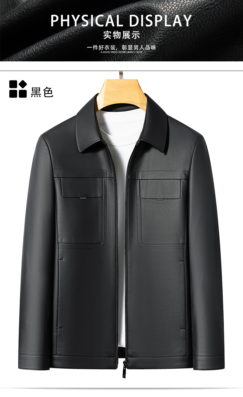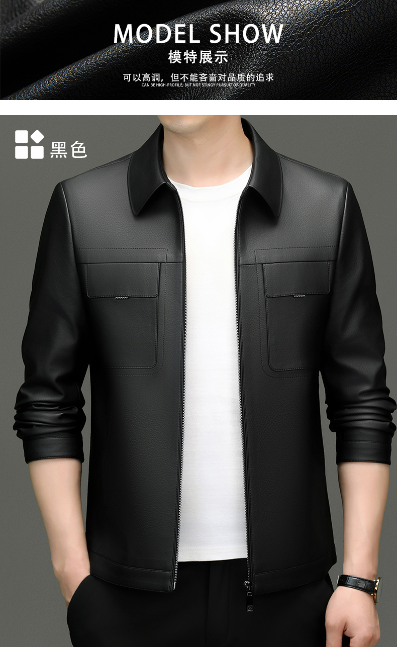 秋季中年男士真皮皮衣短款黑色加绒翻领高档休闲纯绵羊皮夹克外套