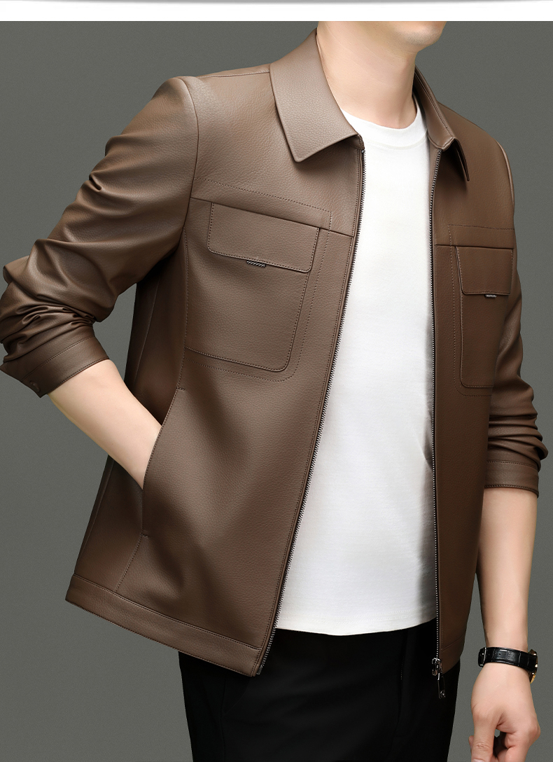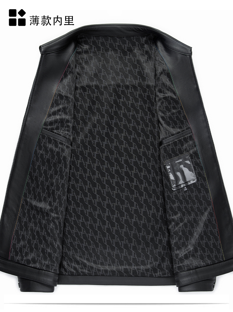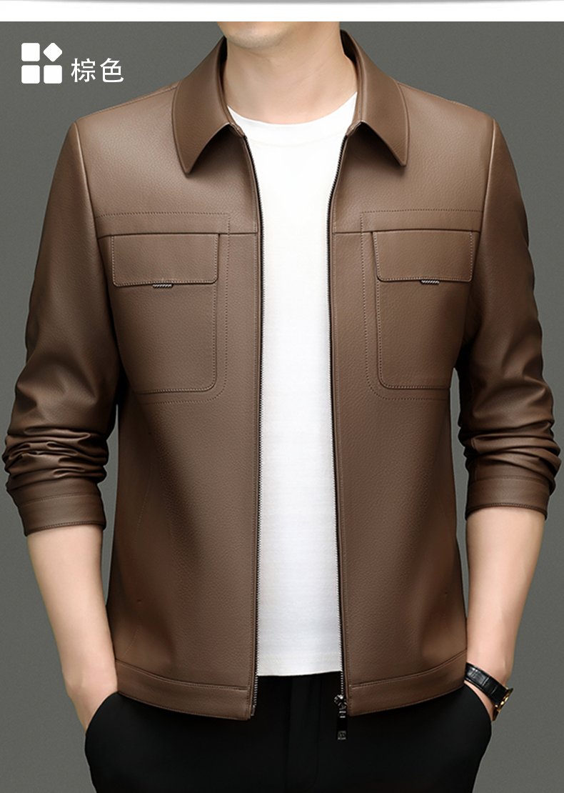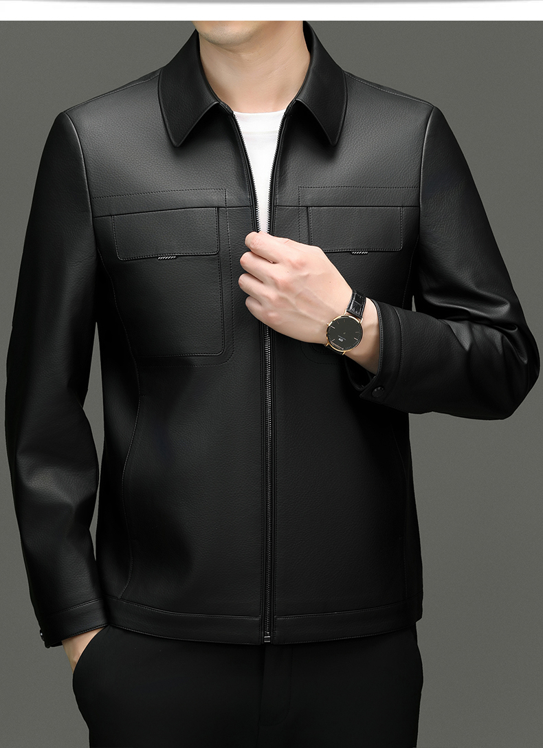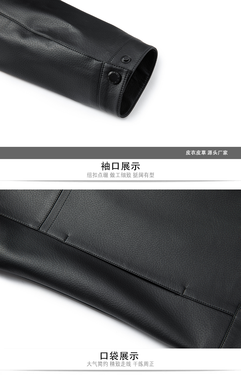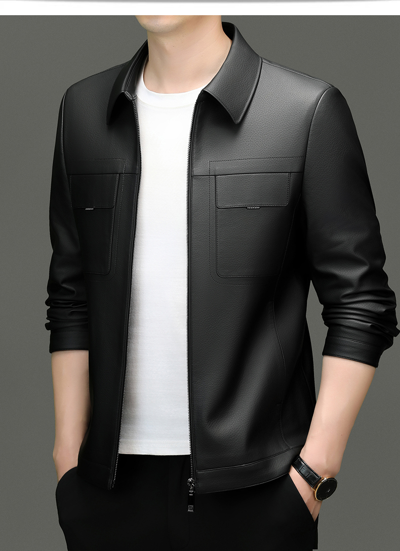 秋季中年男士真皮皮衣短款黑色加绒翻领高档休闲纯绵羊皮夹克外套