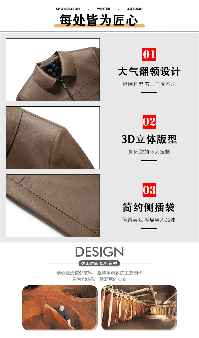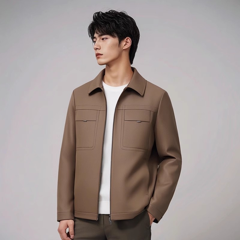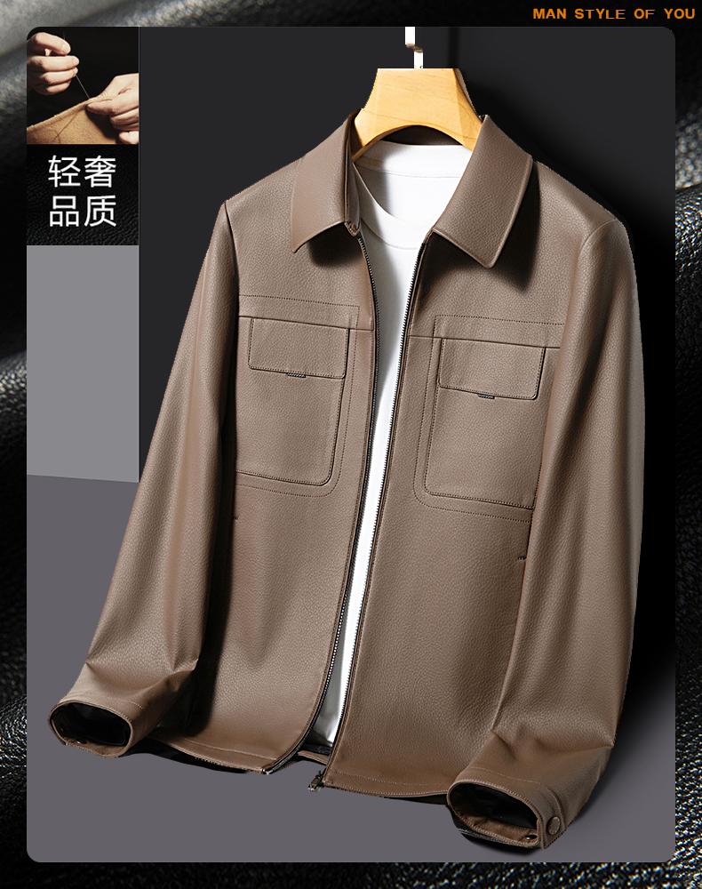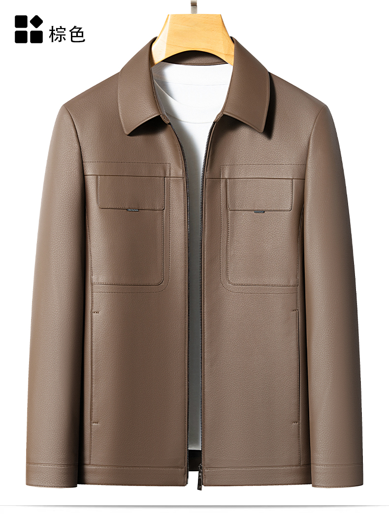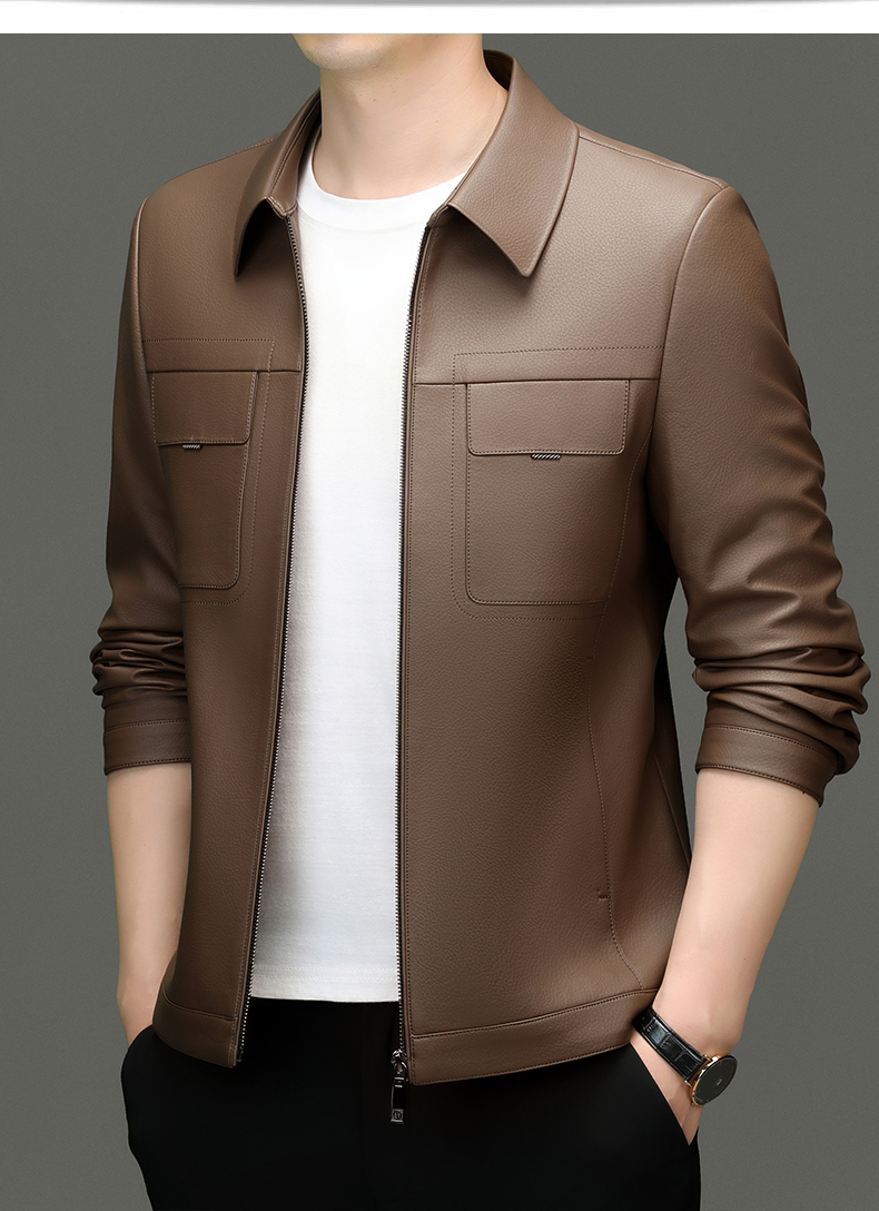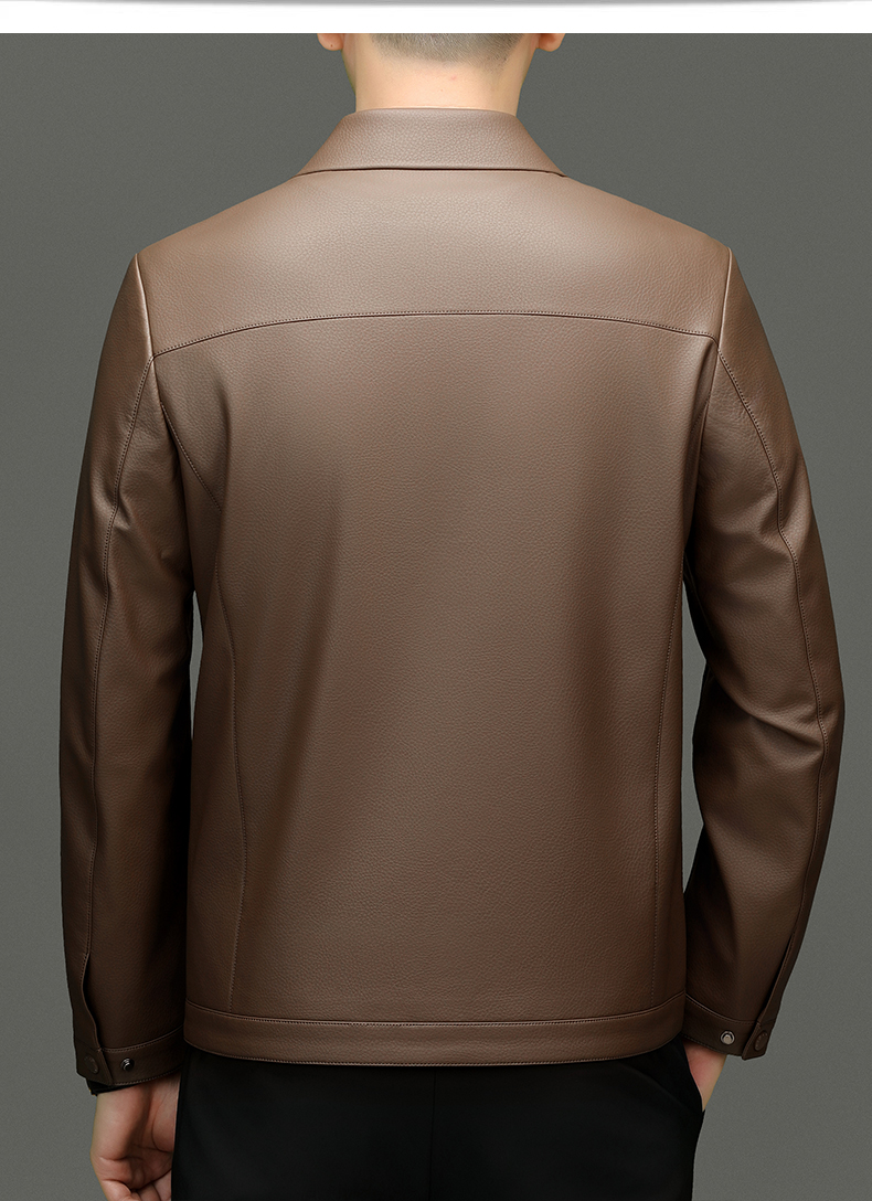 秋季中年男士真皮皮衣短款黑色加绒翻领高档休闲纯绵羊皮夹克外套