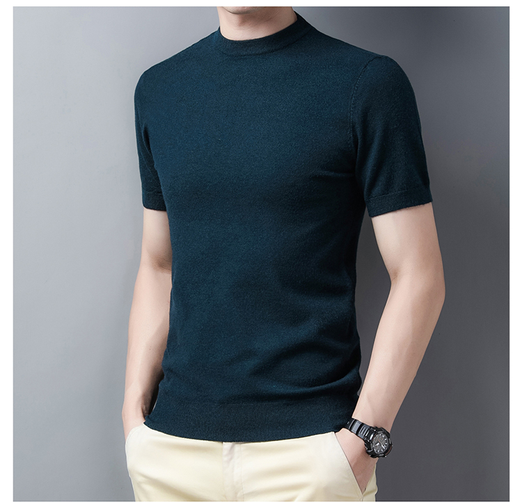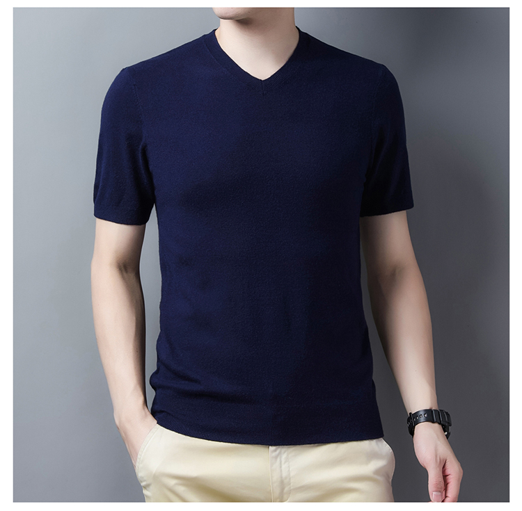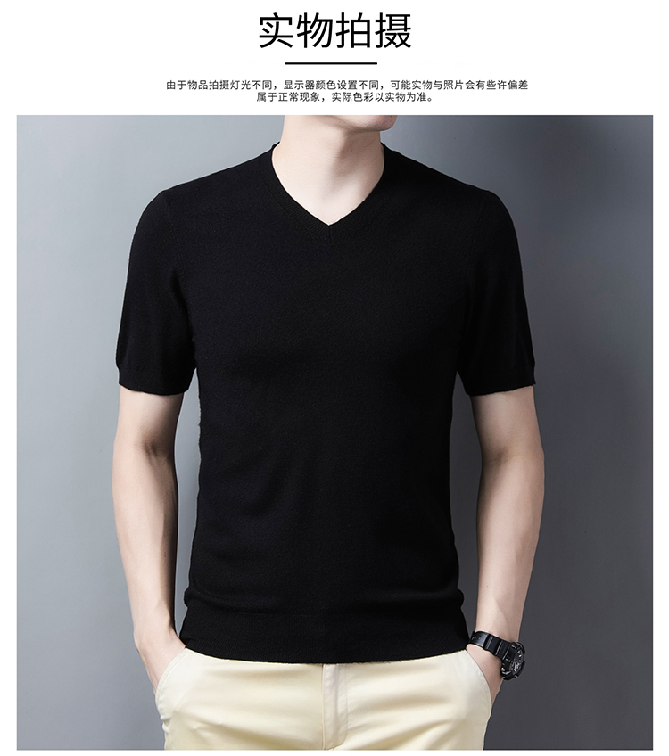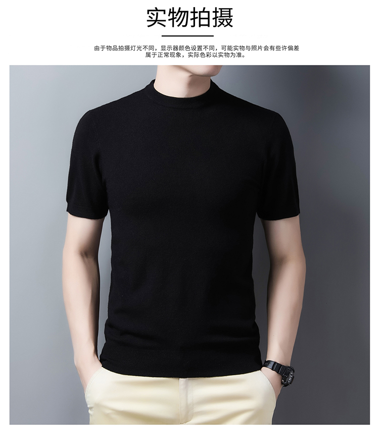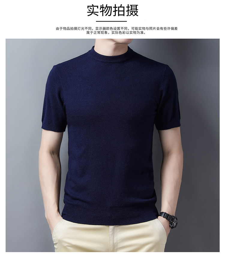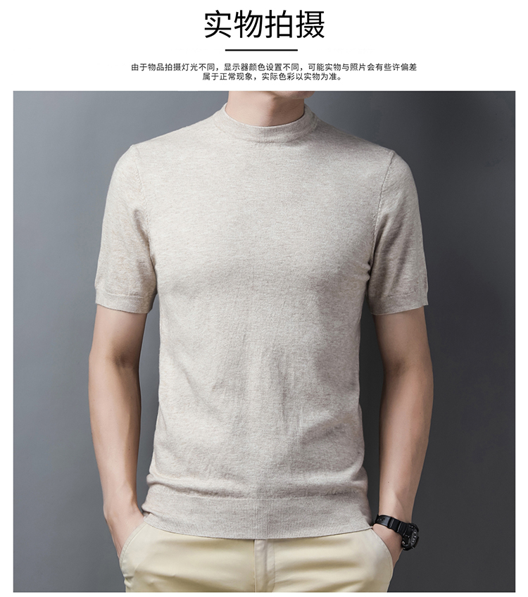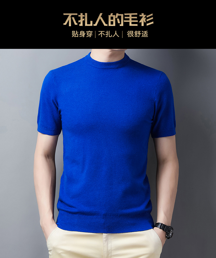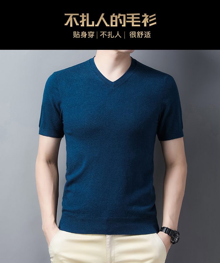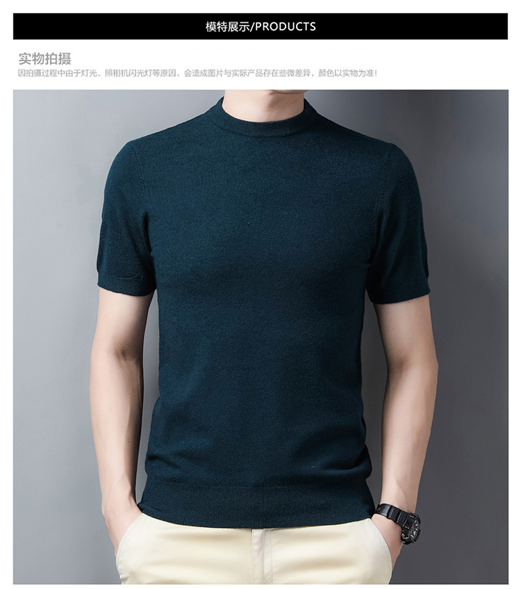 鄂尔多斯市100%羊绒衫男半袖针织打底衫春季中青年韩版套头羊毛衫